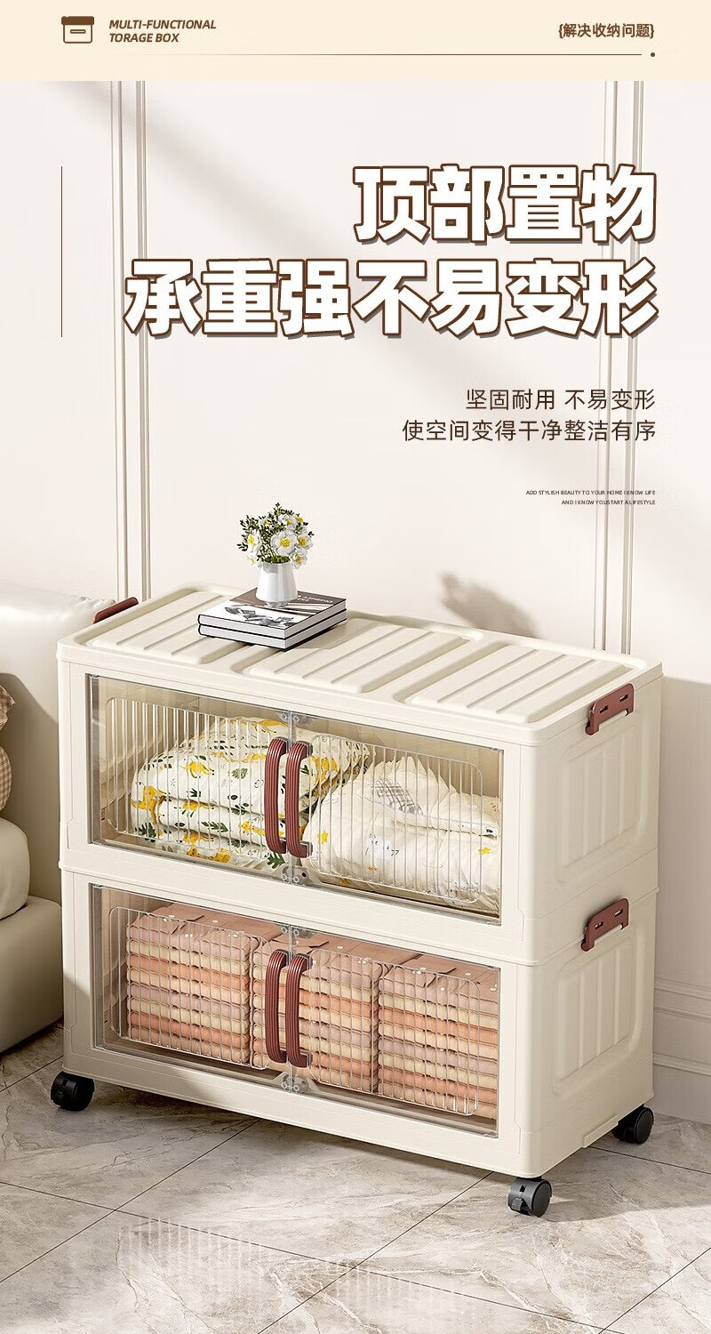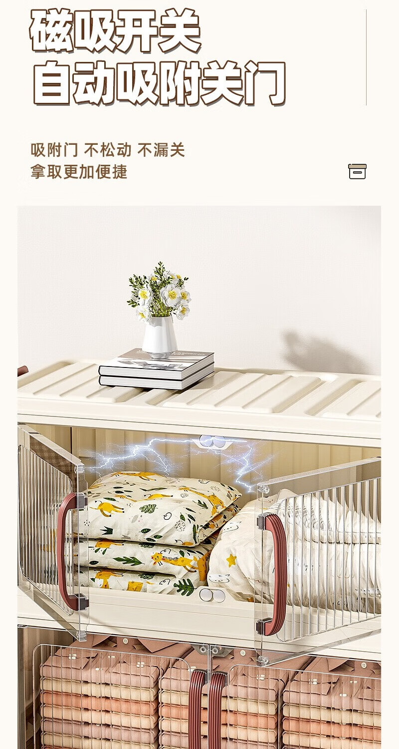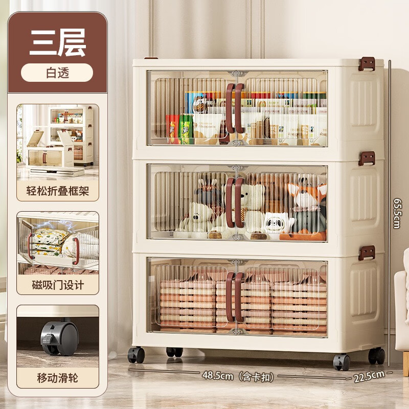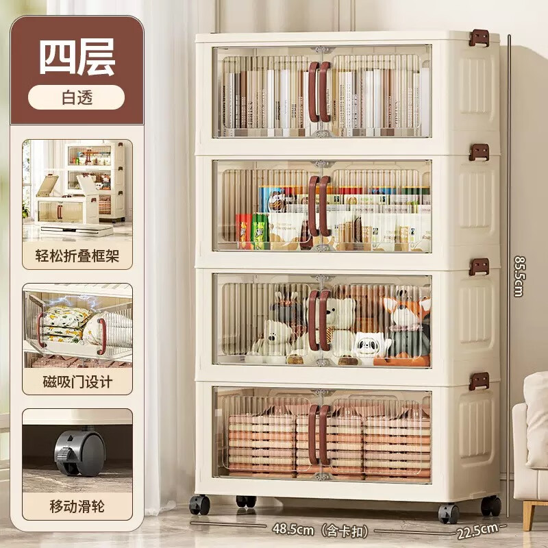免安装折叠收纳柜衣柜多层储物柜零食柜箱塑料整理柜 颜色随机款48CM面宽-1层无轮