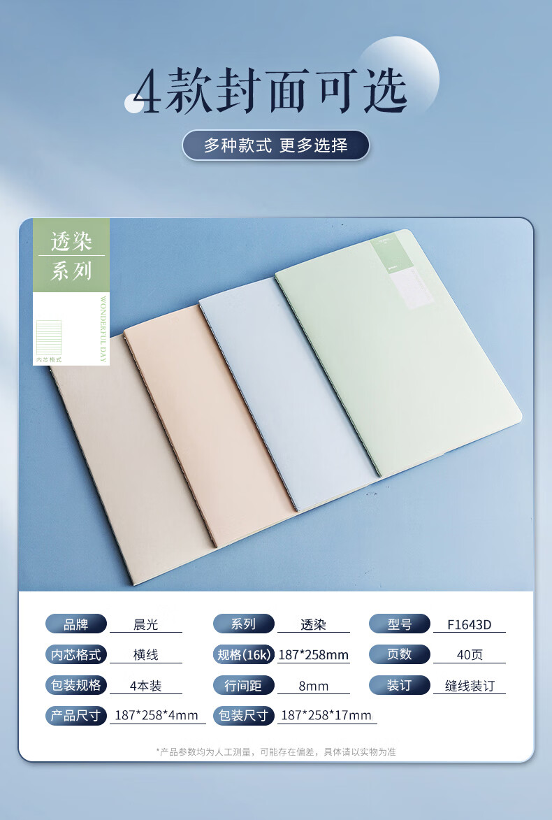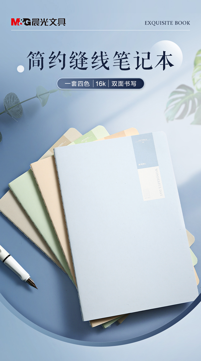 晨光(M&G)文具16K/40张笔记本子缝线本 b5记事本高颜值错题本 高中学生考研日记本 透染4本装F1643D开学必备