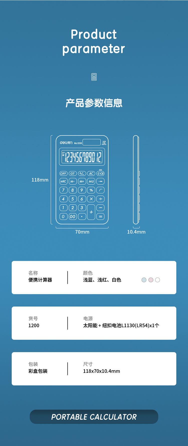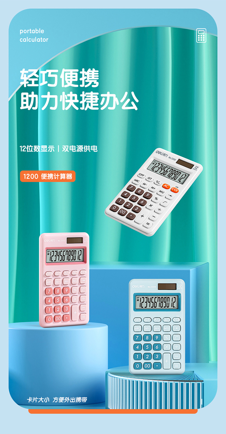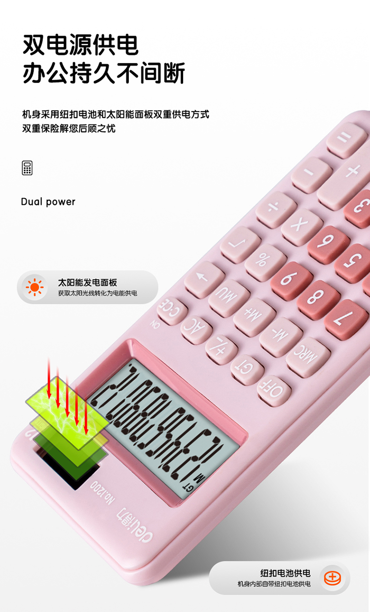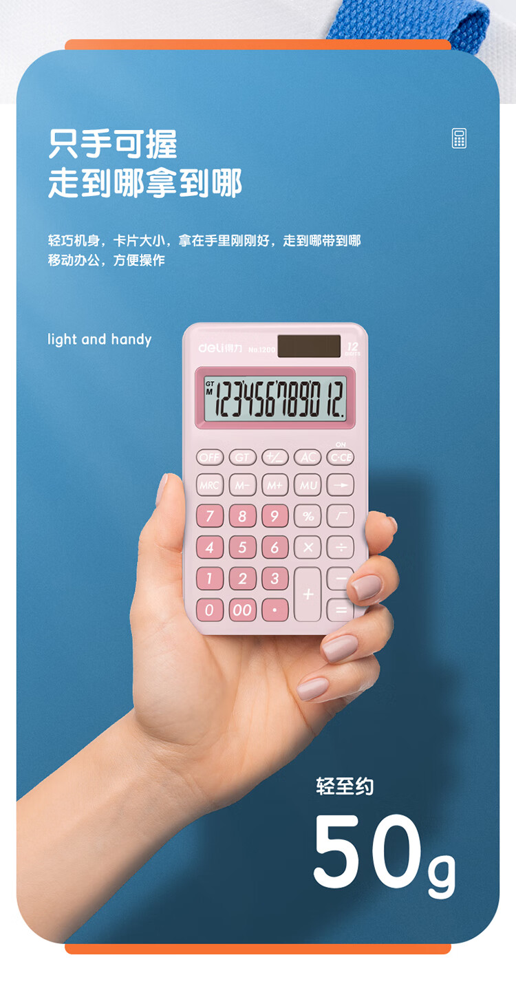 得力(deli)双电源便携时尚计算器 轻薄机身硅胶按键 学生四年级可爱桌面计算机 学习用品 浅红1200