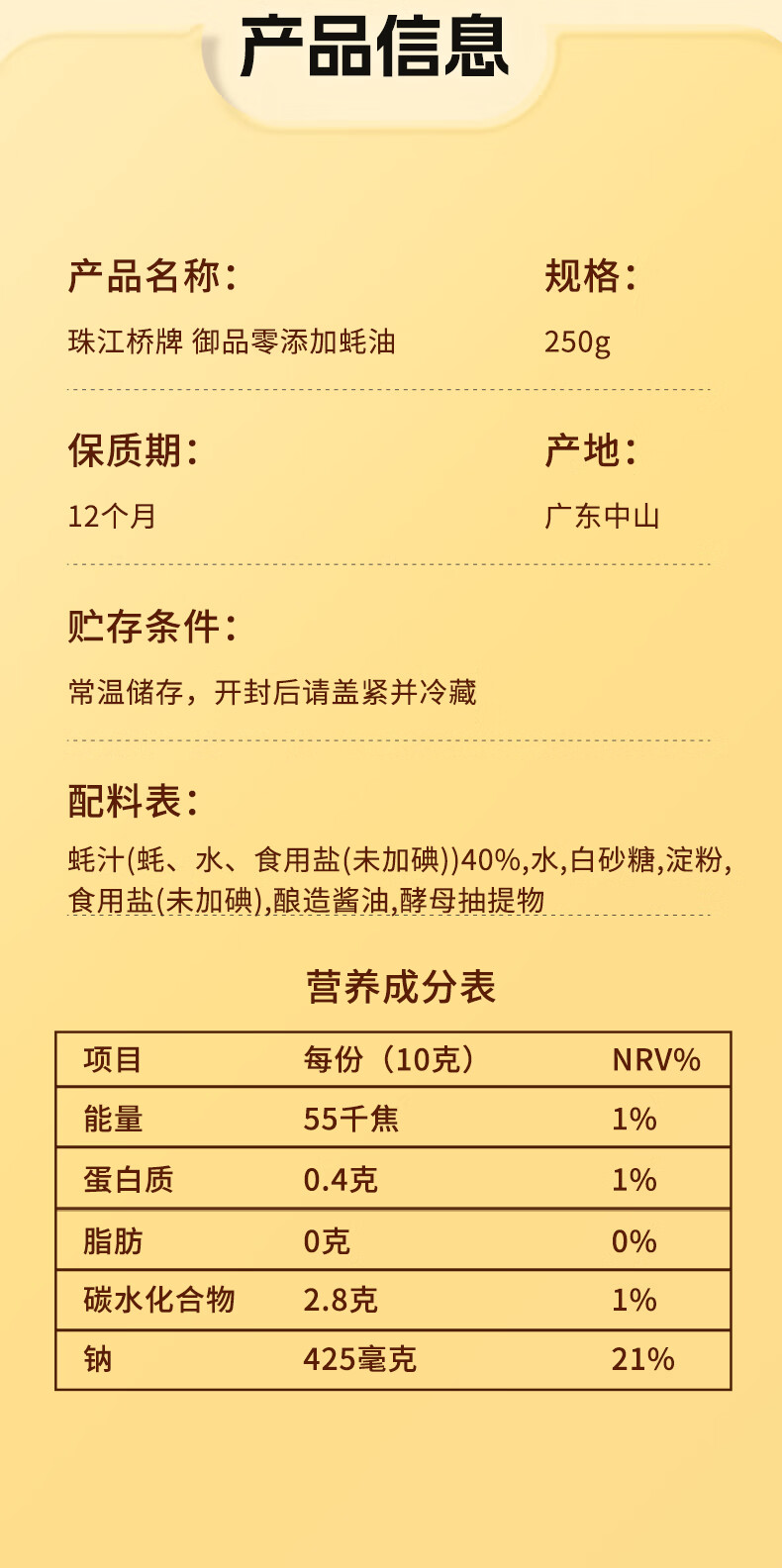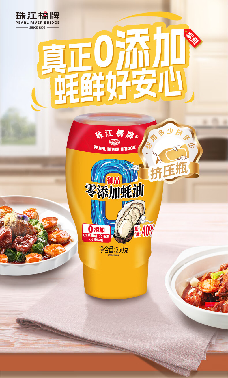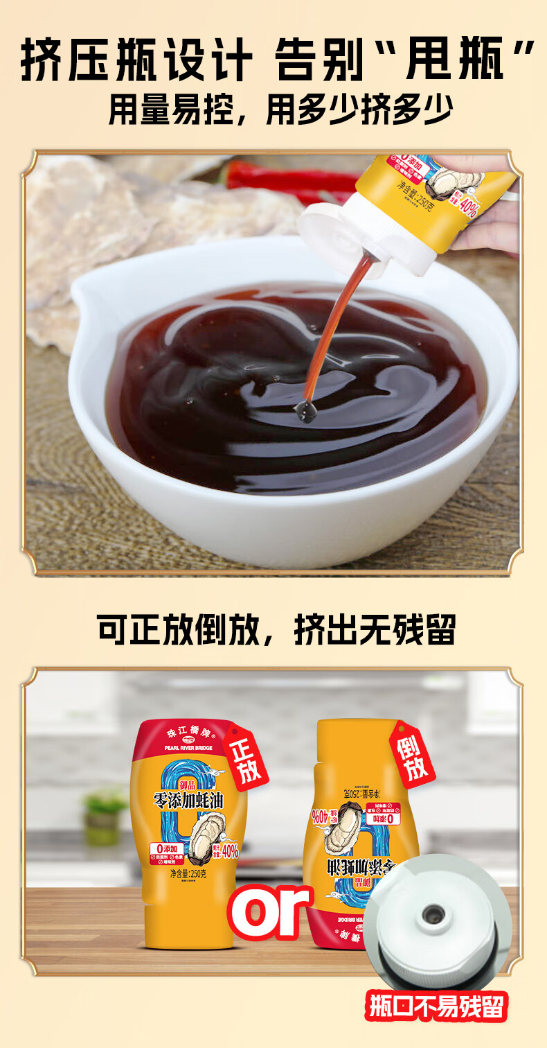 珠江桥牌零添加蚝油250g 40%蚝汁占比挤挤装蚝油0添加防腐剂 中华老字号