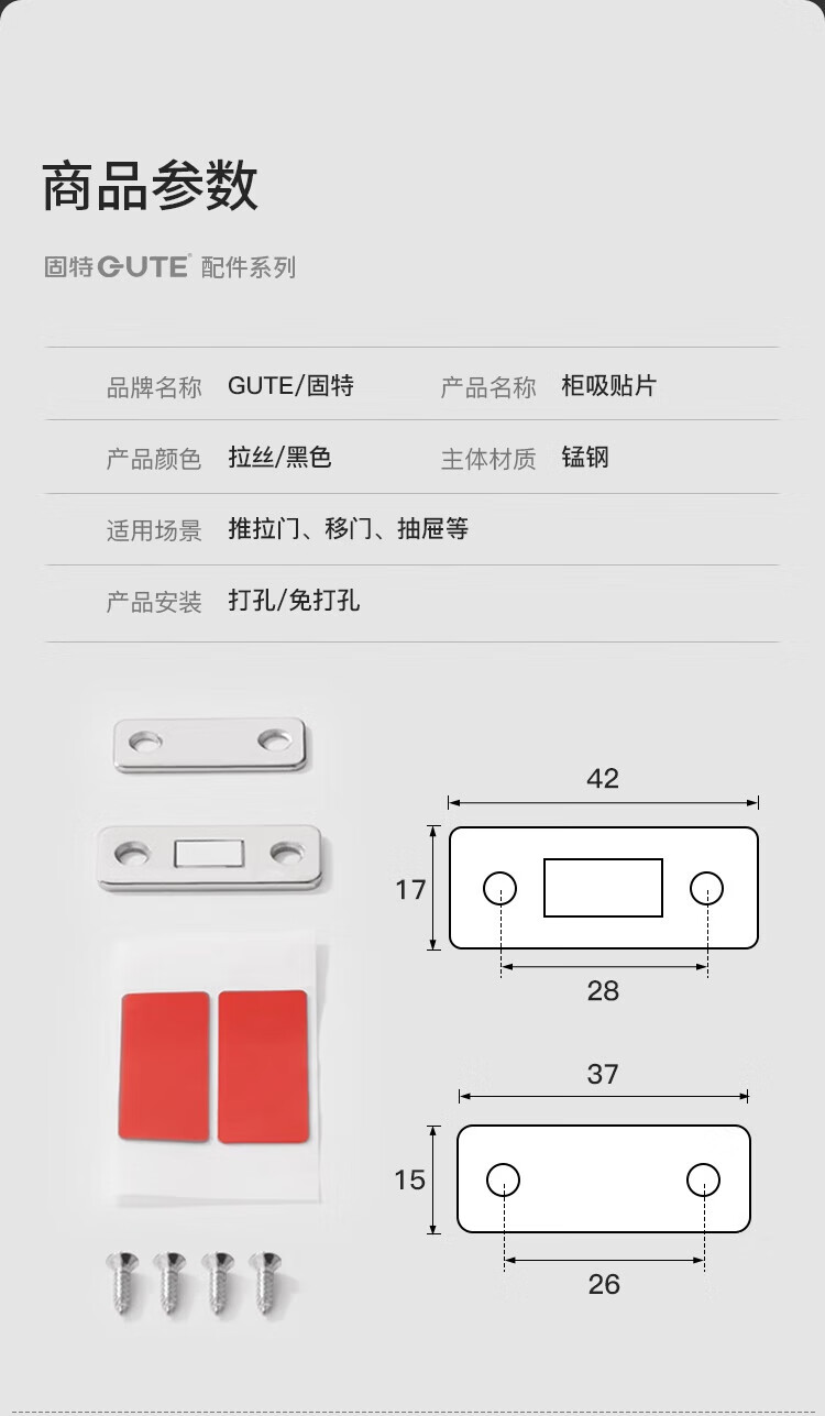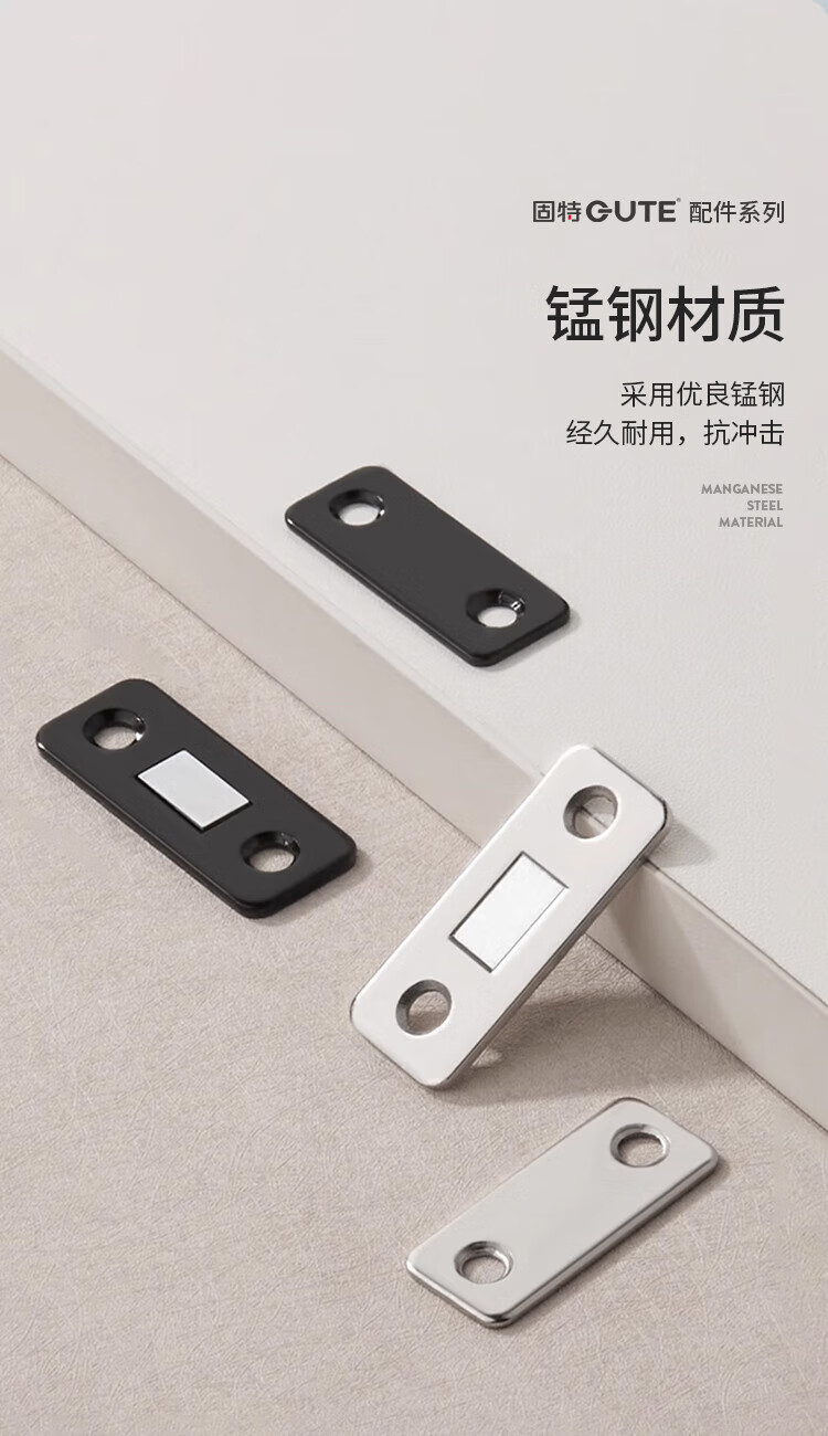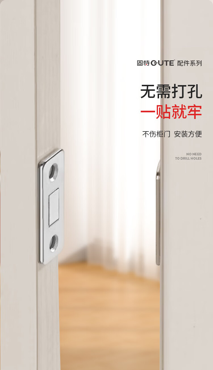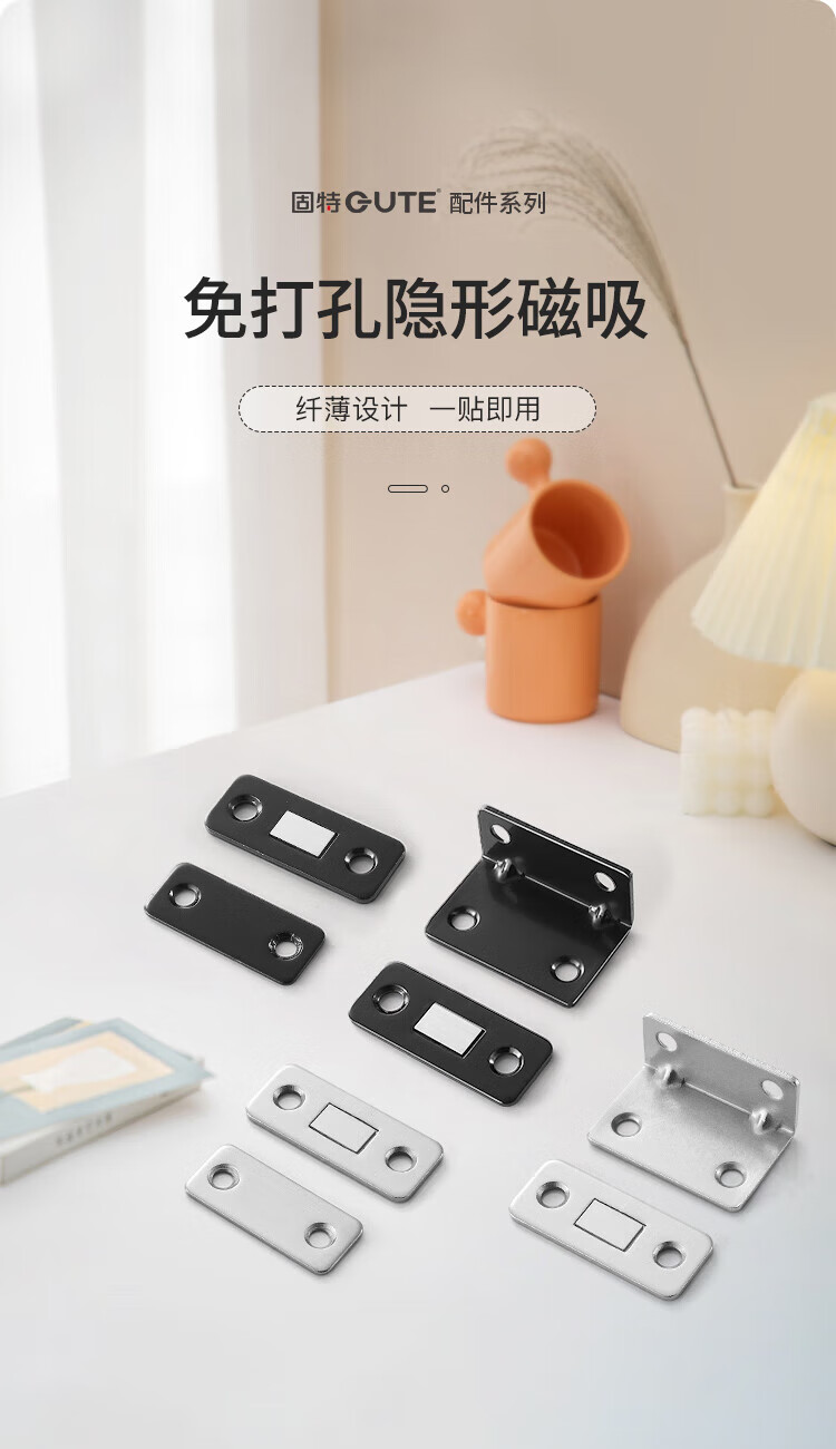 固特(GUTE)柜吸免打孔隐形门吸强磁吸防风推拉门橱柜衣柜门碰珠薄磁碰 一字柜吸黑色(1只) 打孔/免打孔两用