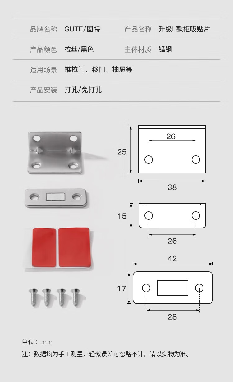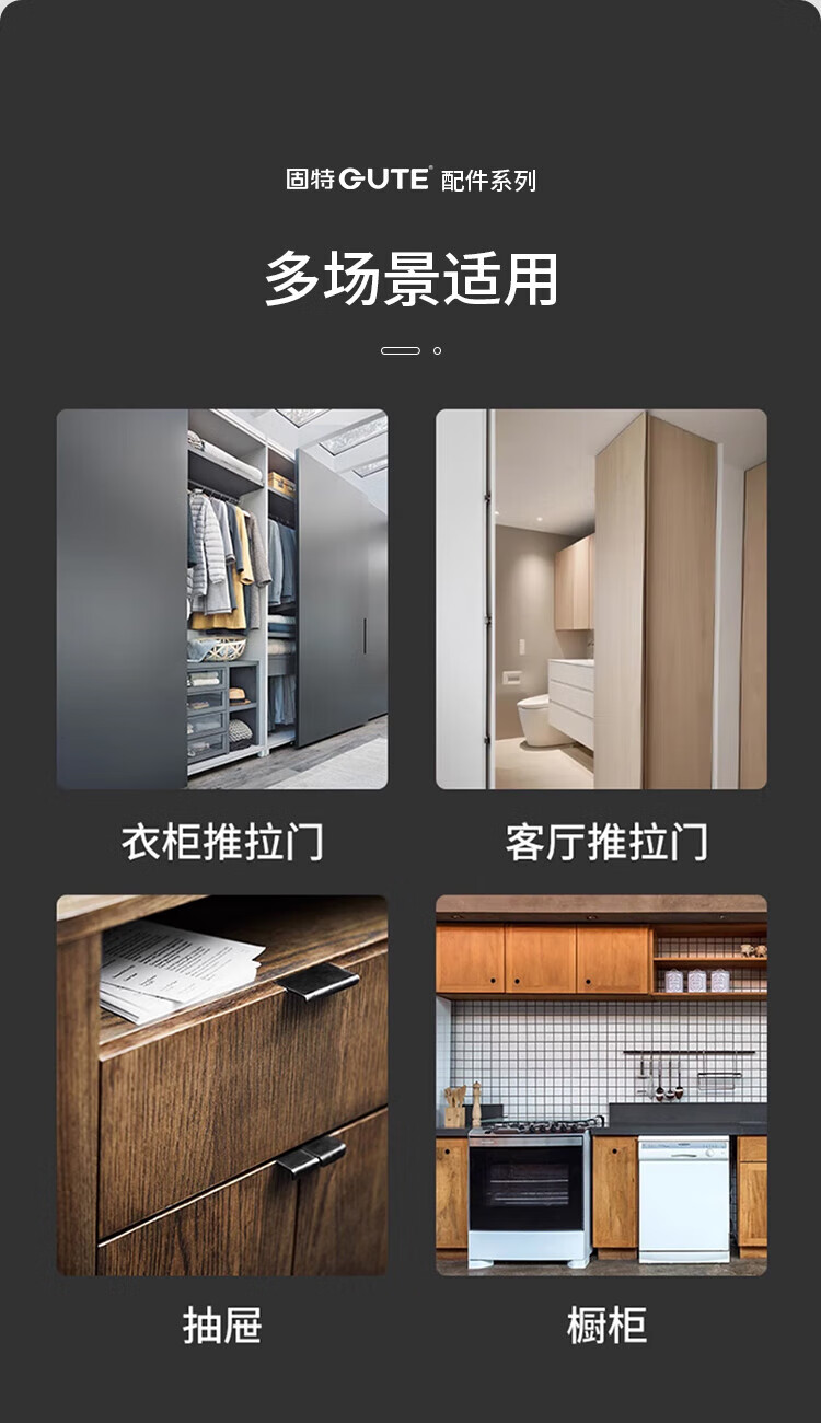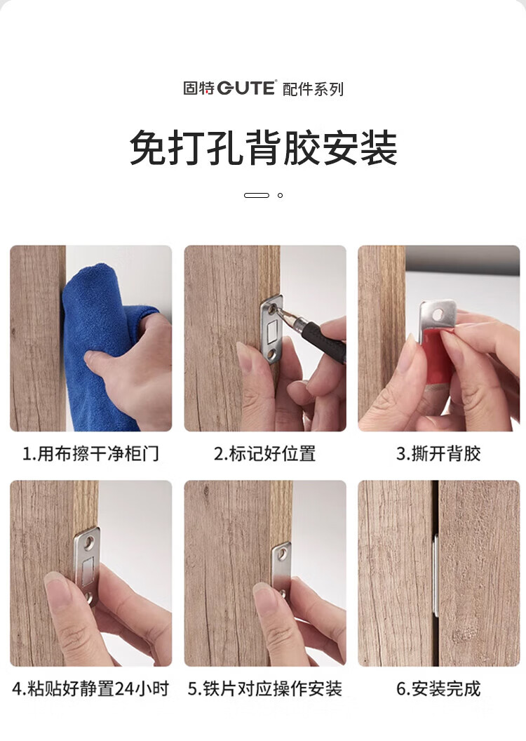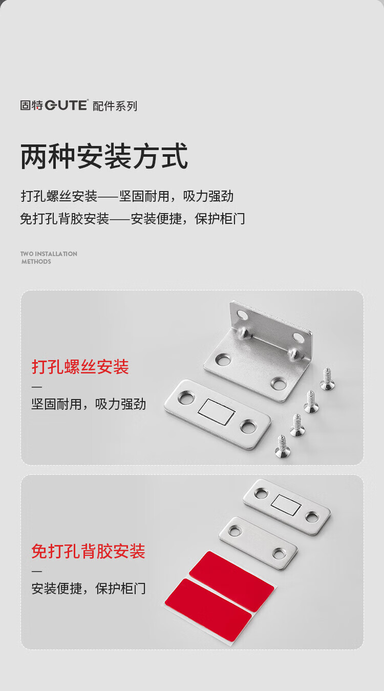 固特(GUTE)柜吸免打孔隐形门吸强磁吸防风推拉门橱柜衣柜门碰珠薄磁碰 一字柜吸黑色(1只) 打孔/免打孔两用
