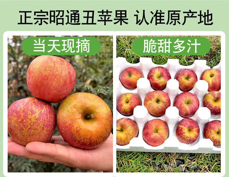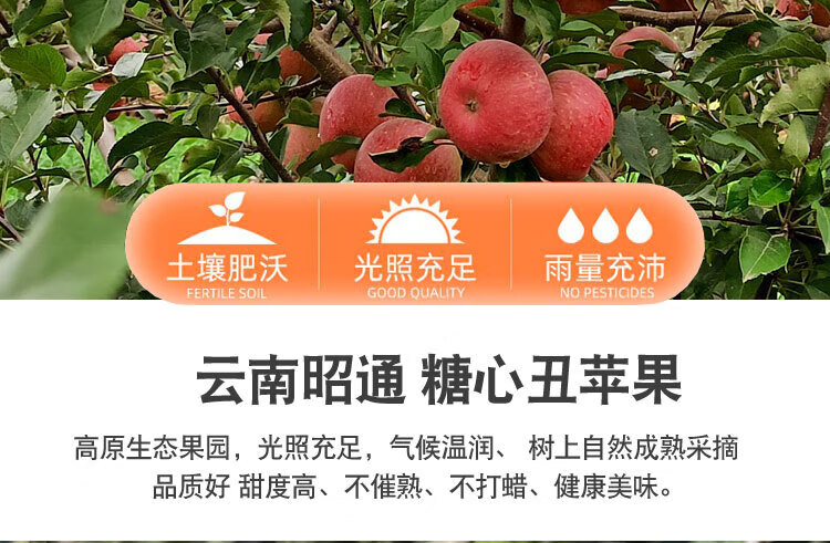 京喜加正宗25年新果云南昭通冰糖心丑苹果当季水果现摘脆甜野生富士苹果 整箱10斤中果【果径70-75】家庭装