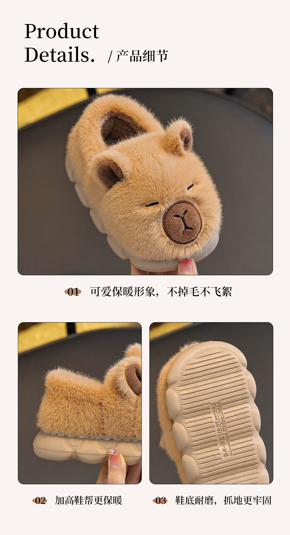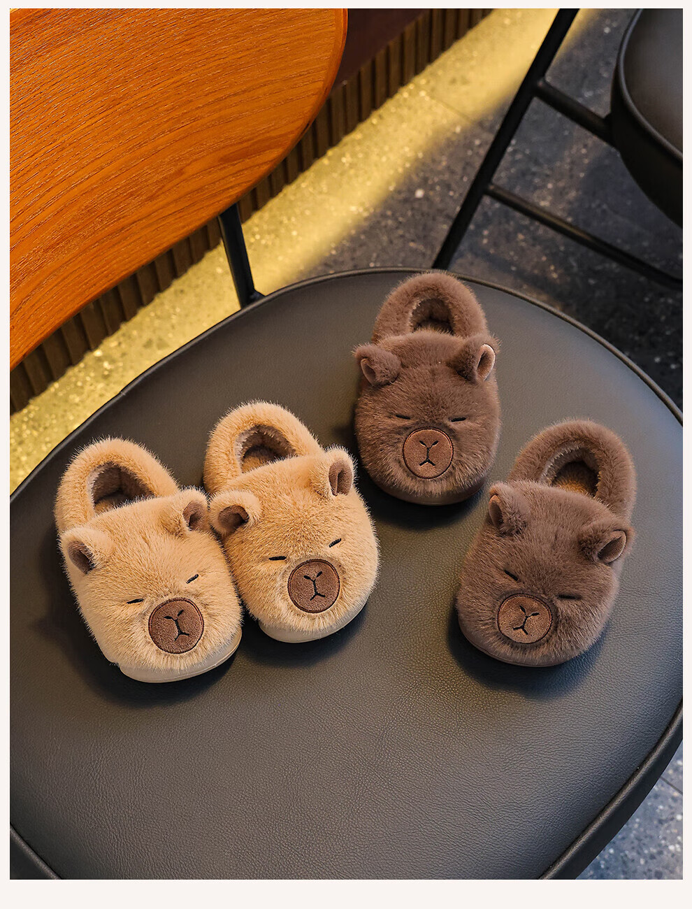 FZT卡皮巴拉儿童棉拖鞋女款2025冬季室内居家加绒保暖包跟外穿棉鞋男 深咖 24-25 【内长160mm】
