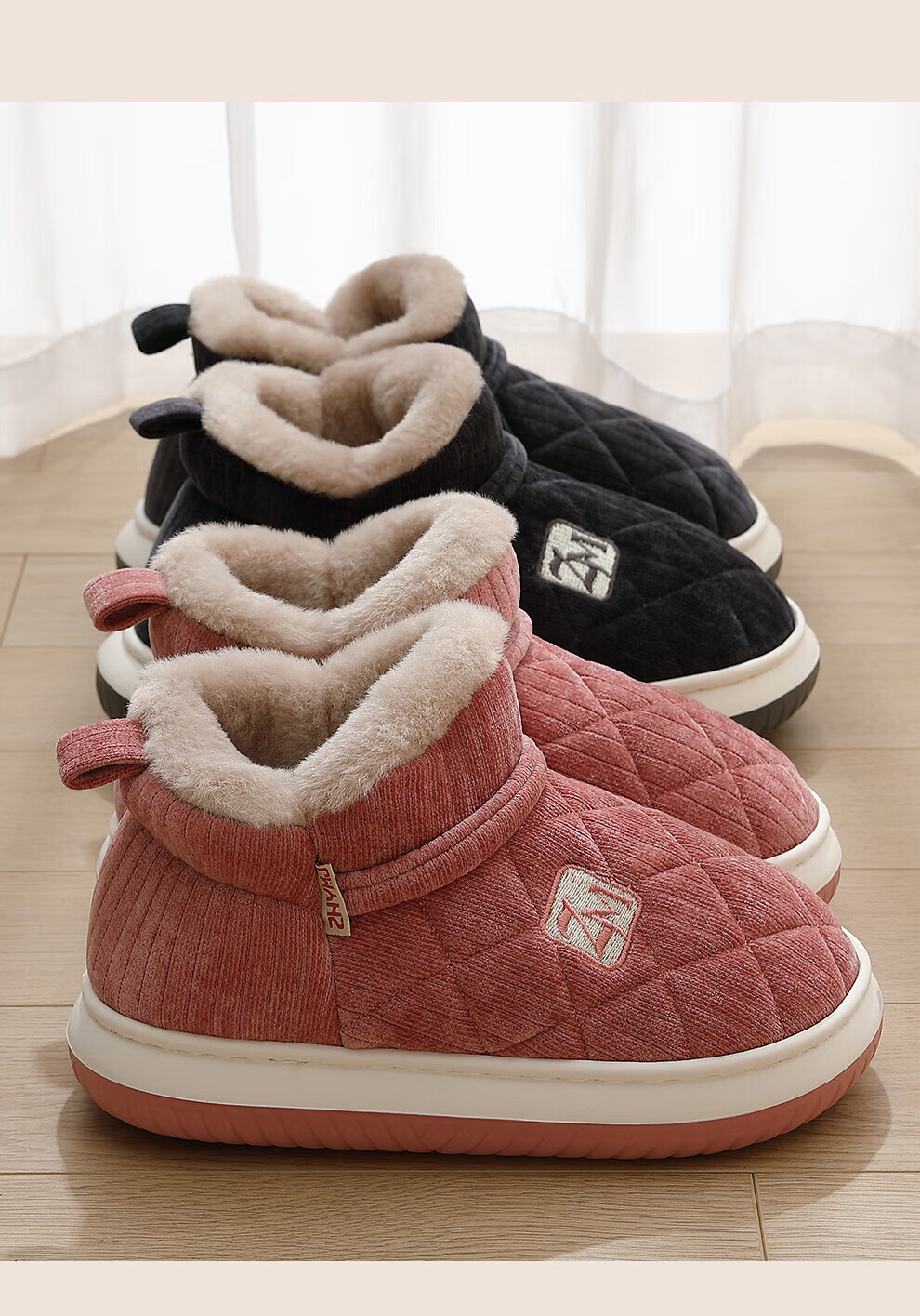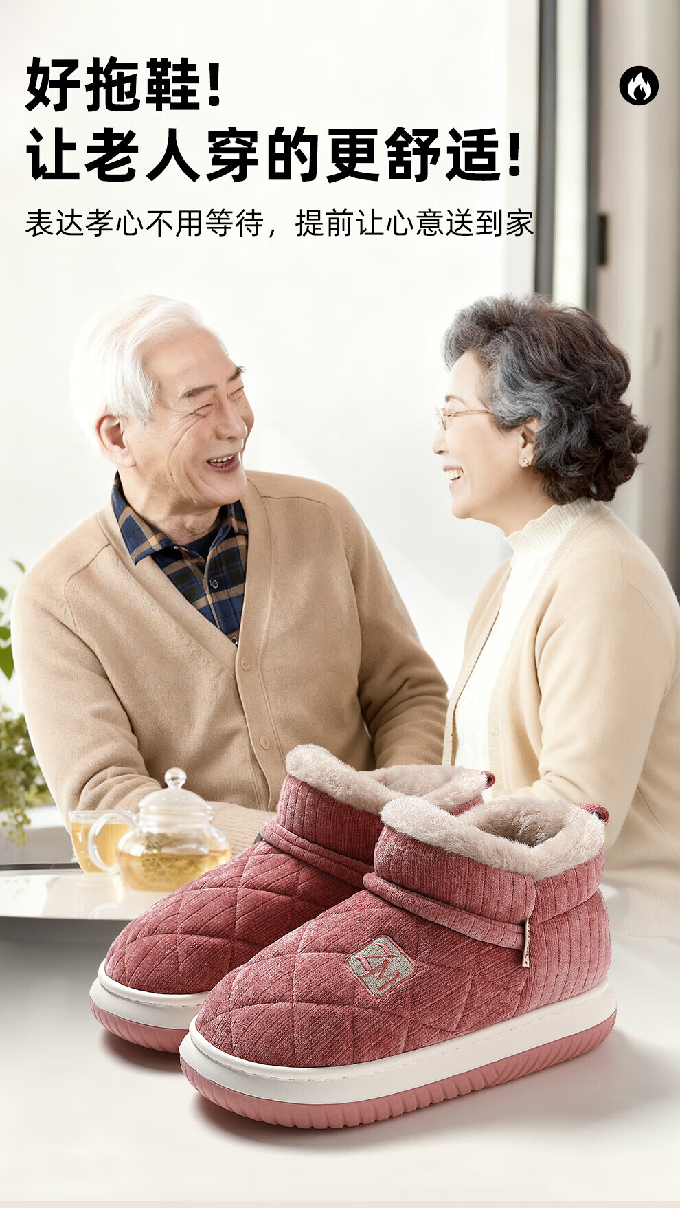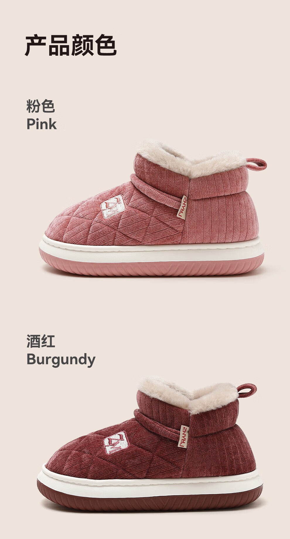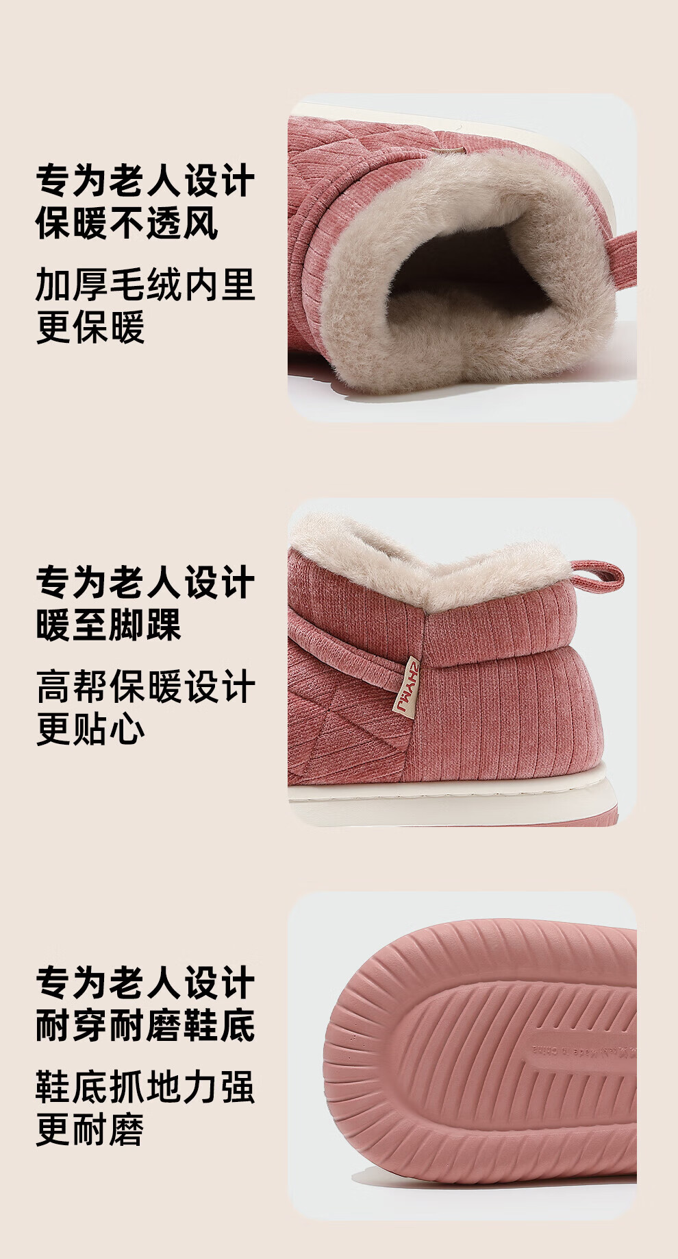 FZT中老年防滑棉拖鞋女款冬季2025新款家居加绒保暖软底可外穿棉拖男 粉色 36-37 标准码