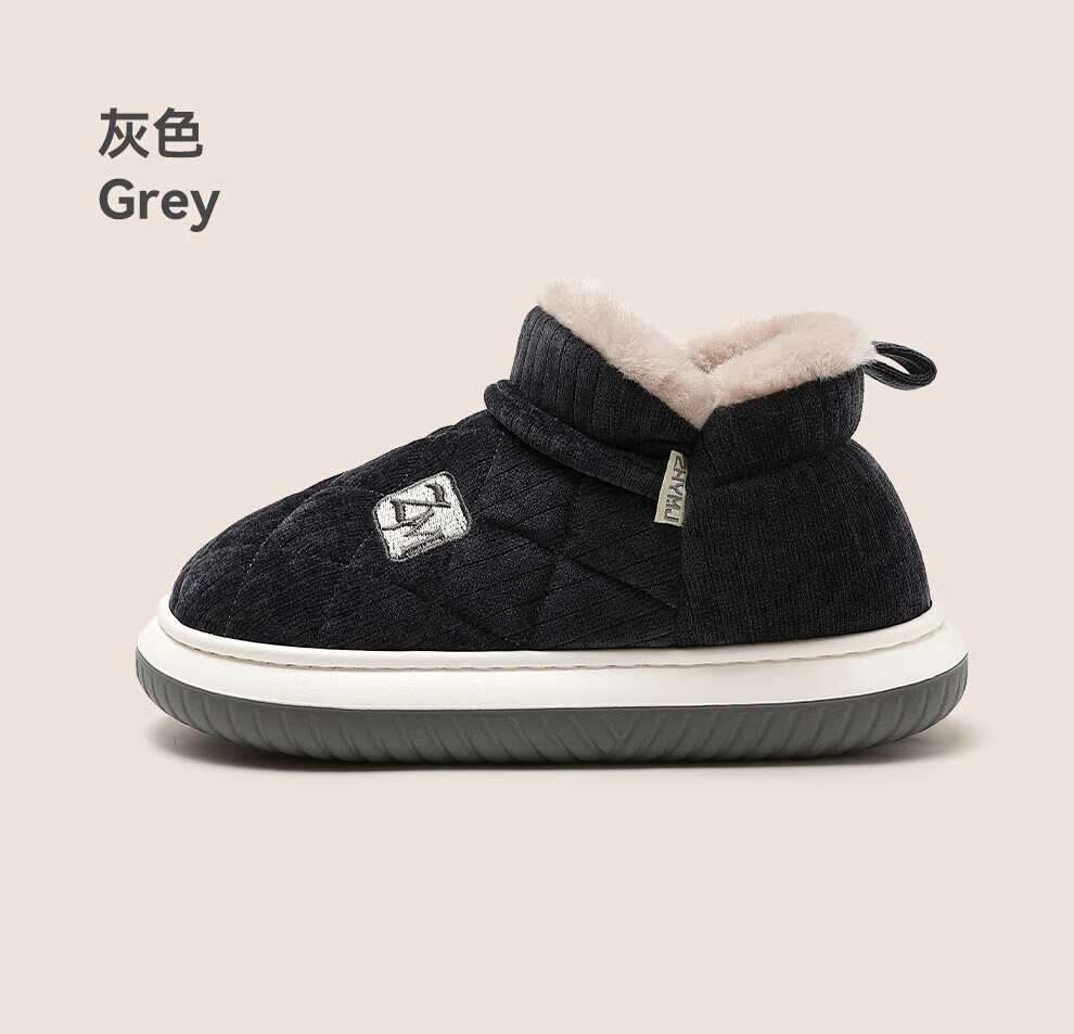 足力健老人鞋雪地靴冬季保暖防滑一脚蹬轻便保暖鞋棉鞋男女鞋 女灰蓝色 36