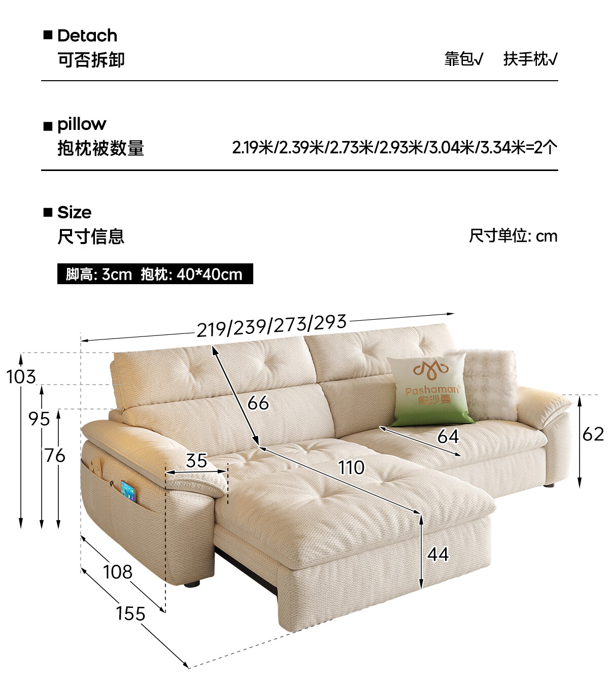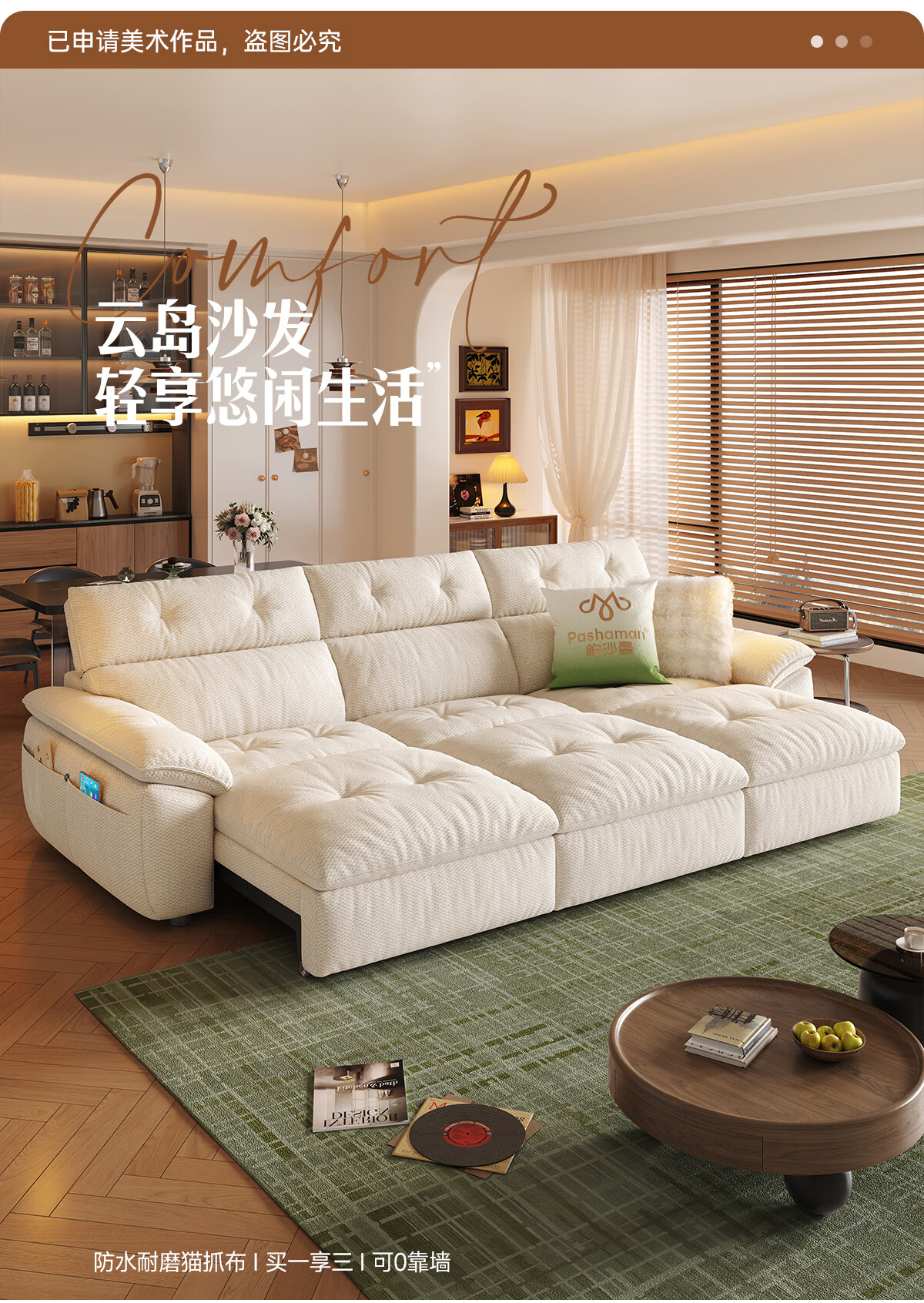 帕沙曼布艺电动沙发床客厅小户型意式极简可调节伸缩直排云岛沙发2958ZF 【遥控款】2.19米大双人位·双功能 【舒享版】阻燃雪尼尔DM664(乳胶+竹炭海绵)