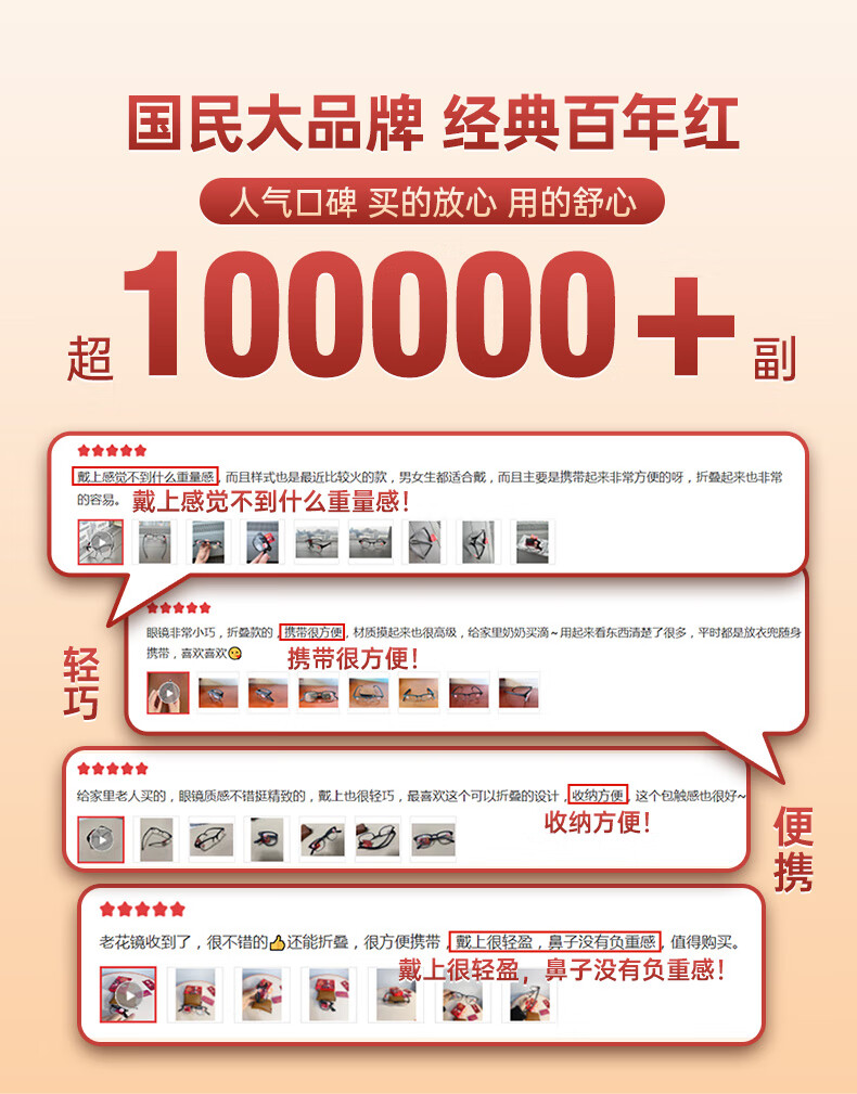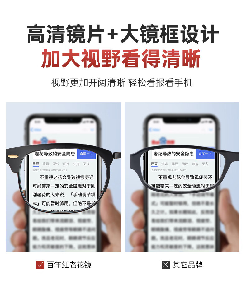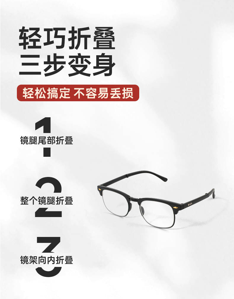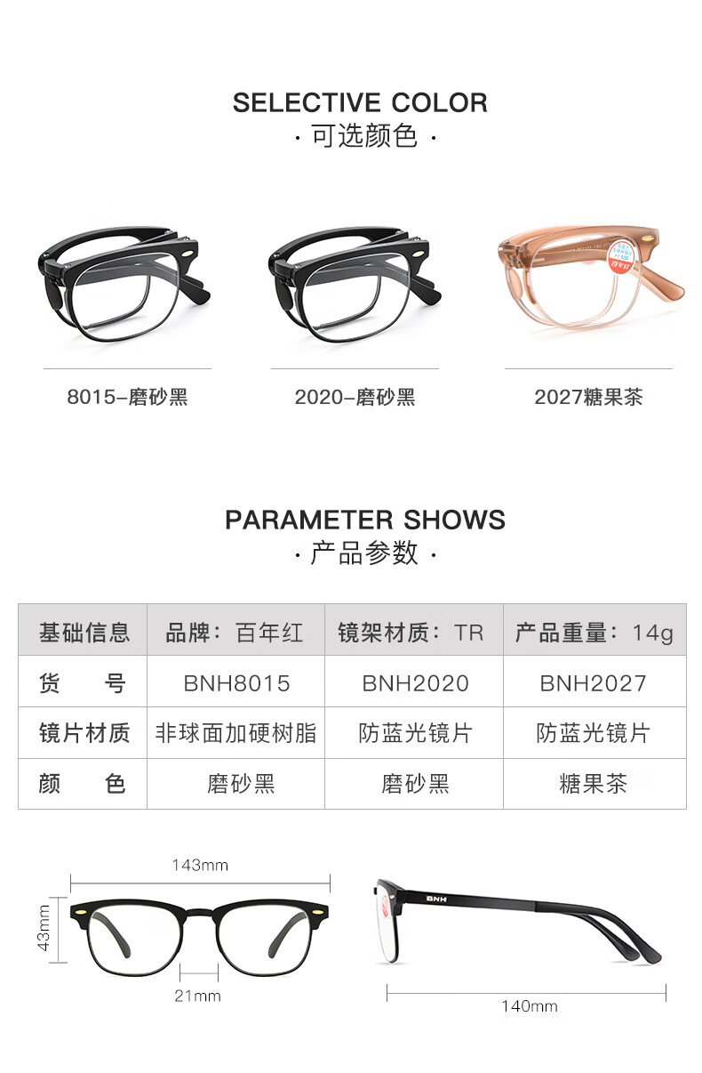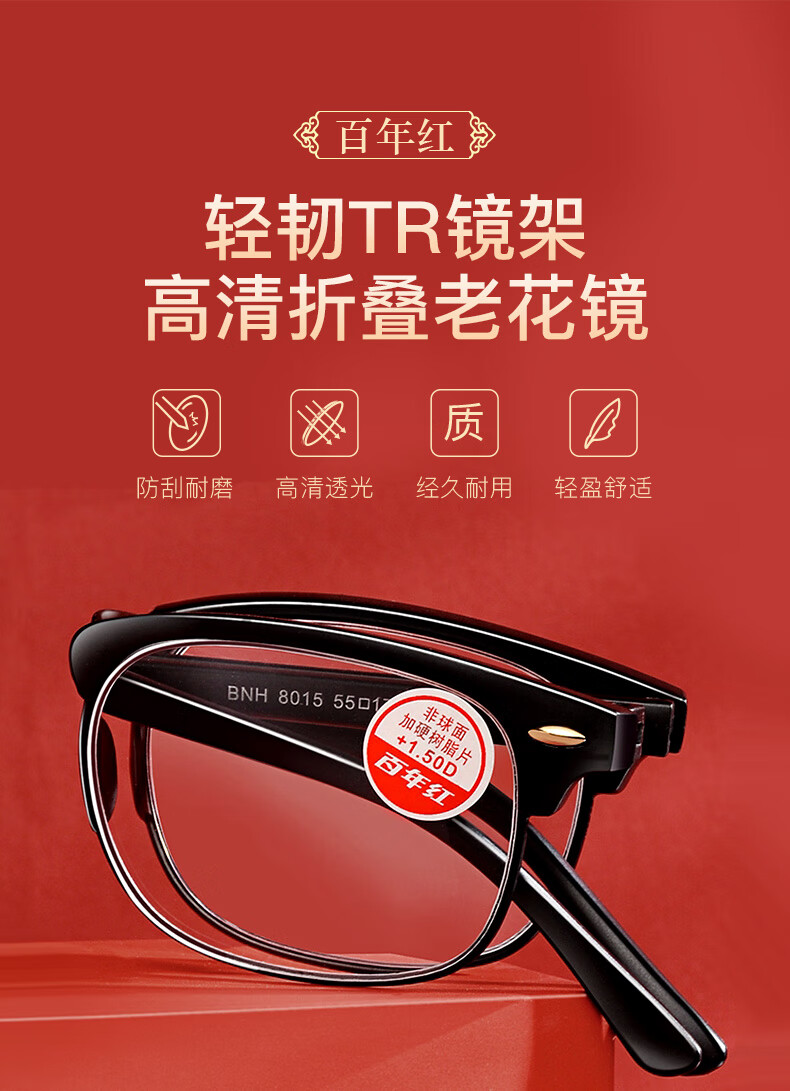 百年红老花镜男士折便携叠花镜高清舒适超轻眼镜时尚老人眼镜8015 250度