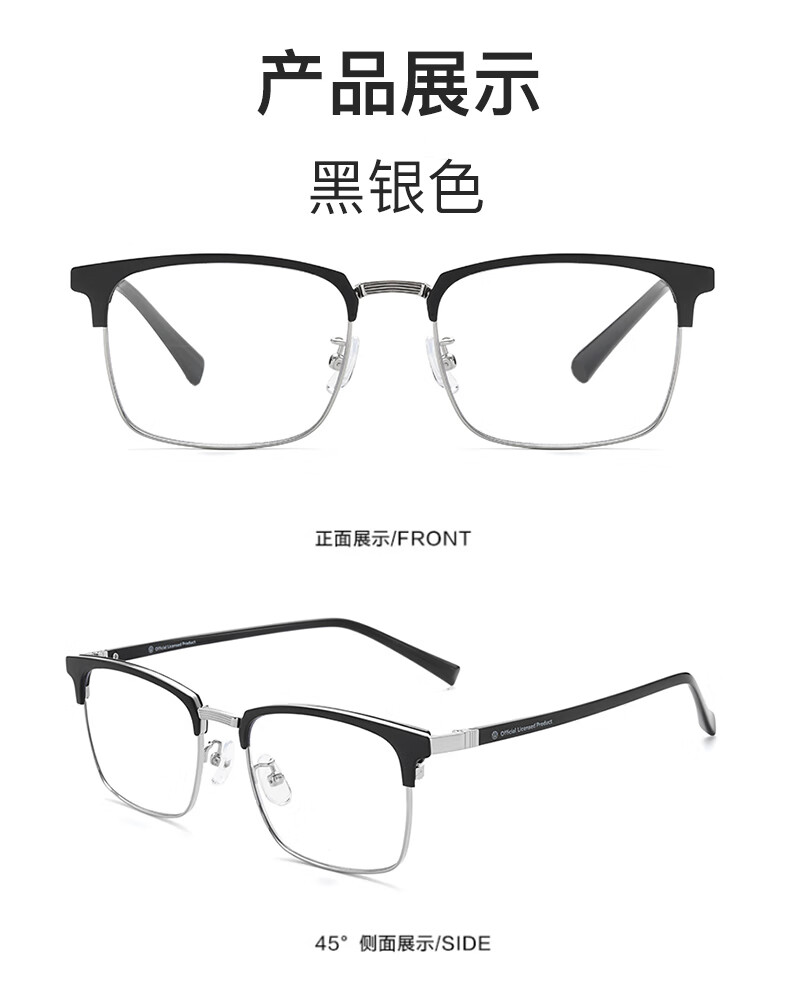 Gameking近视眼镜男女防蓝光眼镜防辐射可配度数眼镜框钛 95133黑银