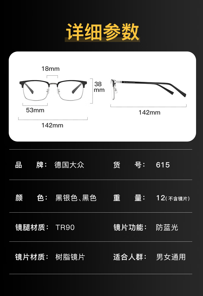 VOLKSWAGEN德国大众老花镜男士高清晰防蓝光正品进口眼镜W615-150