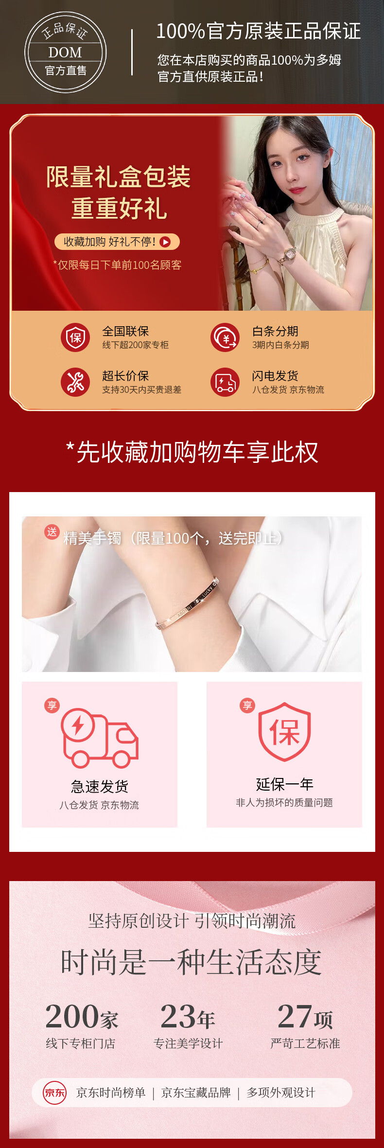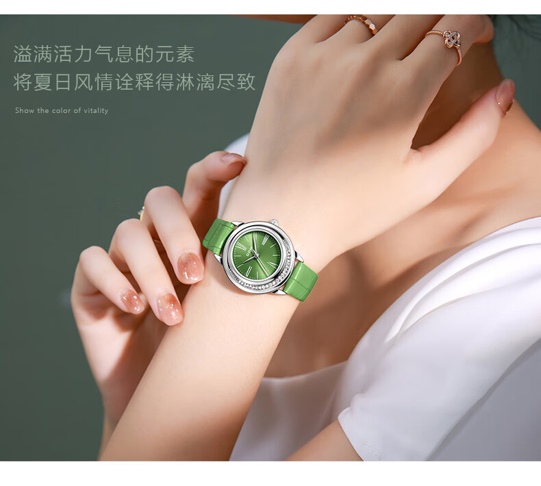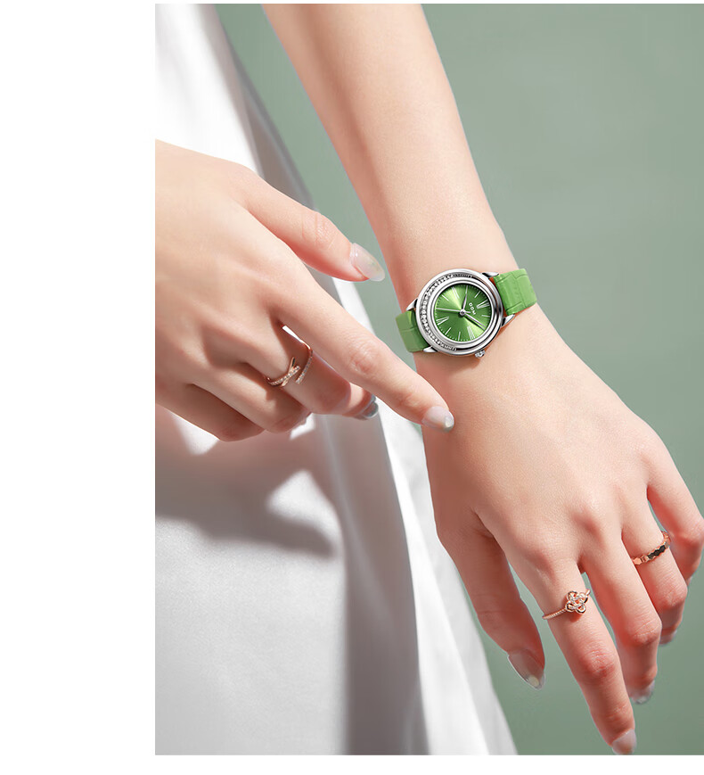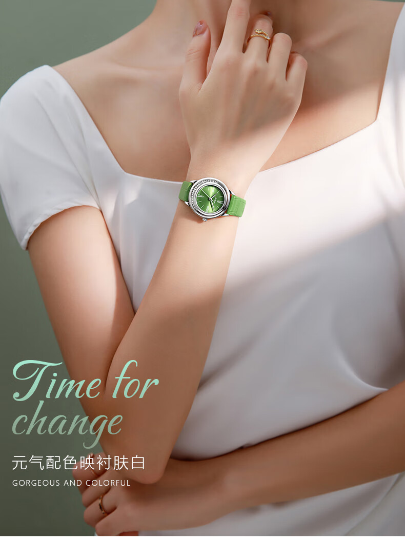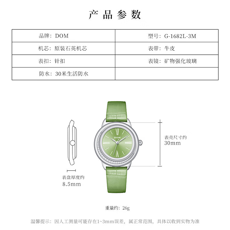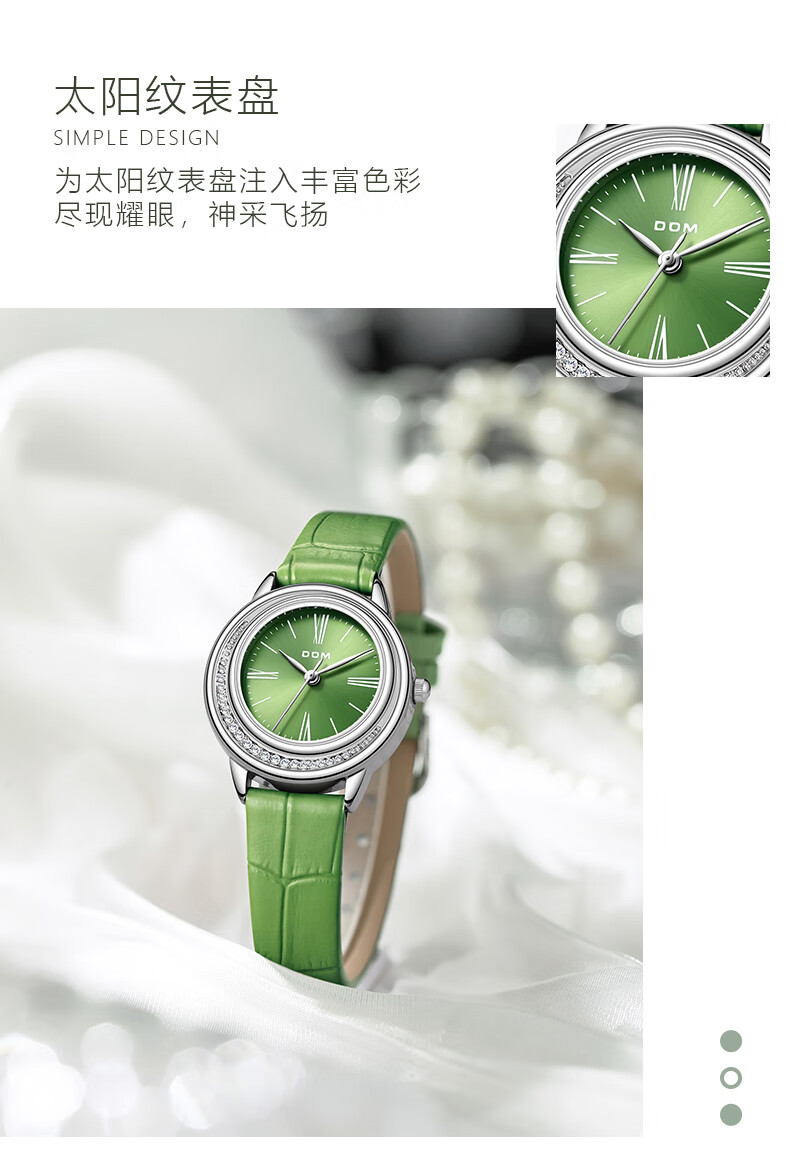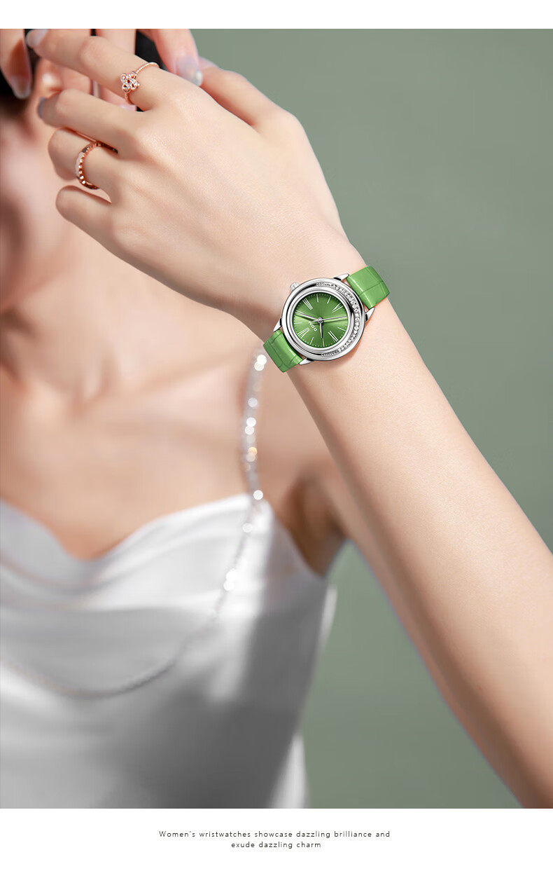 DOM钻圈手表女士机械风镶钻腕表小绿盘学生防水石英表生日礼物送女友