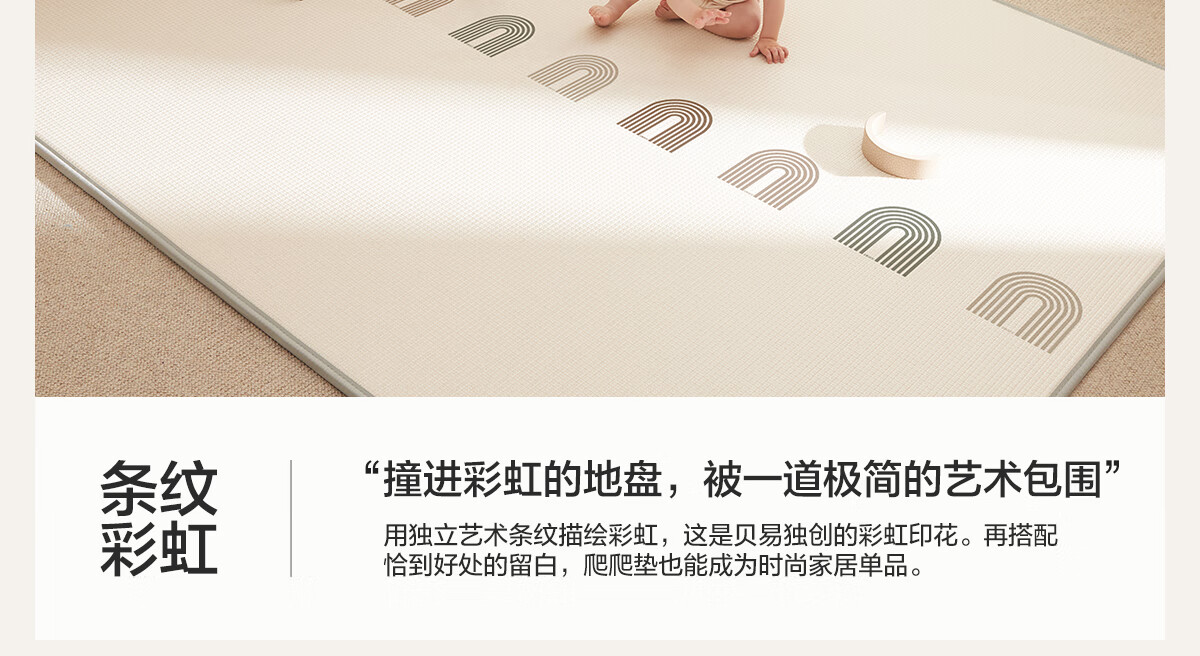 贝易宝宝爬行垫加厚婴幼儿爬爬垫XPE无甲酰胺整体垫-180*200*2.5-彩虹