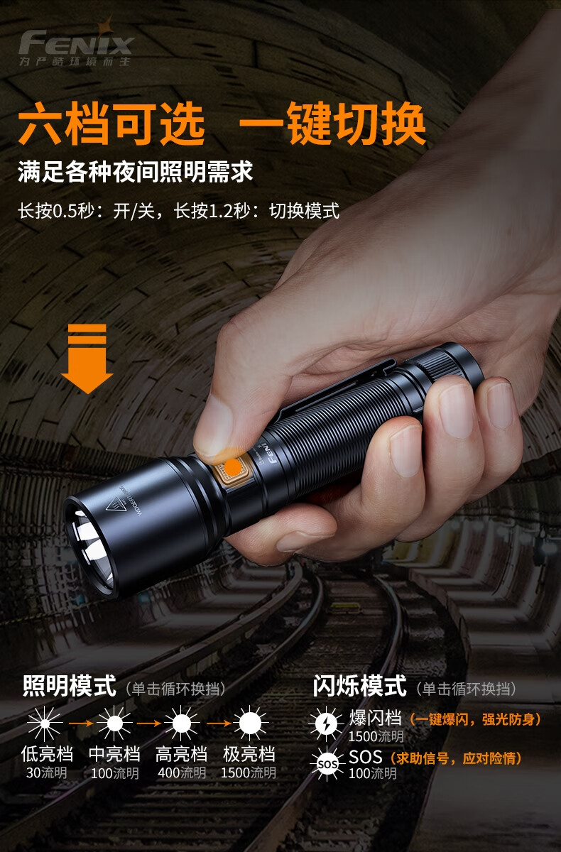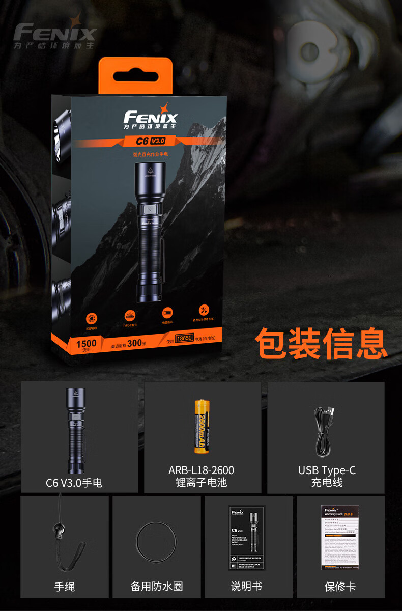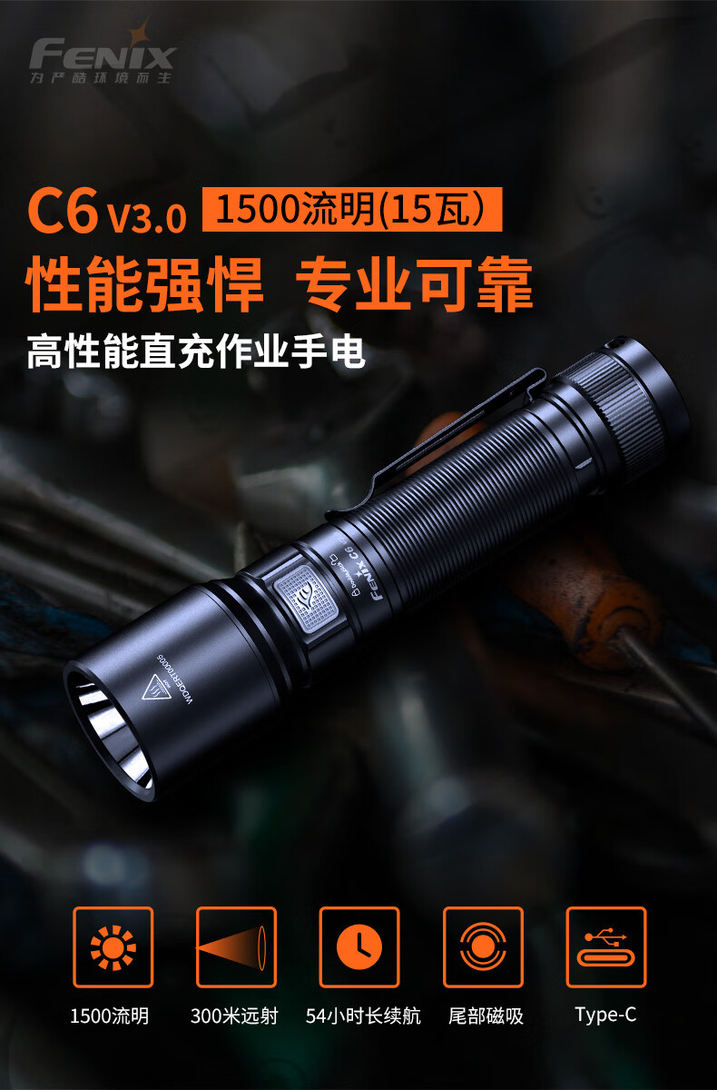 FENIX菲尼克斯手电筒C6 V3.0强光远射充电户外照明防水应急手电筒