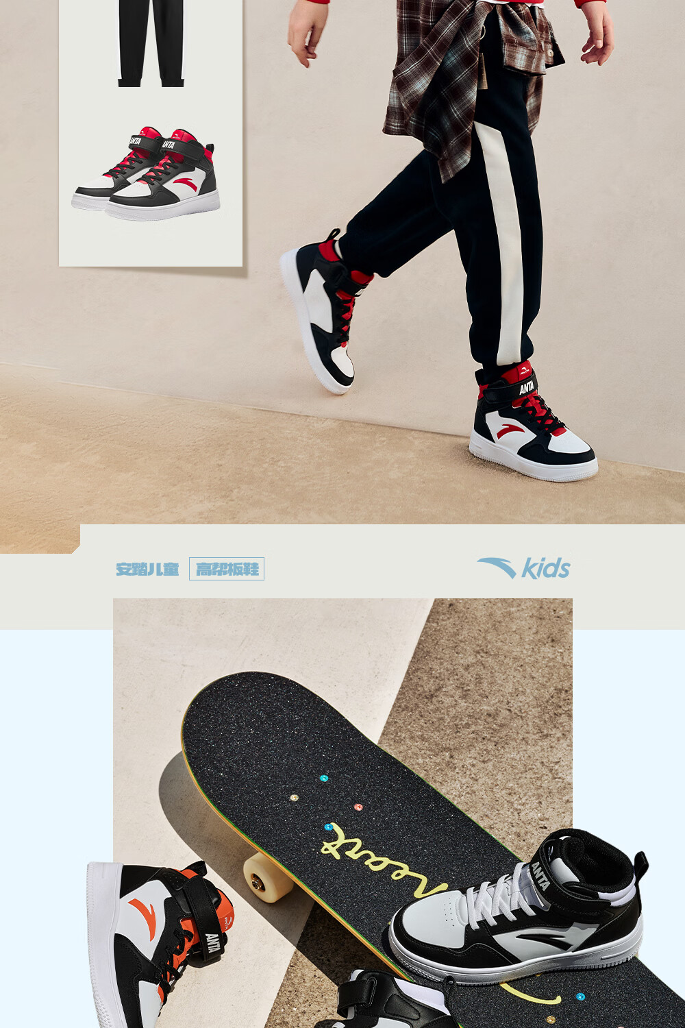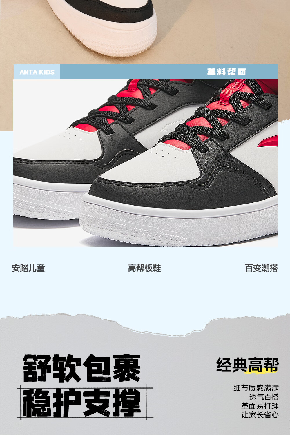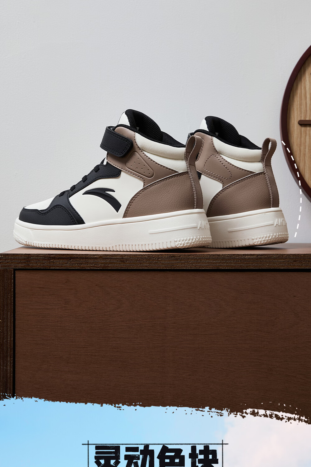 安踏儿童运动鞋男大童25秋冬休闲鞋小白鞋高帮板鞋A12438004H