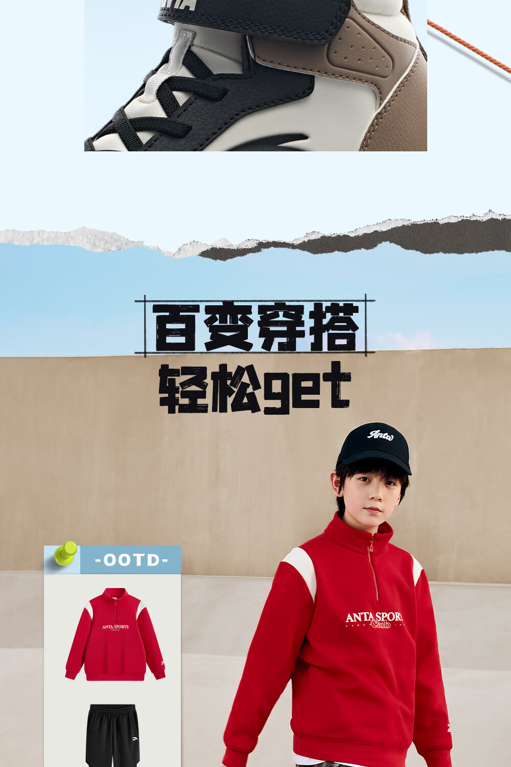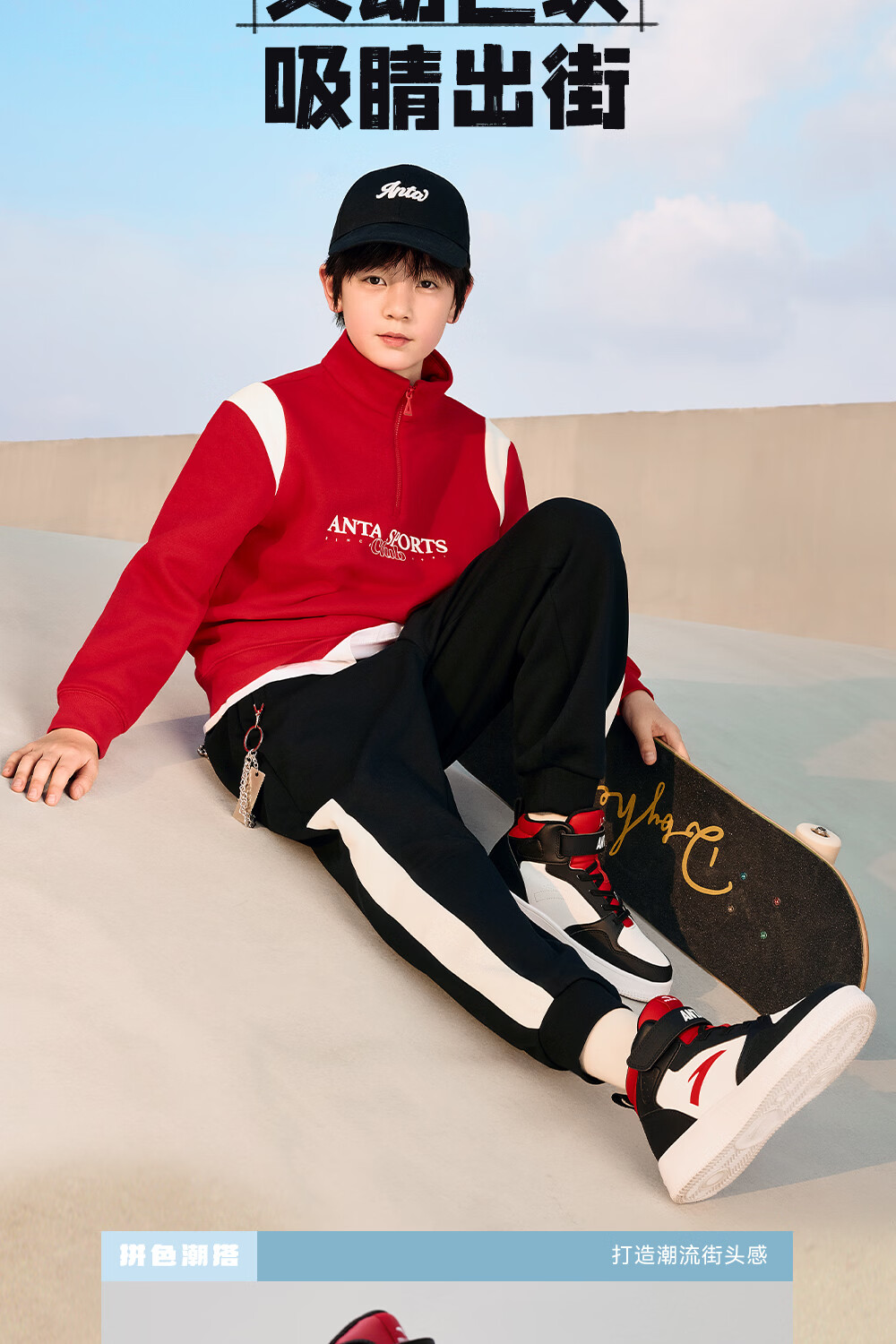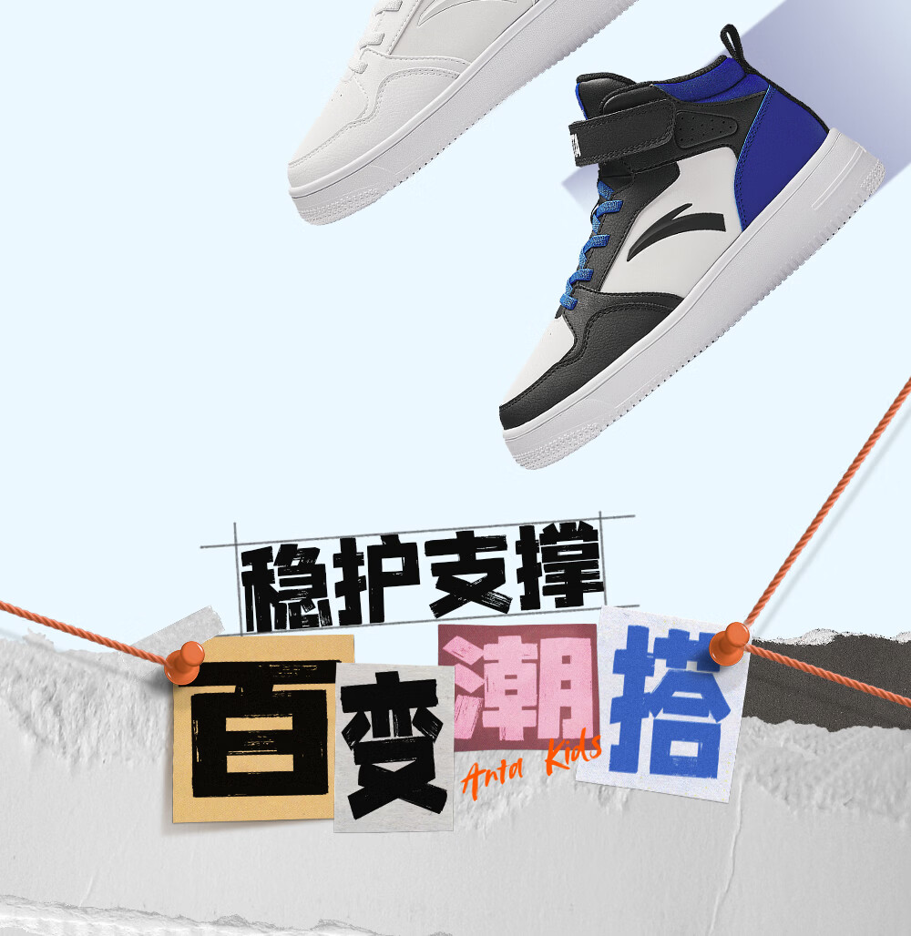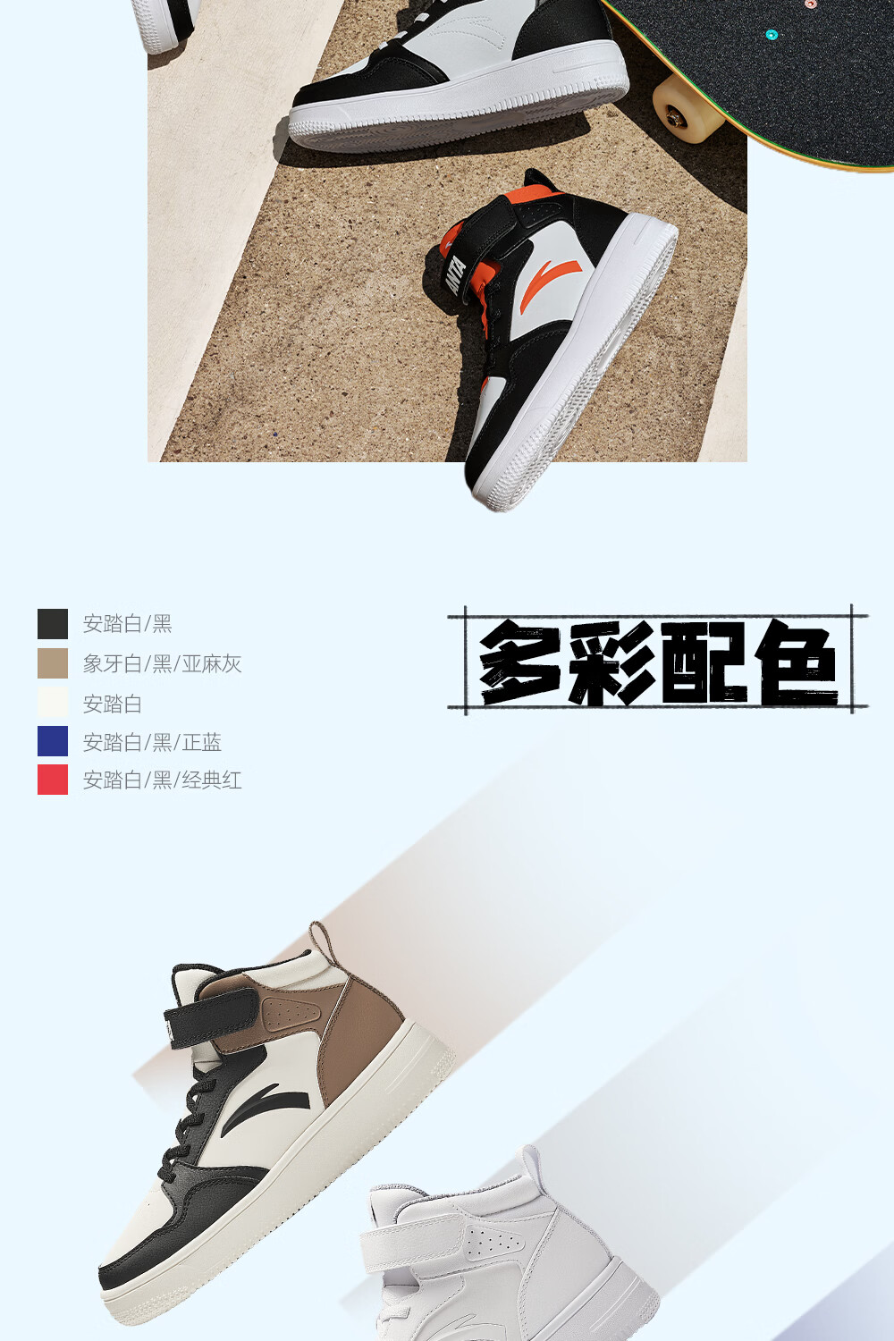 安踏儿童运动鞋男大童25秋冬休闲鞋小白鞋高帮板鞋A12438004H