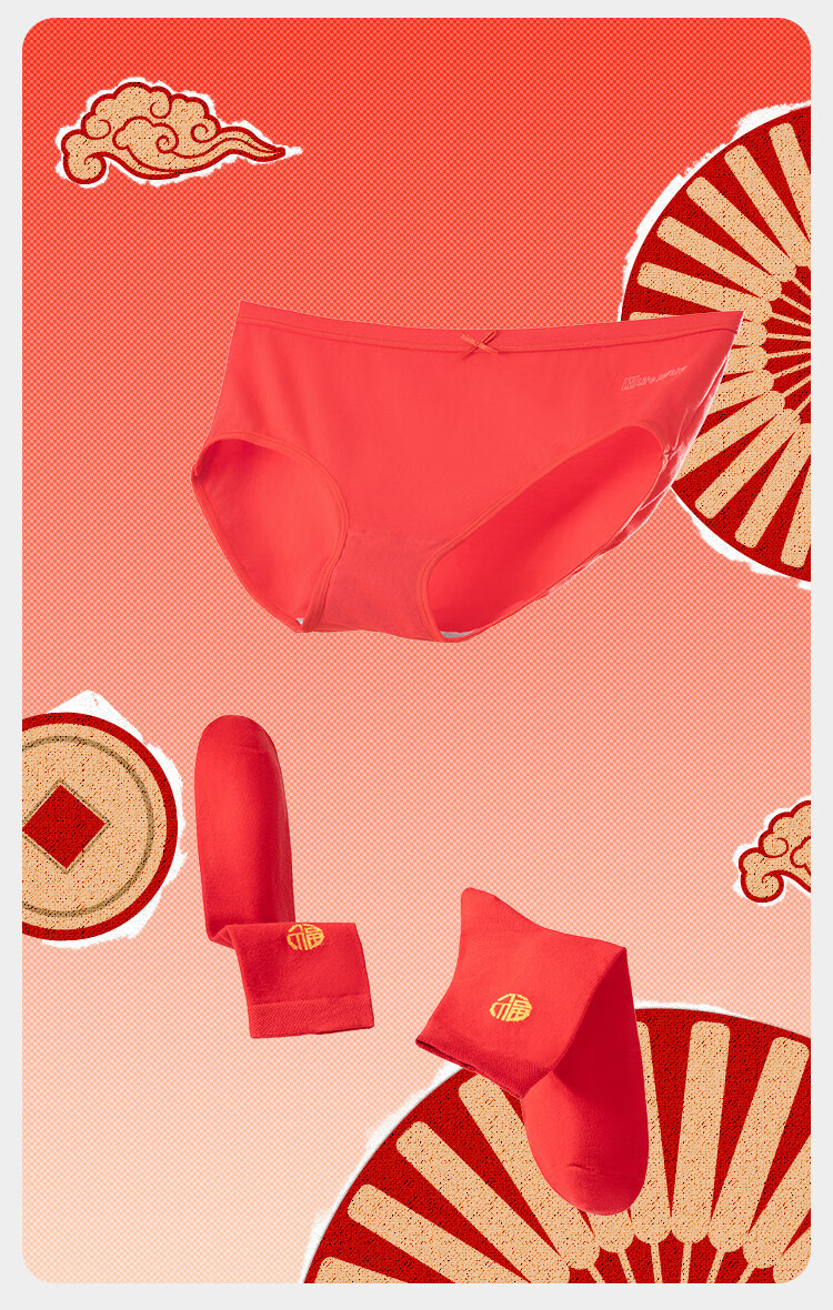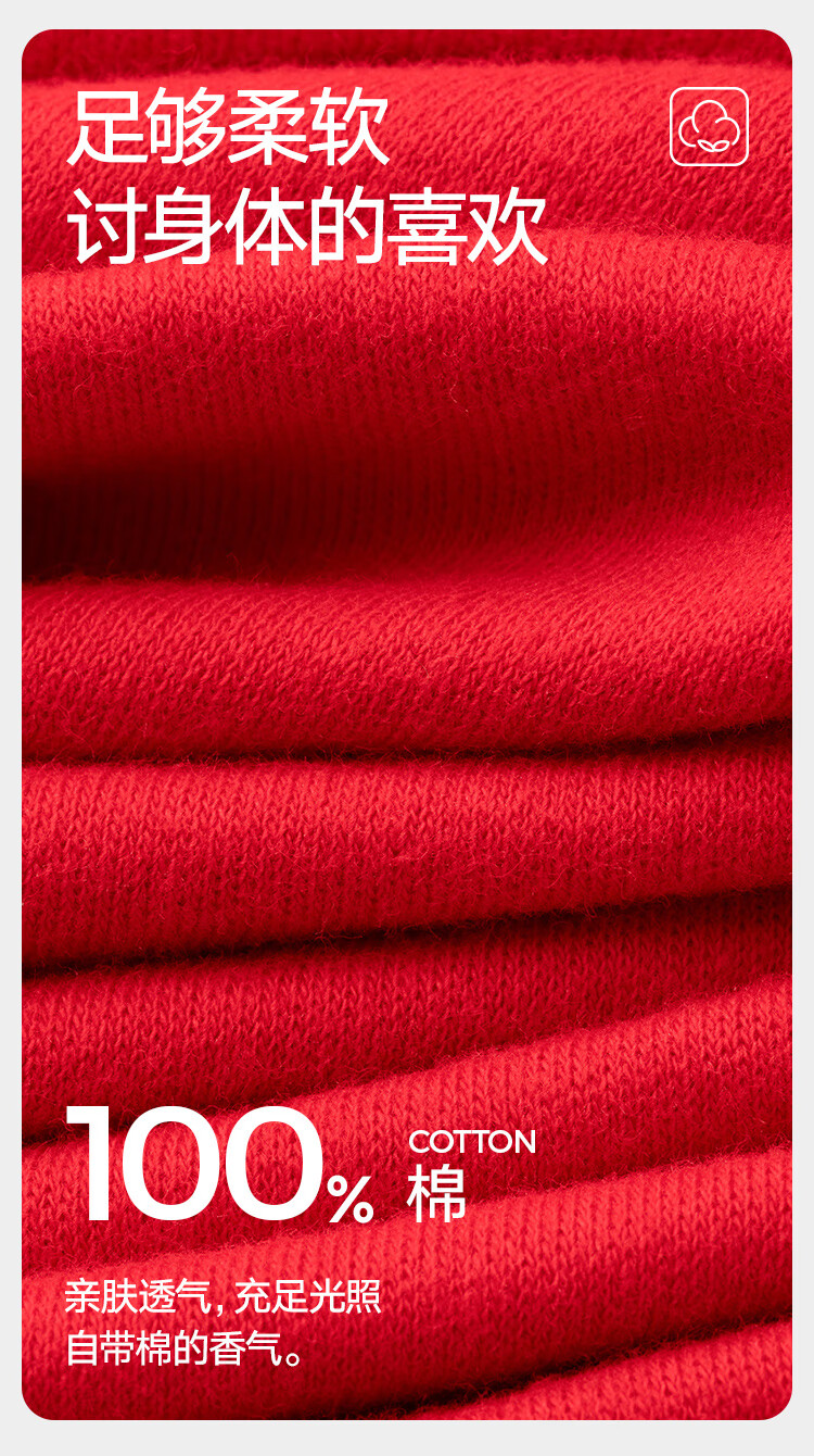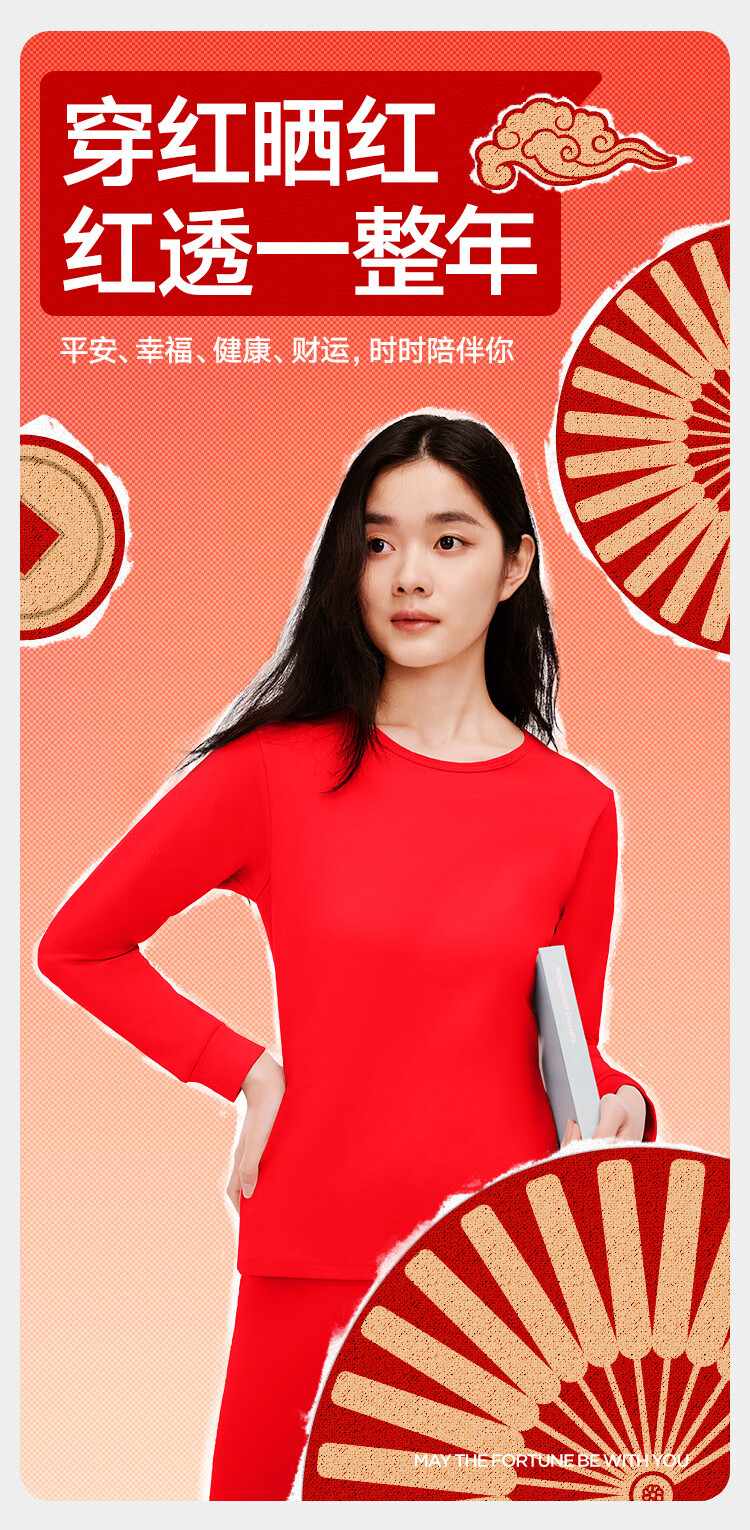 海澜之家【鸿运礼盒】秋衣秋裤女本命年马年纯棉210g骐骥红内衣内裤袜子