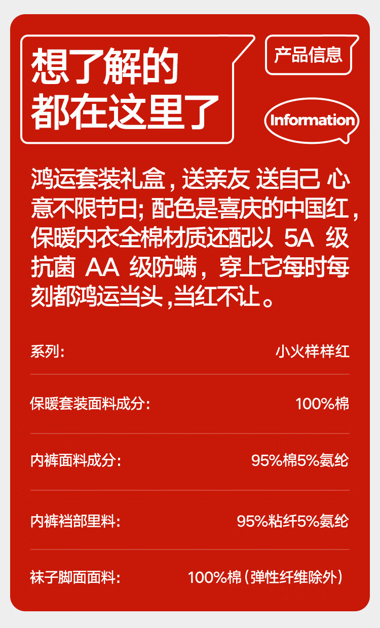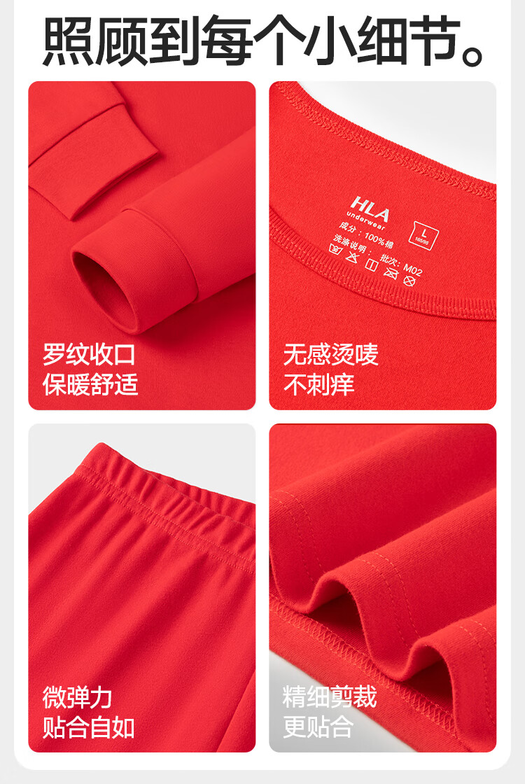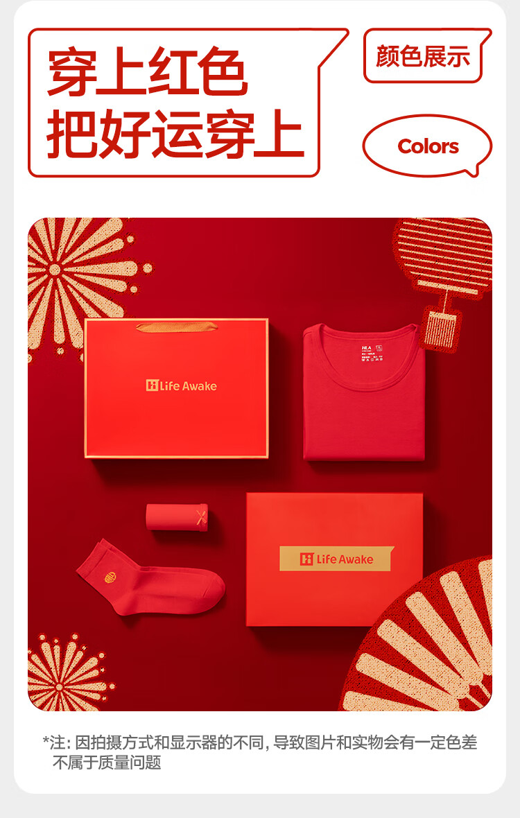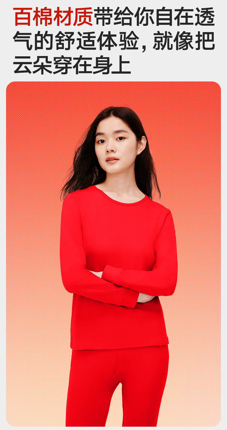 海澜之家【鸿运礼盒】秋衣秋裤女本命年马年纯棉210g骐骥红内衣内裤袜子