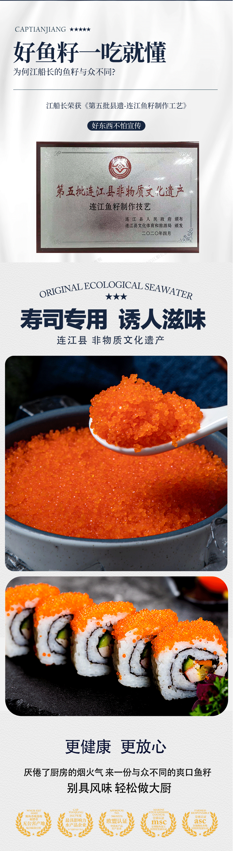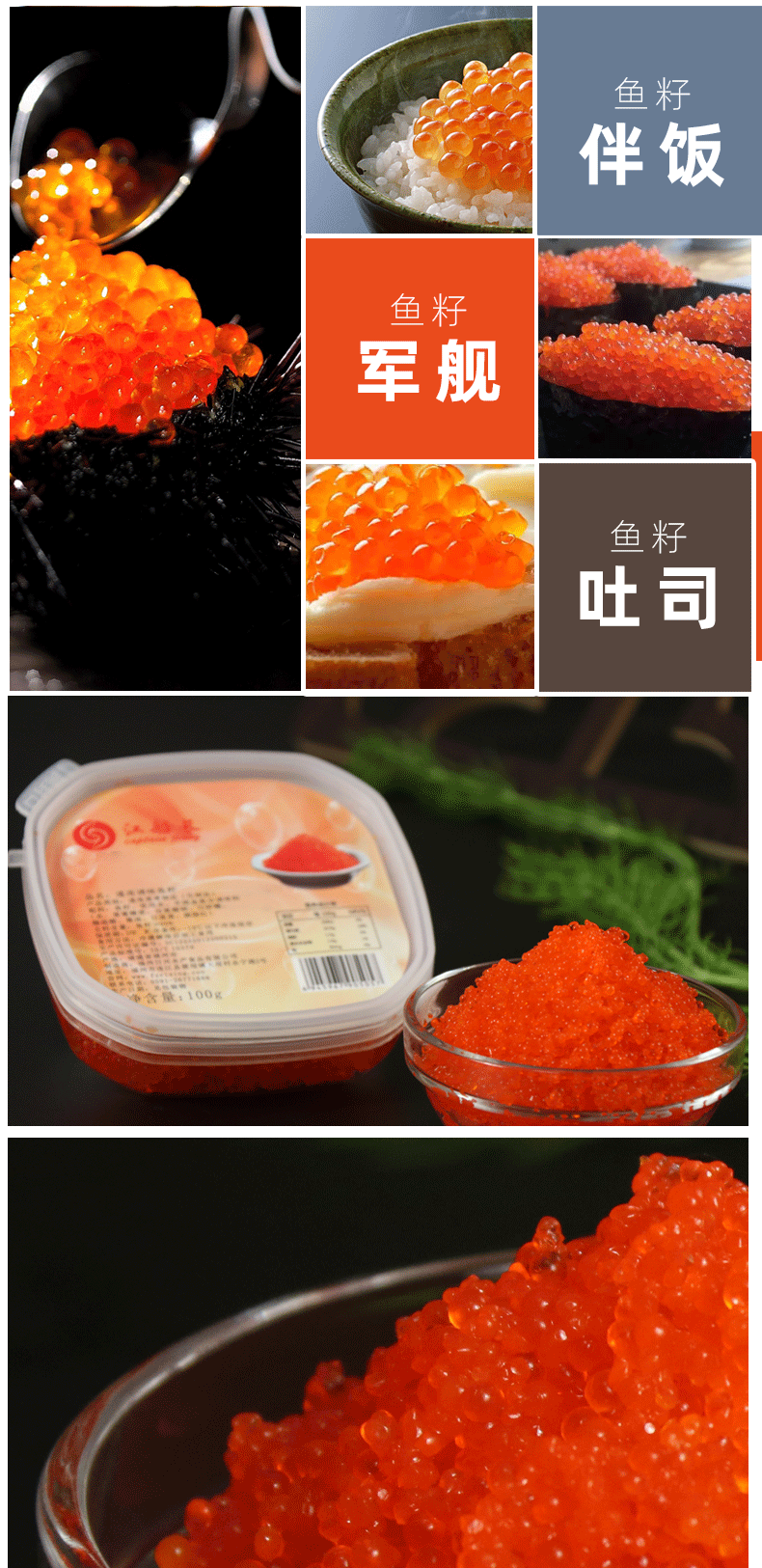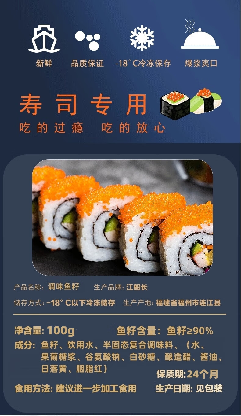 江船长新鲜鱼籽酱净重100g国产鱼子酱即食馄饨寿司料理食材拌饭海鲜美食 希零鱼籽800g(黄色)六条