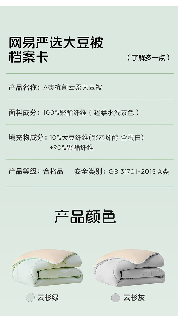 网易严选大豆被A类抗菌10%大豆纤维被夏凉被夏季空调被单双人被子 四季被【A类抗菌+10%大豆纤维】绿色 200*230cm(适合1.5m/1.8m床)