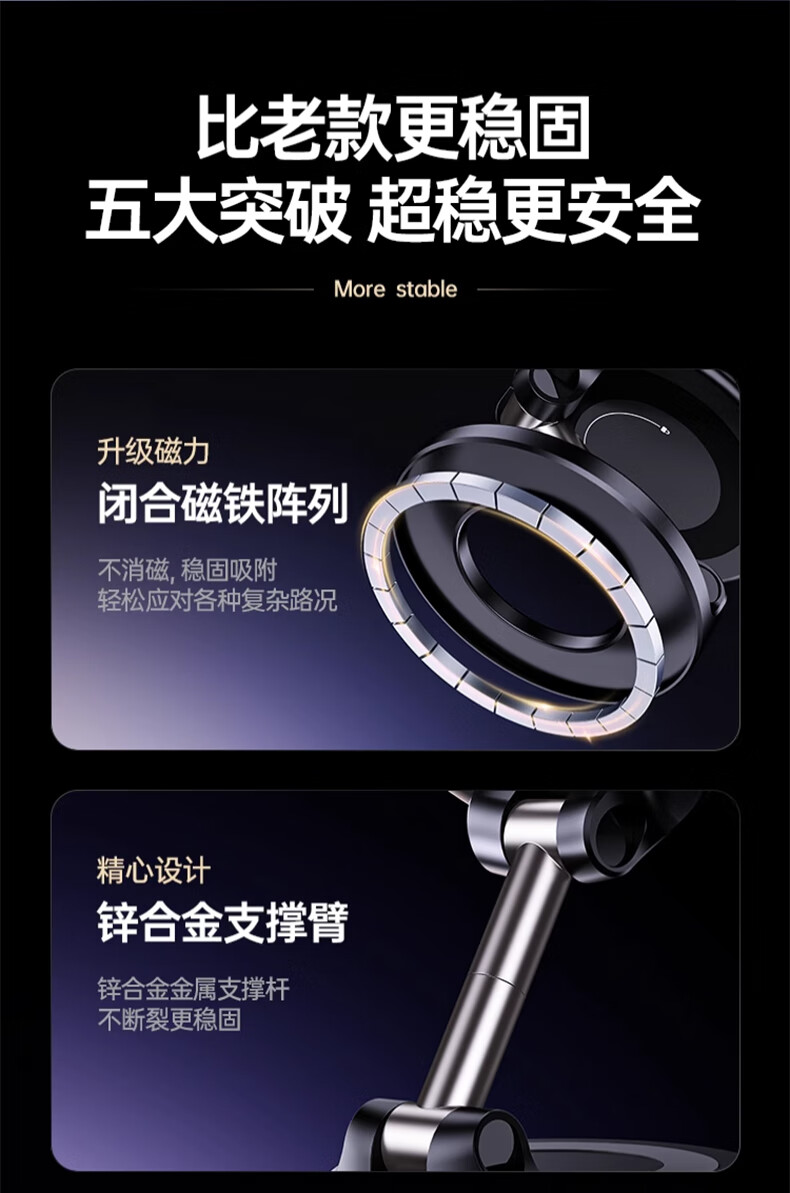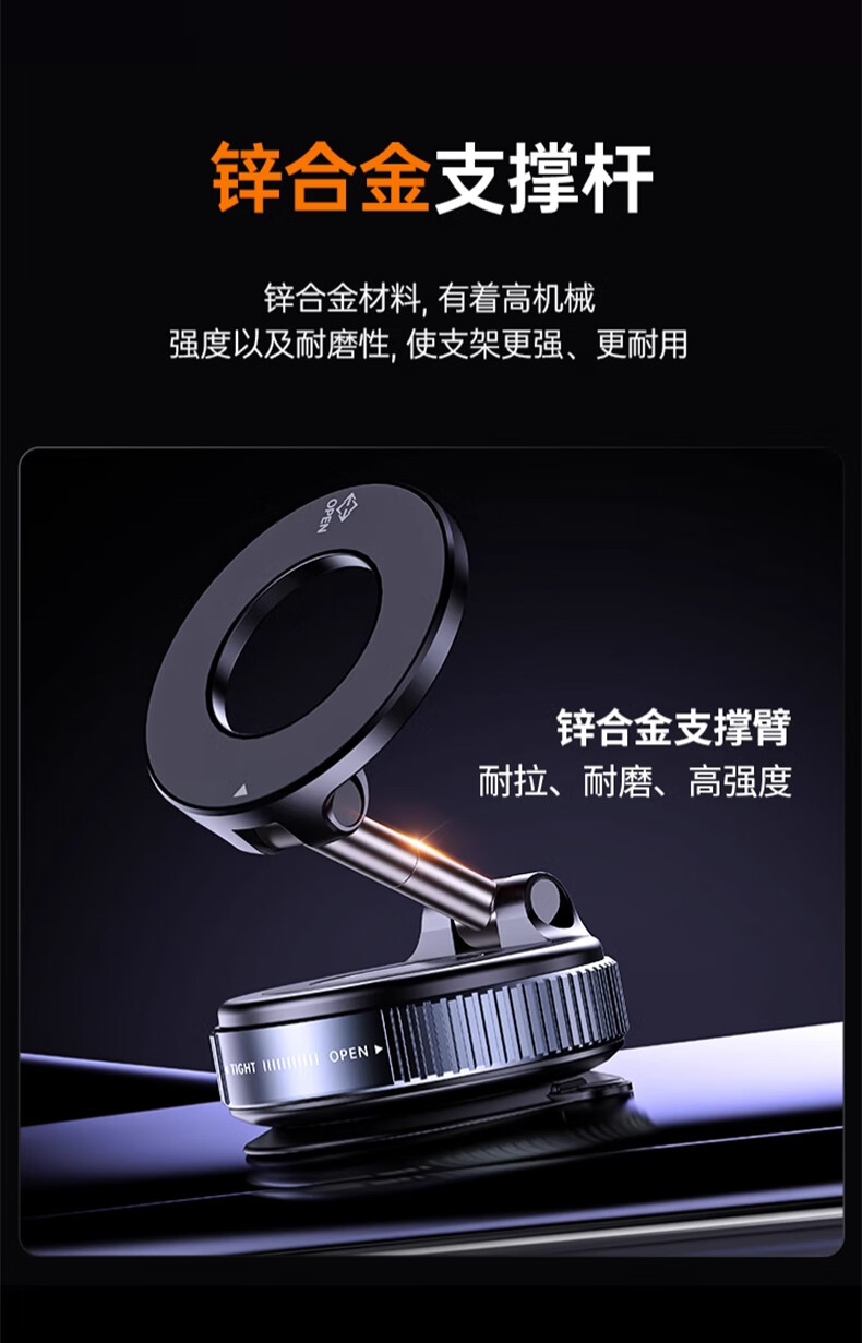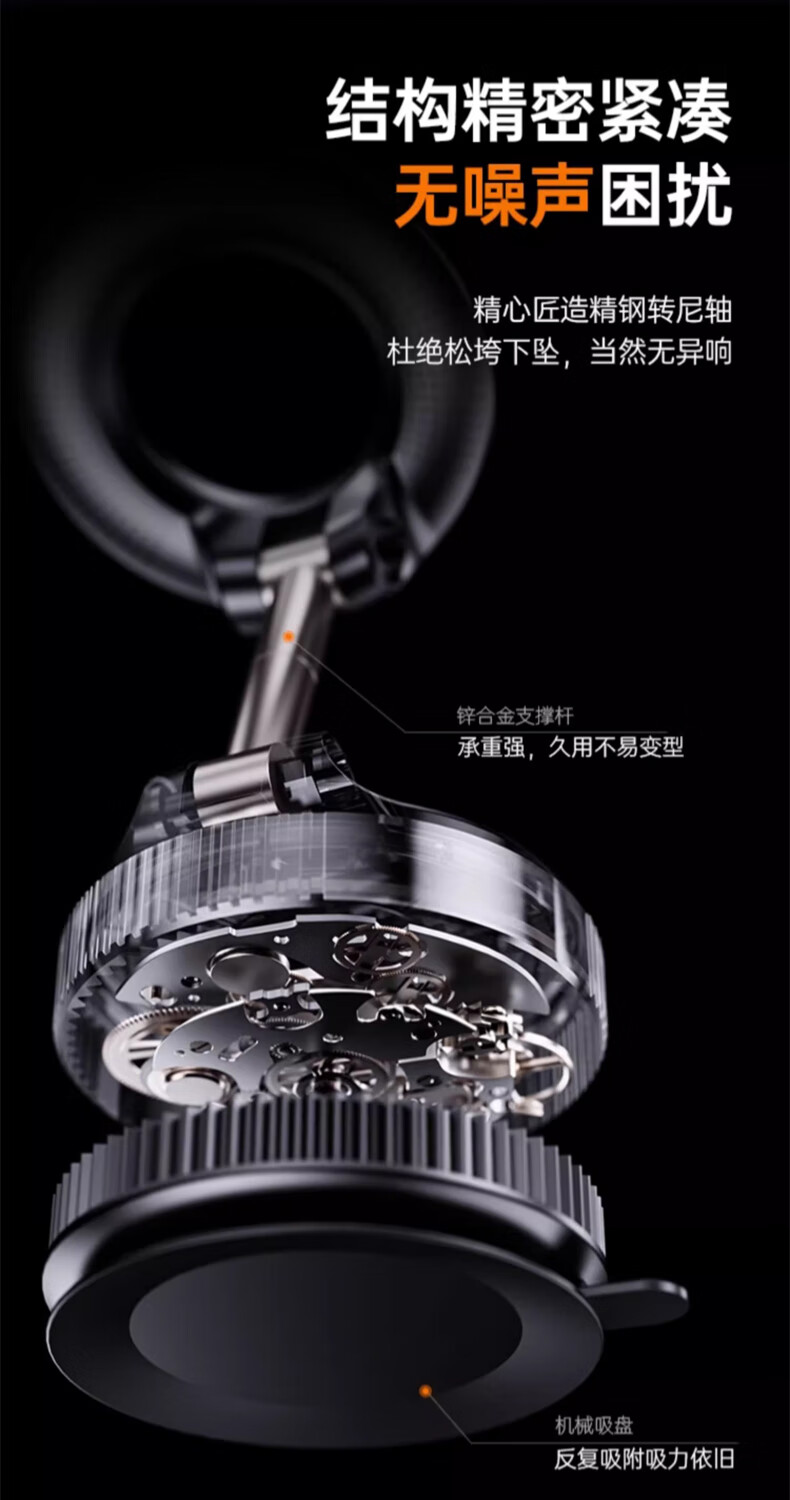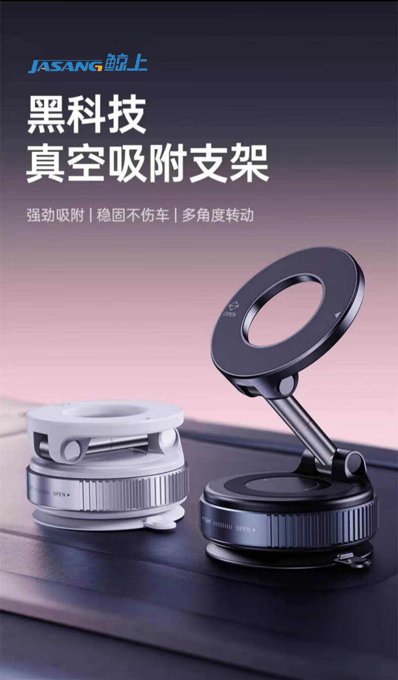 鲸上车载真空磁吸手机支架防抖高端汽车导航防抖支架多场景适用免充电 【黑】真空吸附*伸缩折叠*强稳