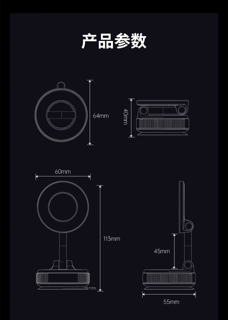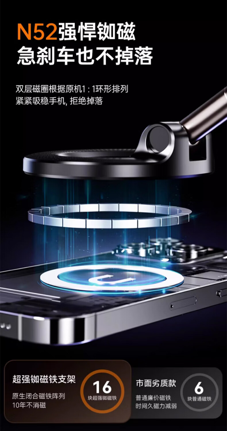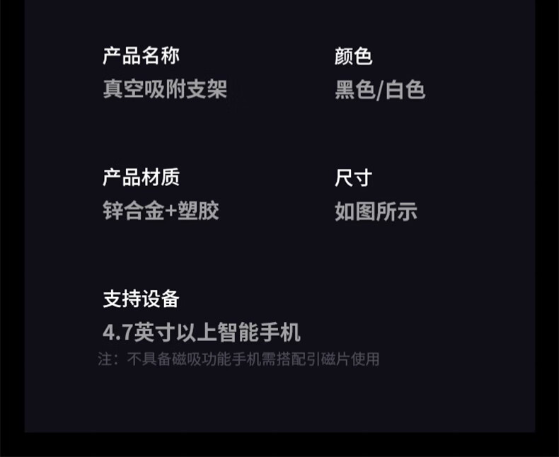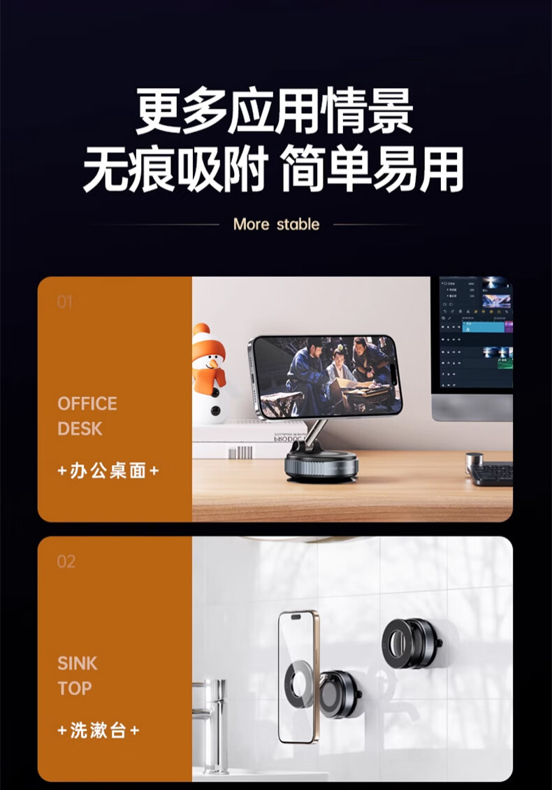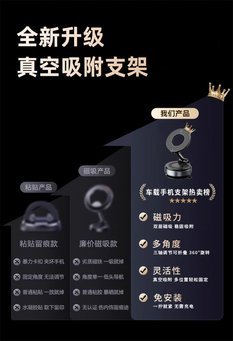 鲸上车载真空磁吸手机支架防抖高端汽车导航防抖支架多场景适用免充电 【黑】真空吸附*伸缩折叠*强稳