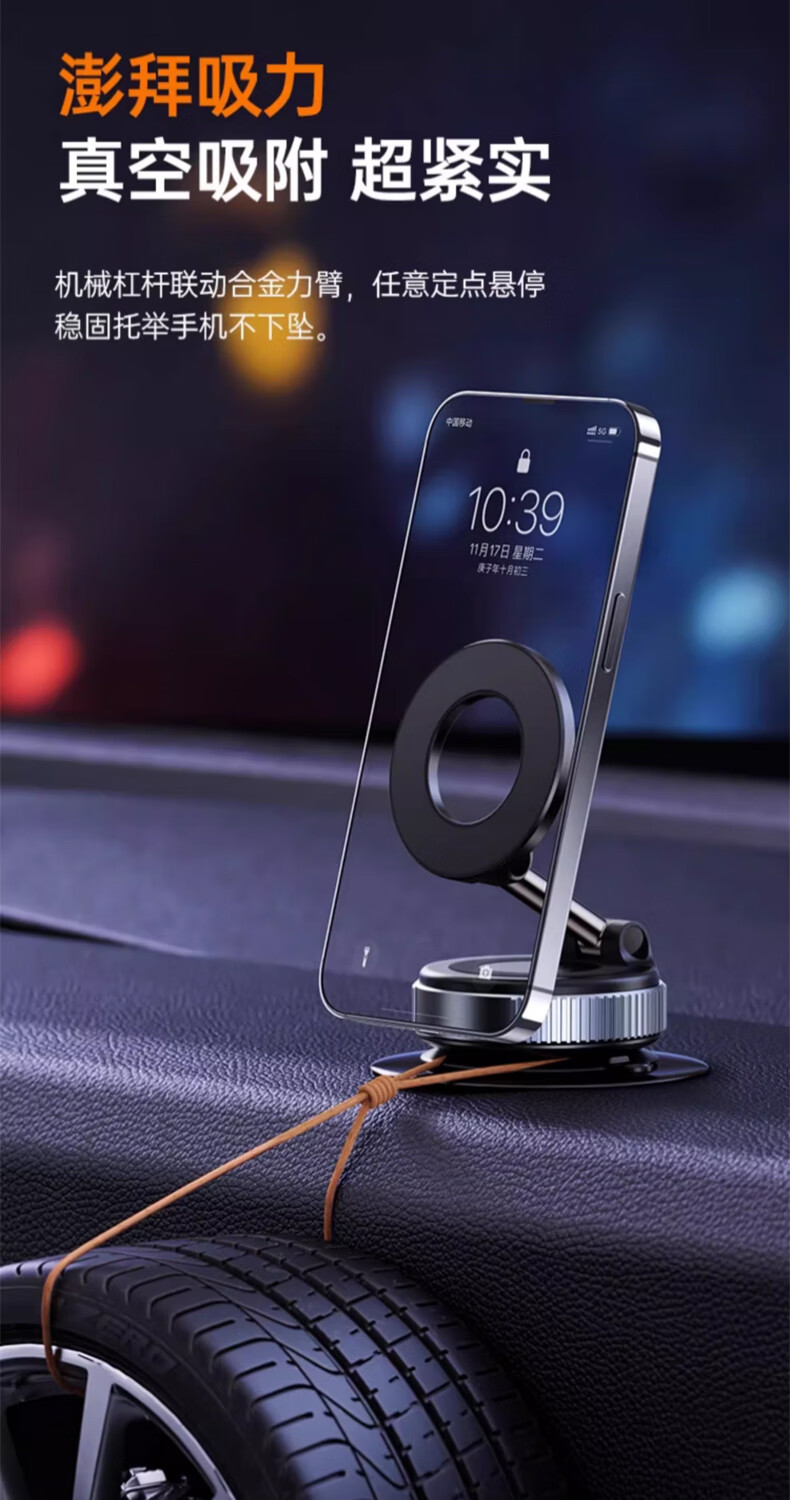 乐益磁吸车载手机支架真空吸附吸盘式汽车专用导航适用特斯拉2026新款