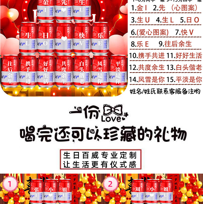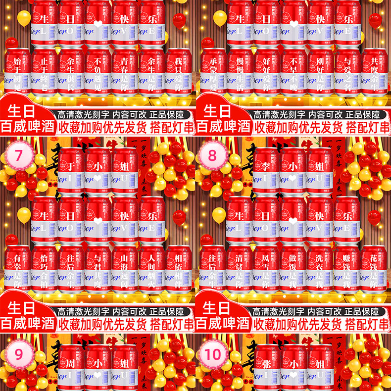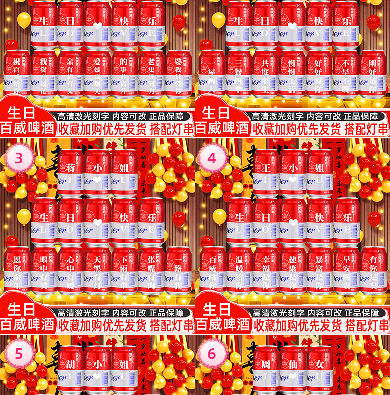 百威啤酒易拉罐定制刻字生日礼物送女生朋友闺蜜老婆创意惊喜场景布置 15号生日模板15罐【定制内容可以改动】