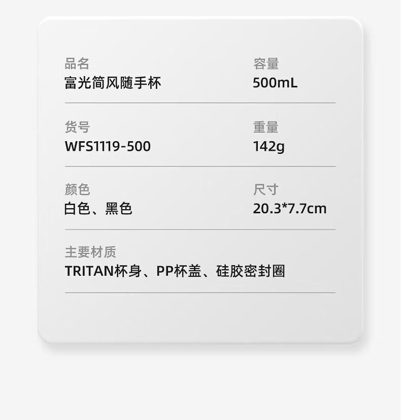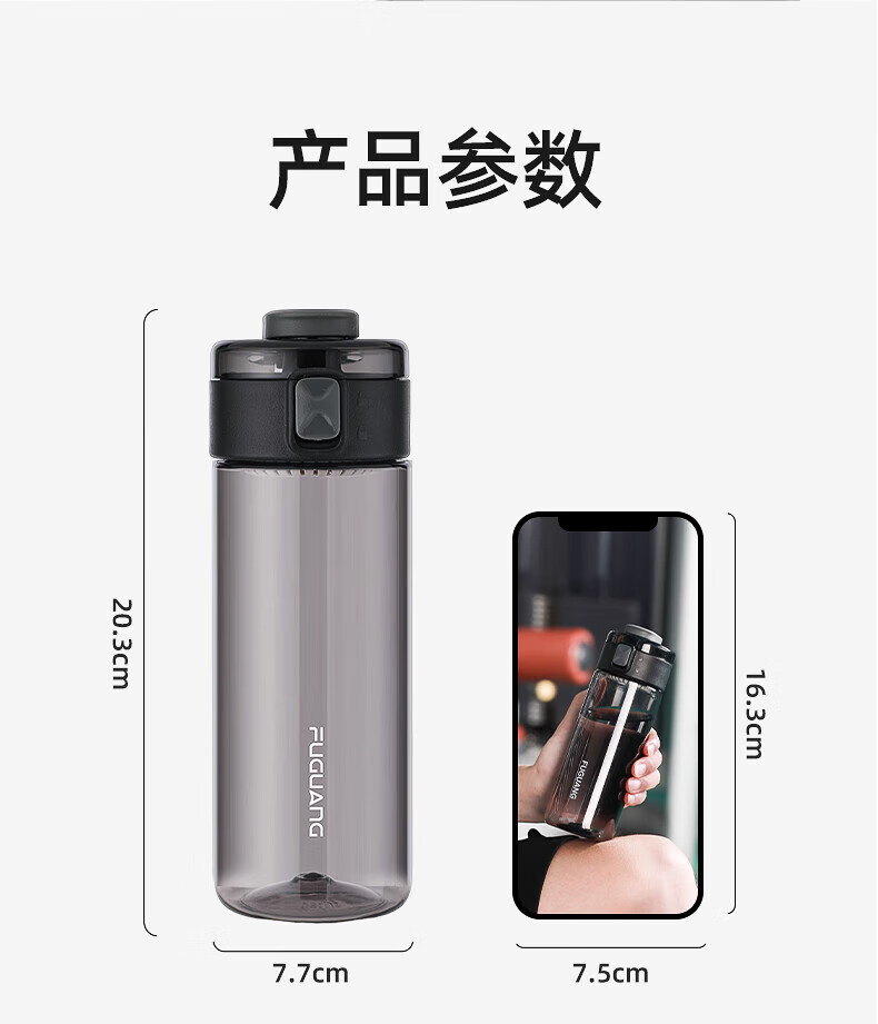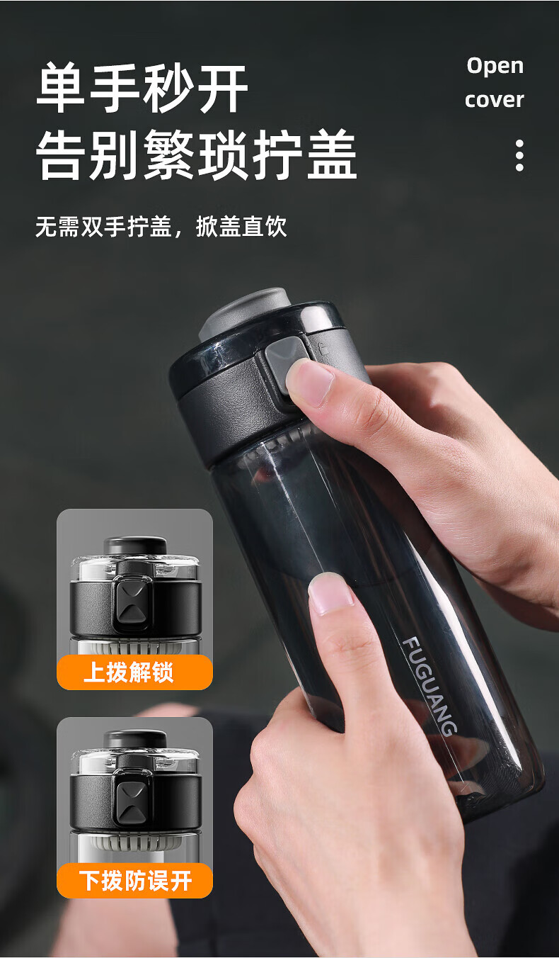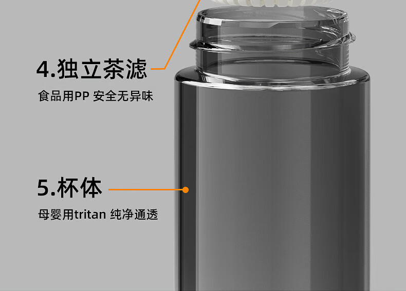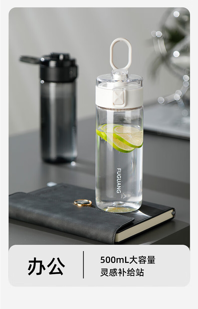 富光水杯茶杯茶水分离男女士塑料杯运动学生大容量水壶杯子高颜值 深空灰 500ml