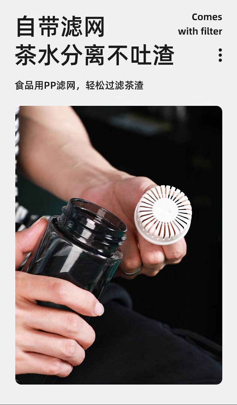 富光玻璃杯双层高硼硅水杯车载便携家用隔热玻璃杯茶水分离泡茶杯 双层加厚便携防烫 330ML