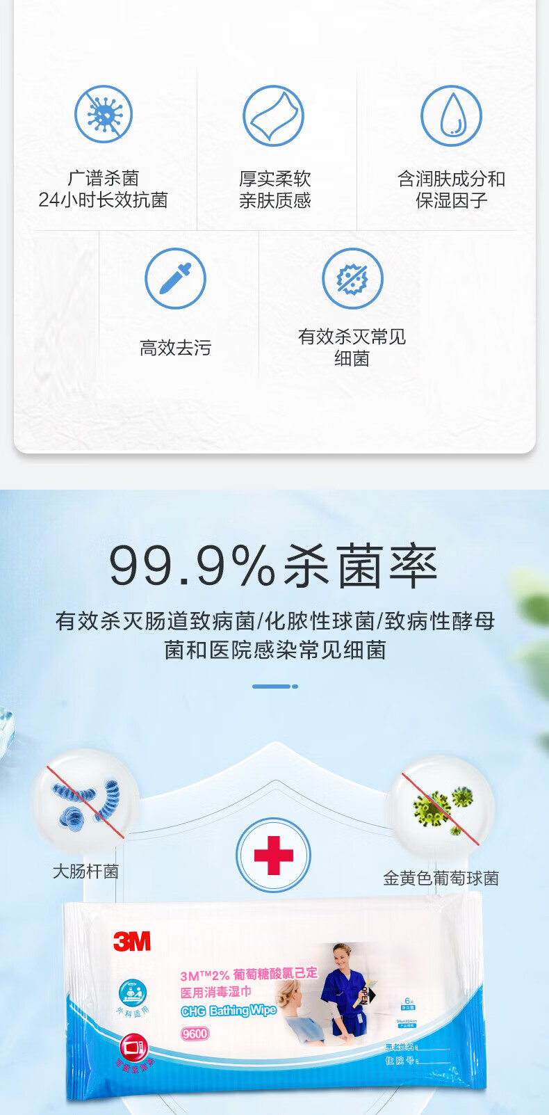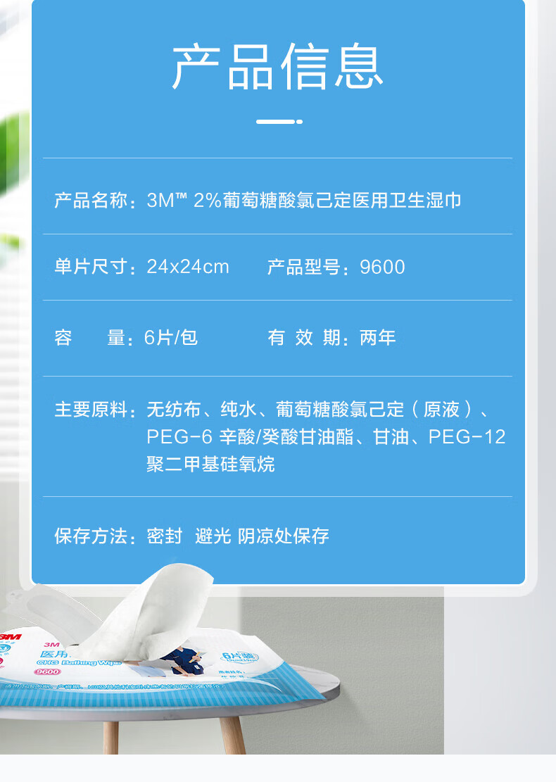 3M 2%葡萄糖酸氯已定医用消毒湿巾可加热皮肤清洁卫生除菌抑菌9600 9600湿巾3包