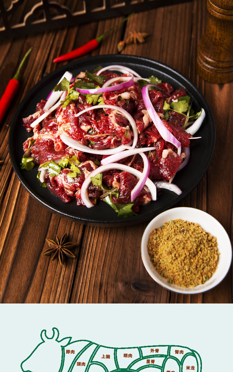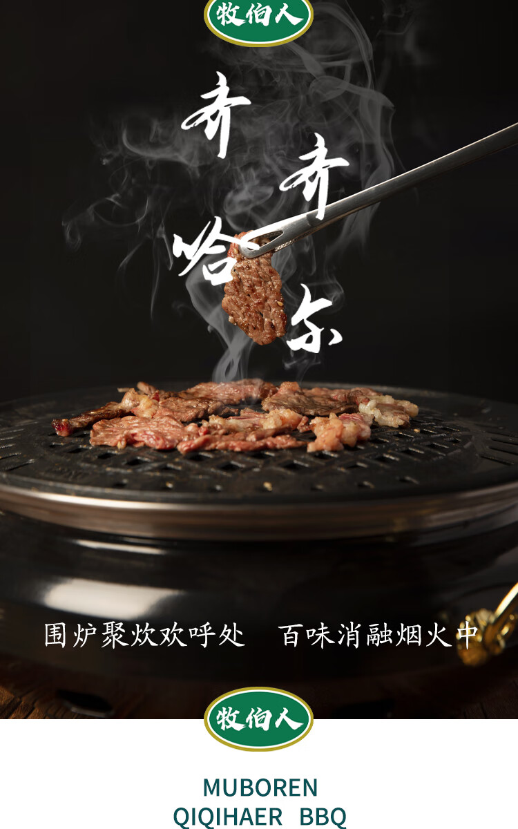 牧伯人齐齐哈尔烤肉烧烤套餐安格斯牛肉250g*6袋烧烤雪花牛肉 传统+腱子+胸口/500g+3袋20g蘸料