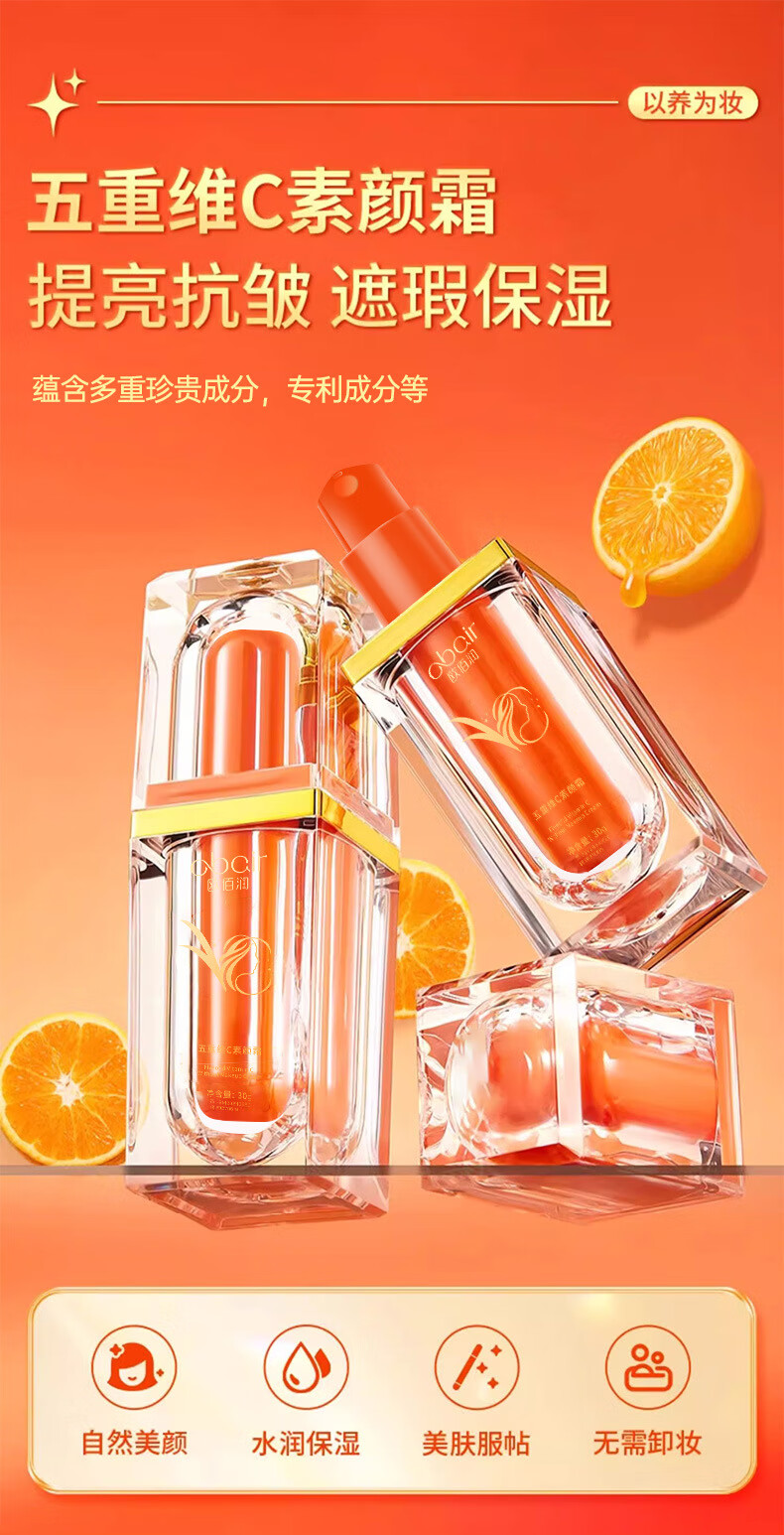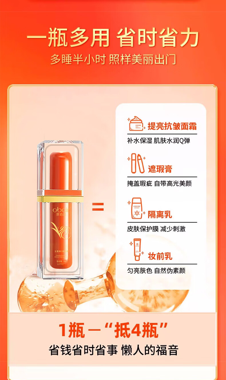 欧佰润 OBAIR欧佰润五重维C素颜霜懒人遮瑕保湿滋润美白提亮肤色不假白 两盒