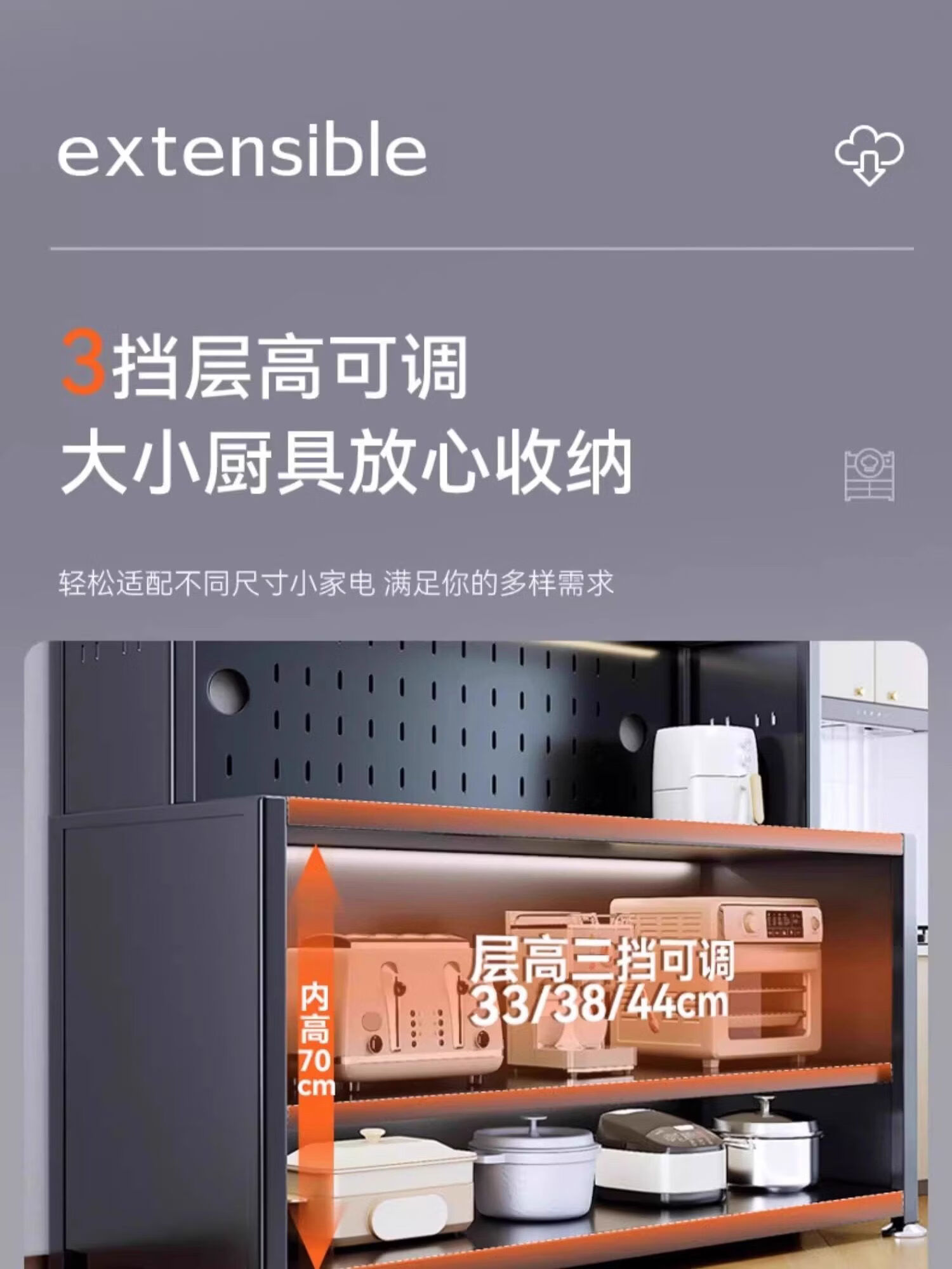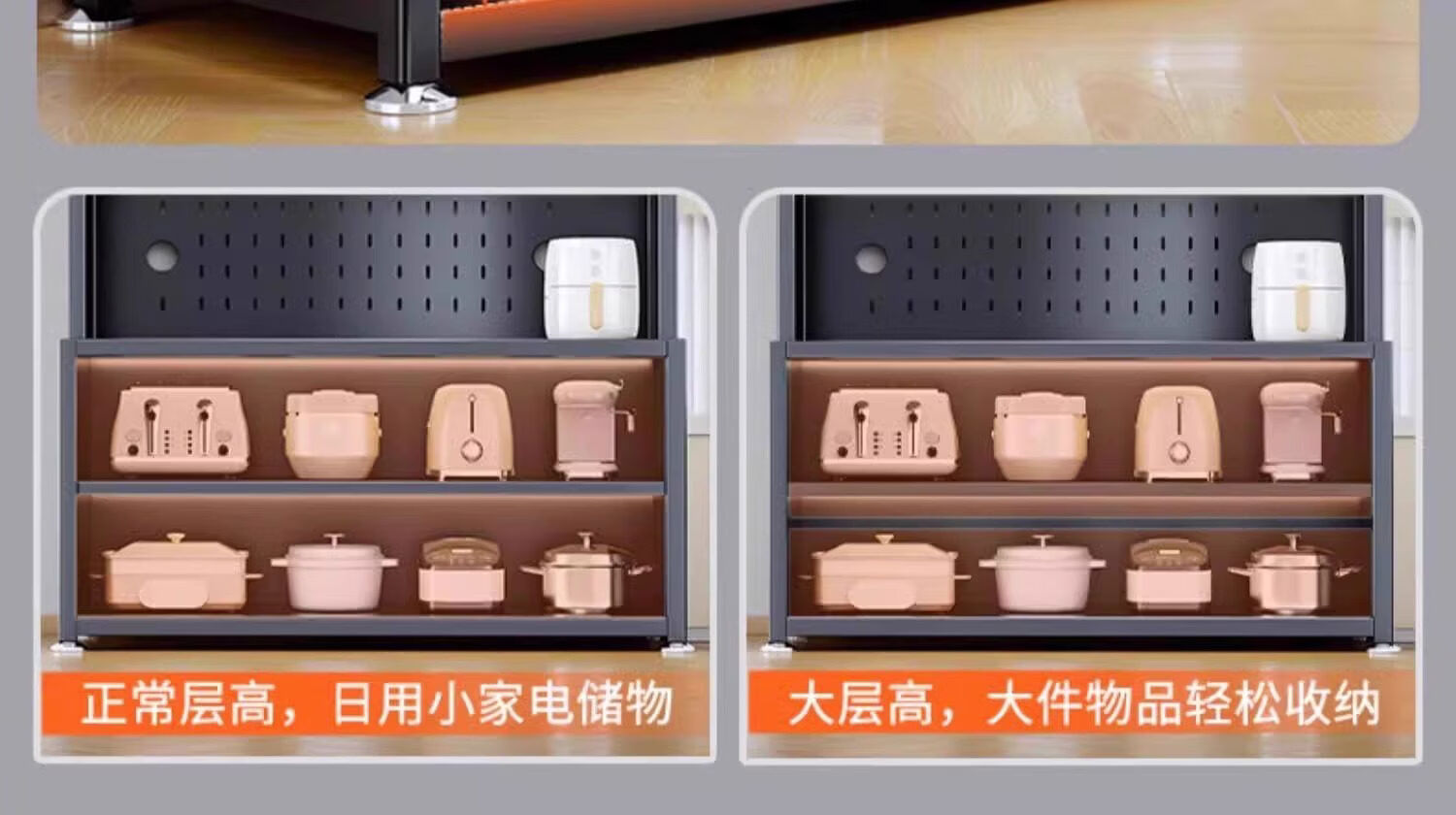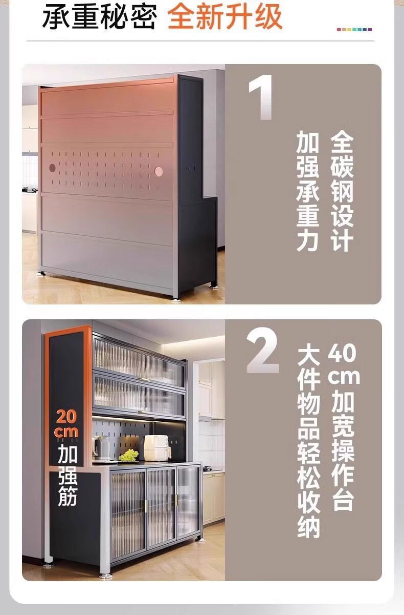 溥畔厨房置物架落地多层微波炉收纳柜子锅碗盘柜收纳柜餐柜一体 特厚碳钢白5层60cm+