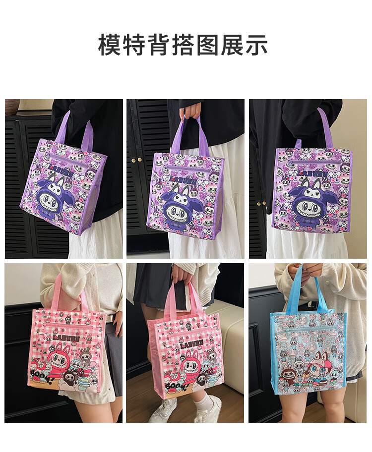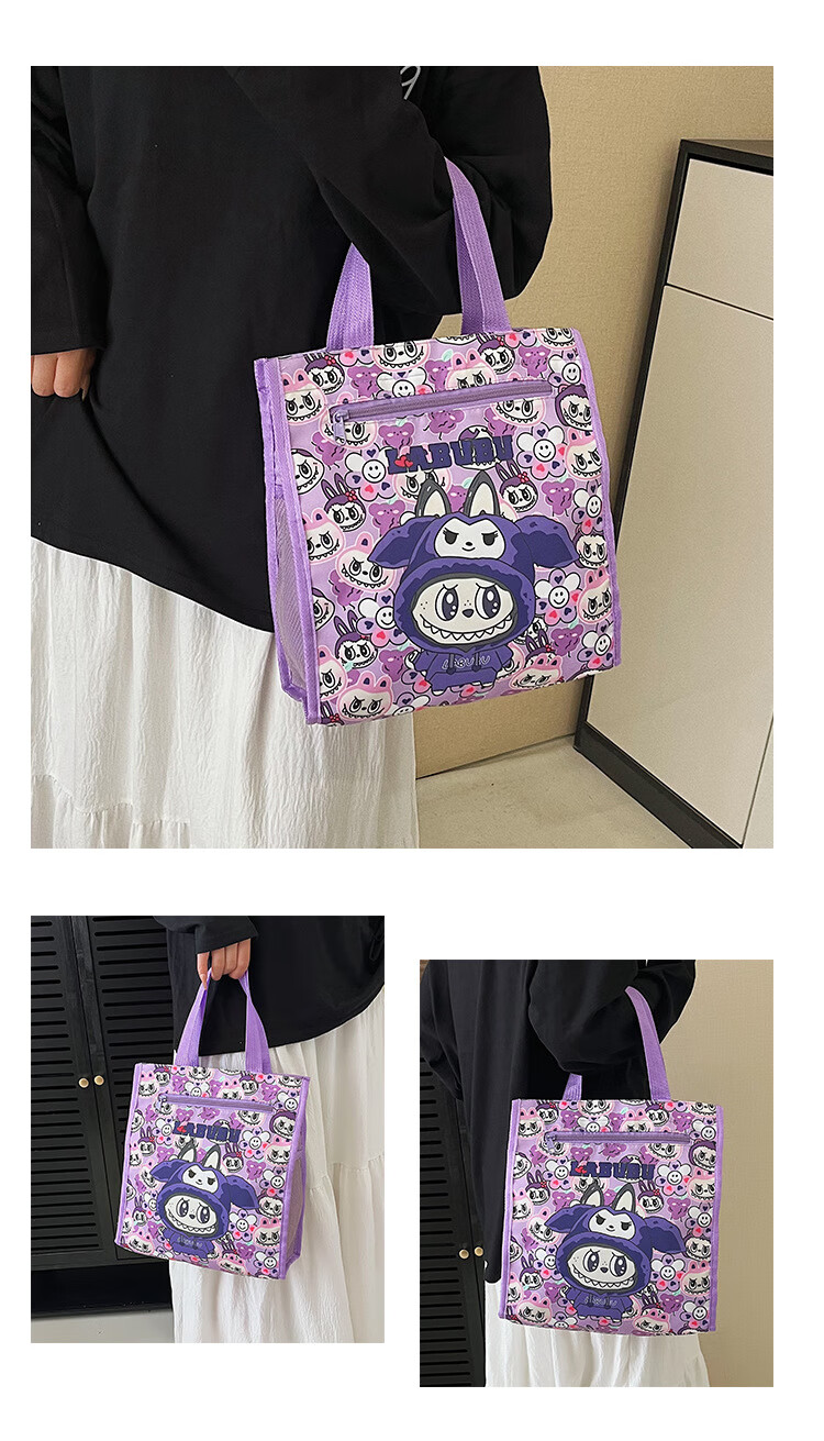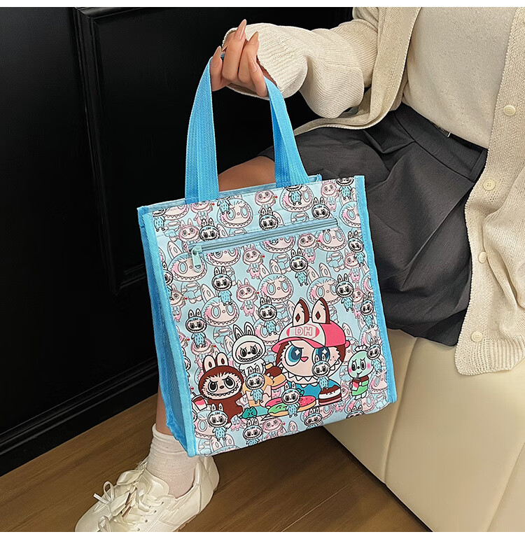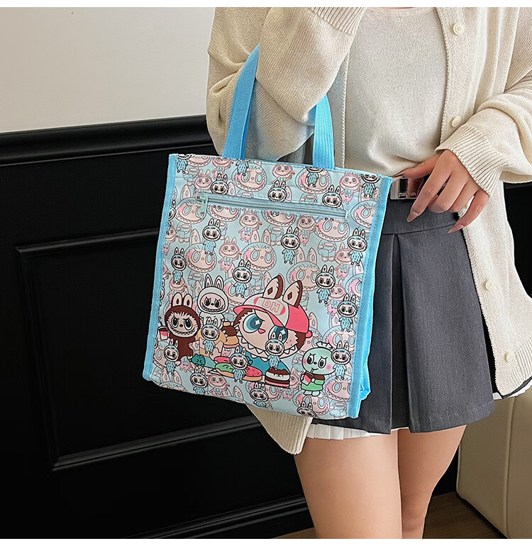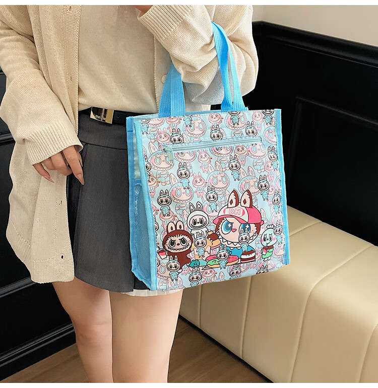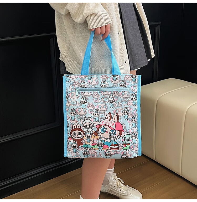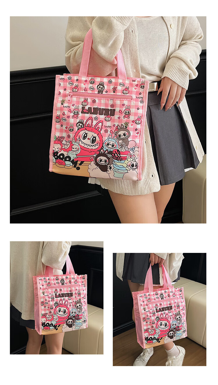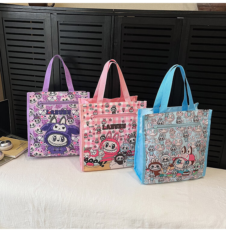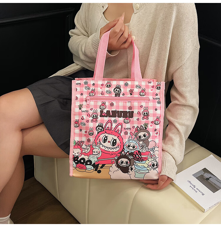 可爱卡通牛津布防水手提双层补习袋学生便携拉链A4文件美术收纳袋 粉色