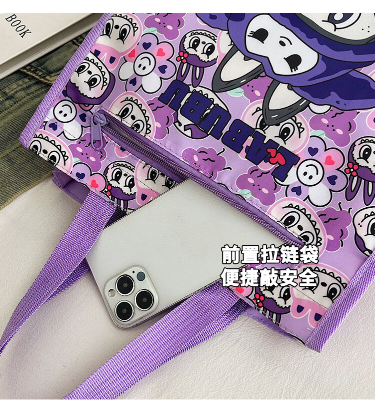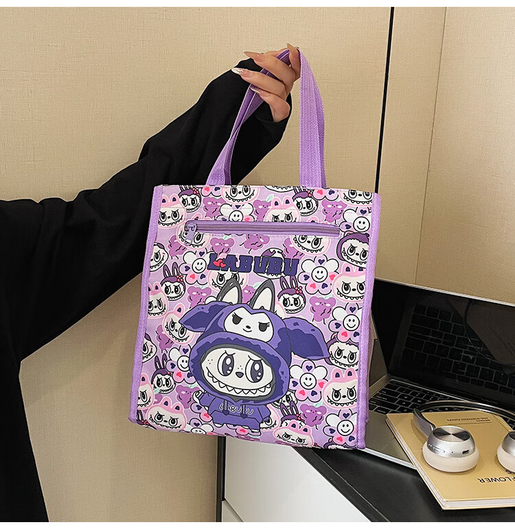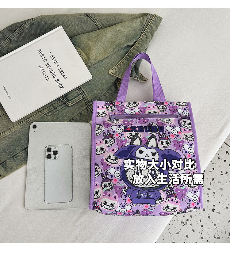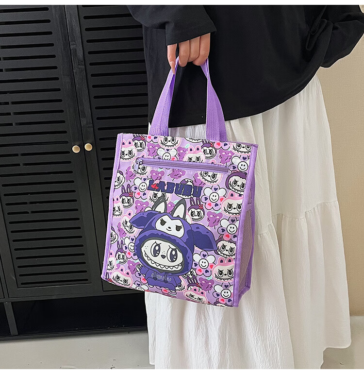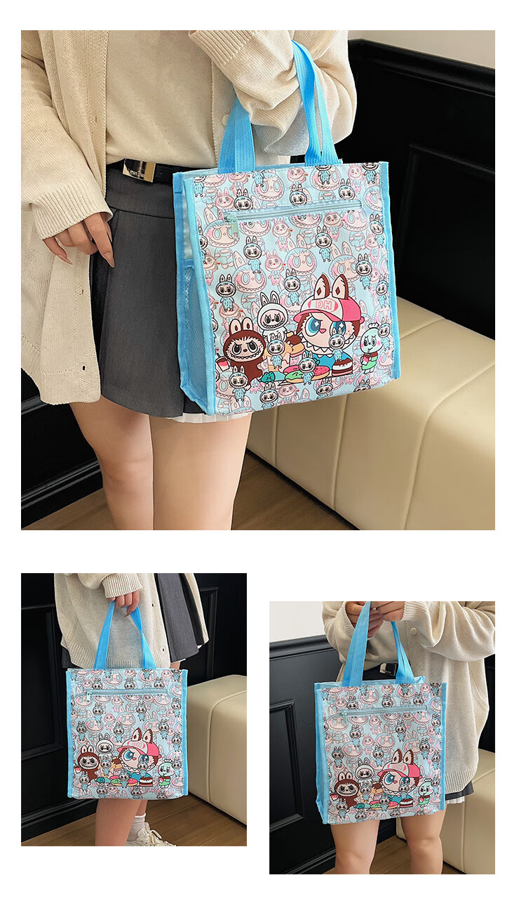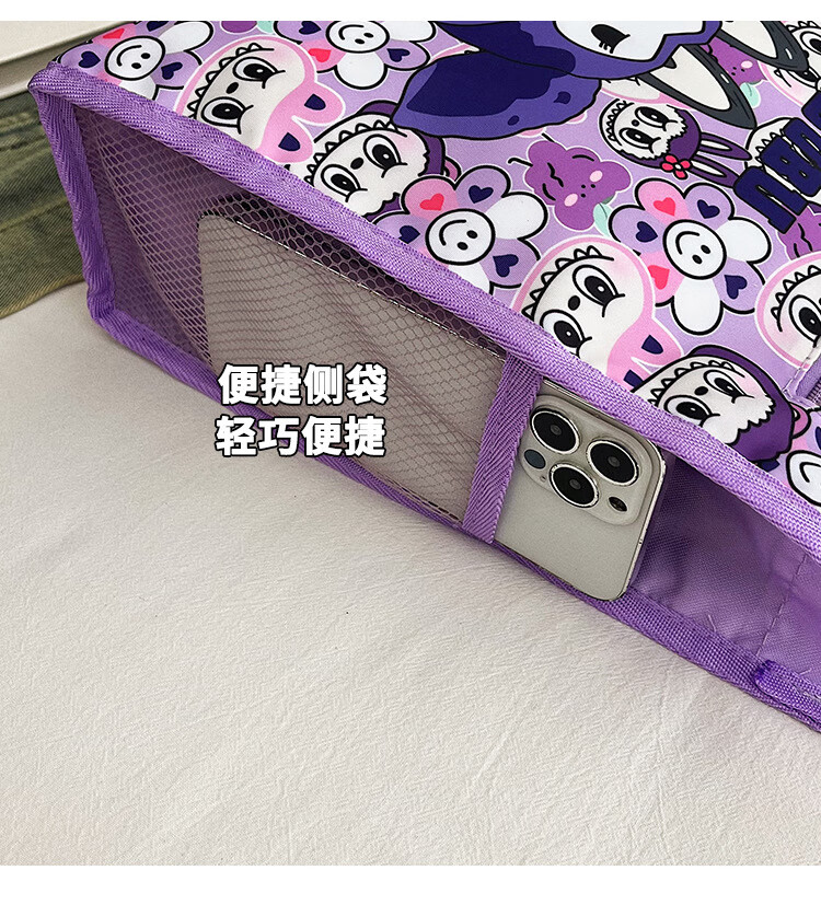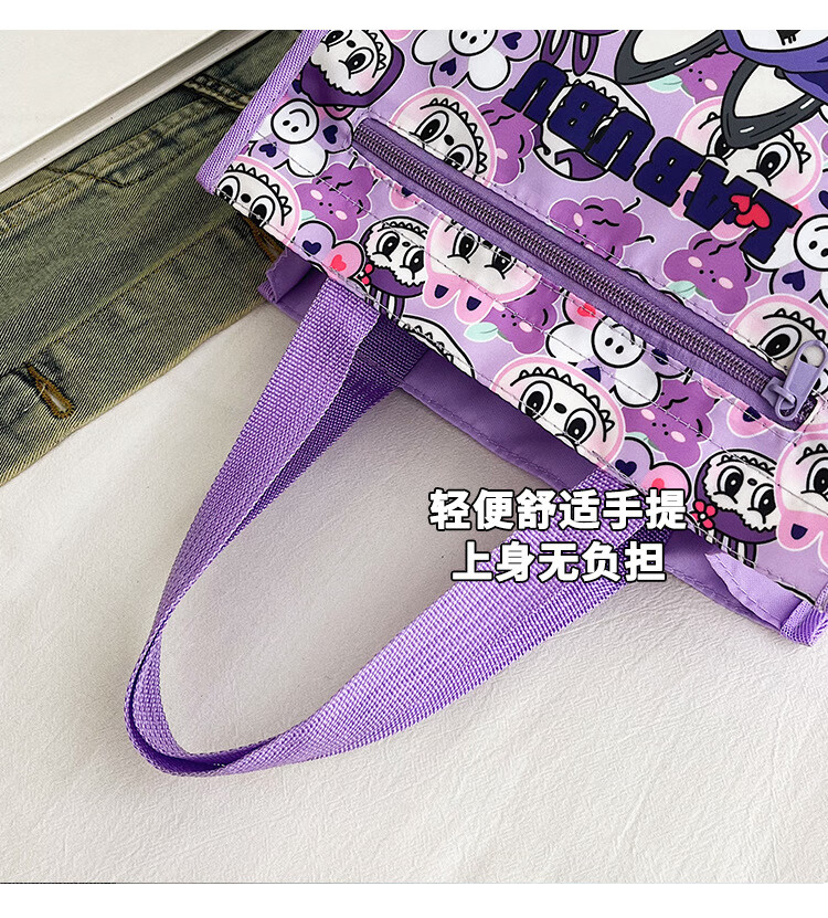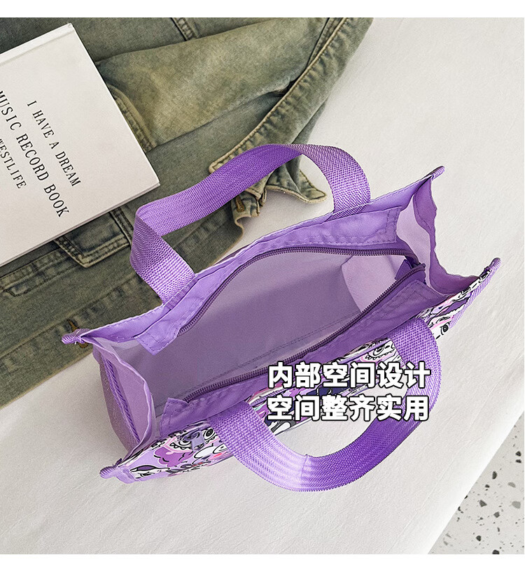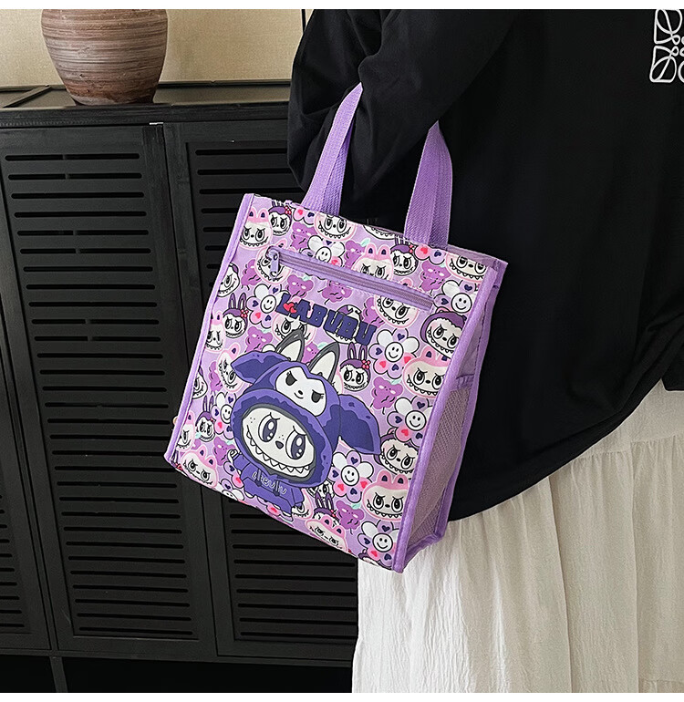 可爱卡通牛津布防水手提双层补习袋学生便携拉链A4文件美术收纳袋 粉色