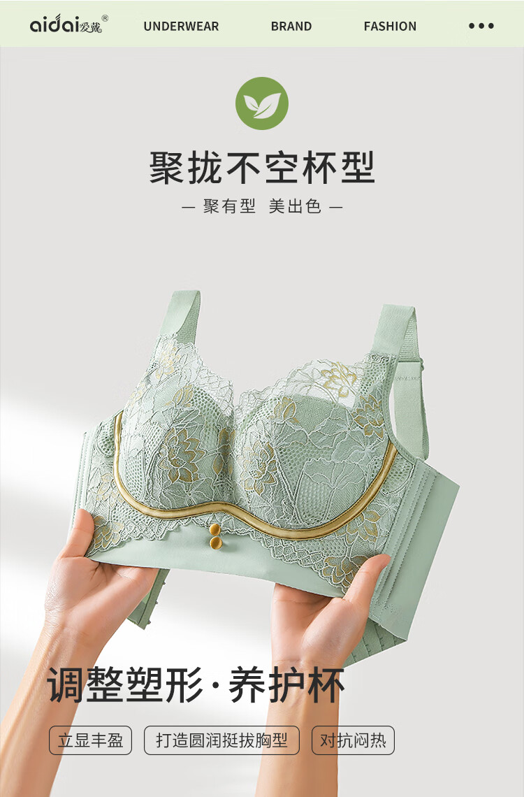 爱戴新款内衣女小胸聚拢显大不空杯调整型收副乳无钢圈上托美背文胸罩 绿色 80B