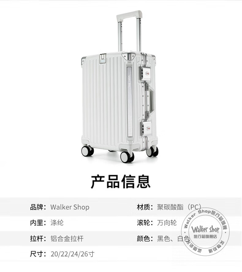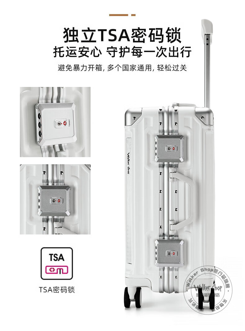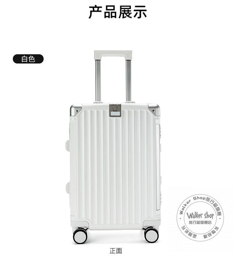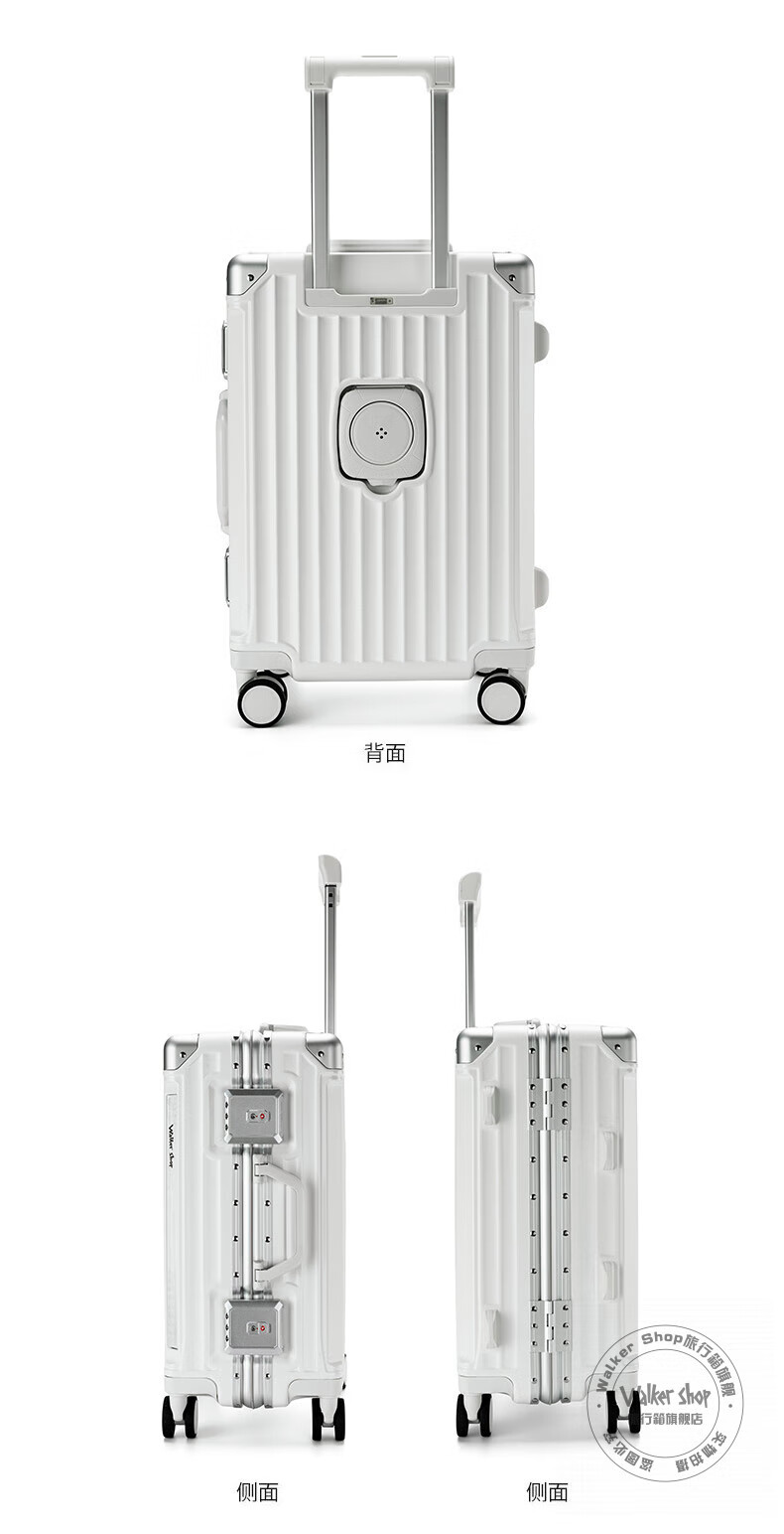 Walker Shop轻奢品牌行李箱男多功能大容量出差登机旅行箱女PC铝框防撞拉杆箱 白色【杯架+手机支架+USB口】 26英寸 【需托运】