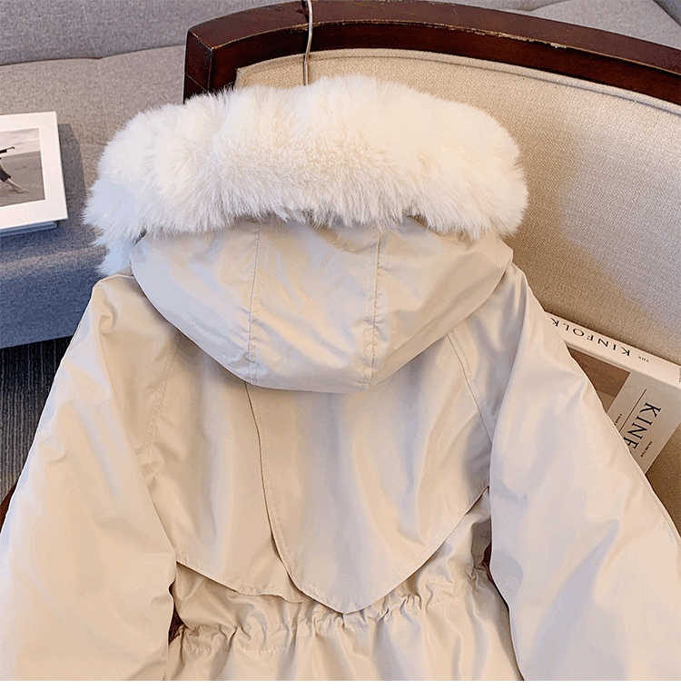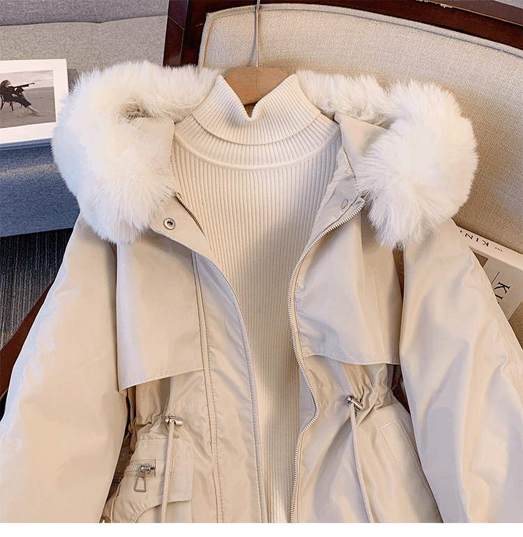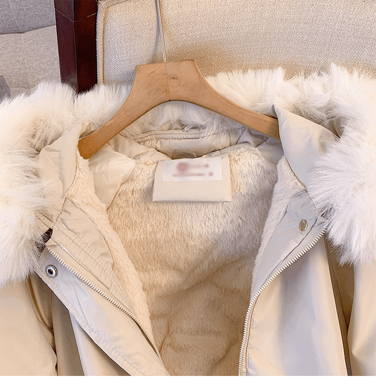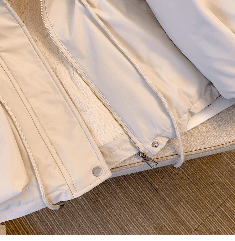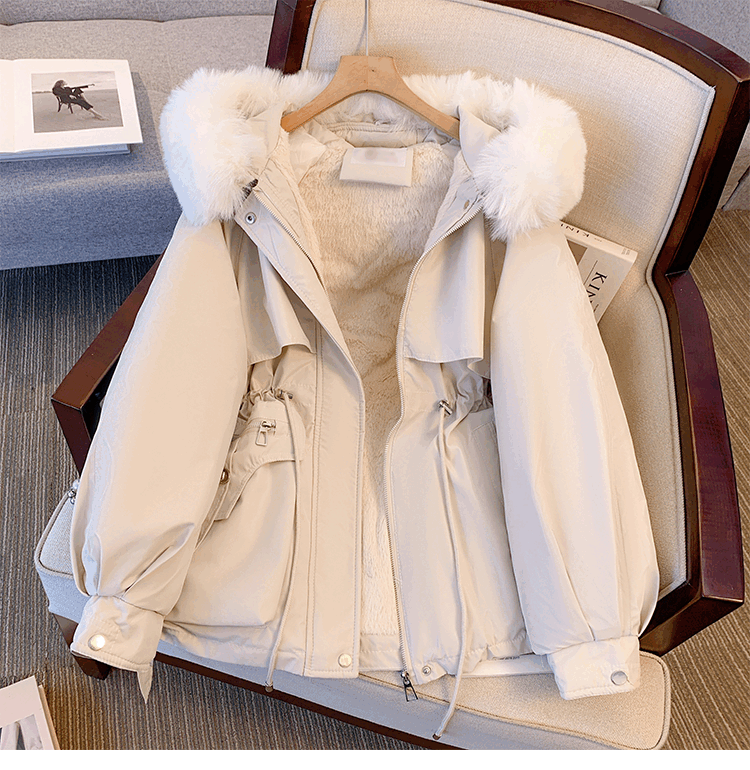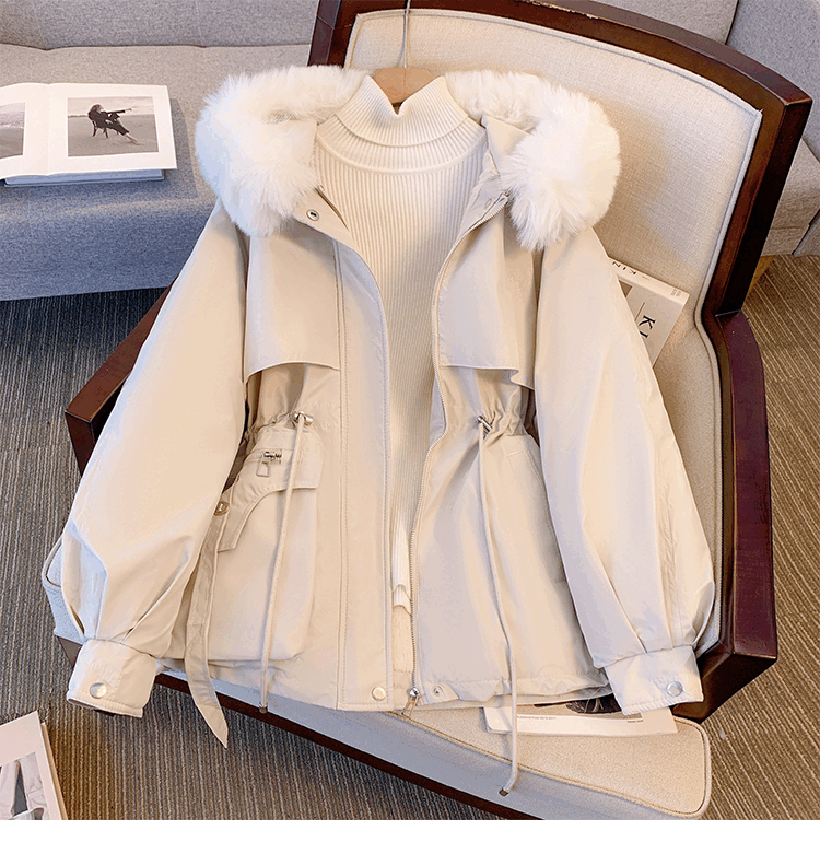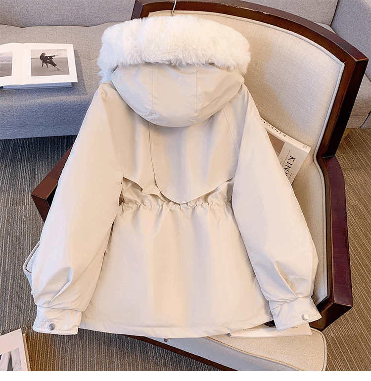 爱依服名品派克服女冬季加绒棉服年新款收腰显瘦小个子加厚棉衣棉袄外套 米白色 M