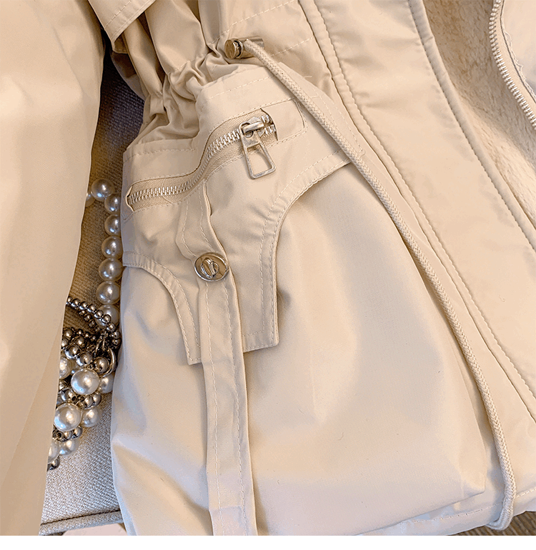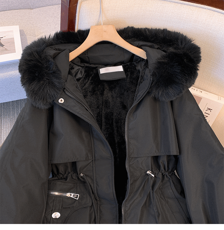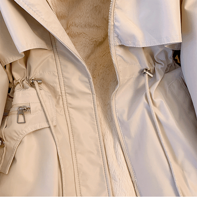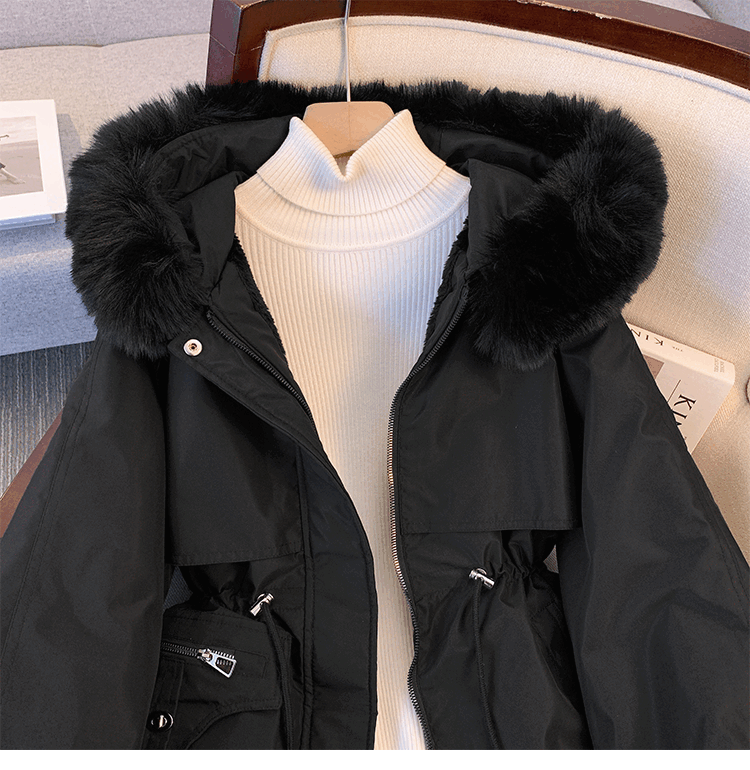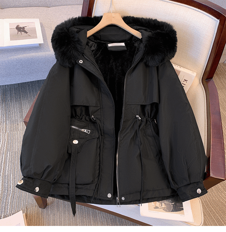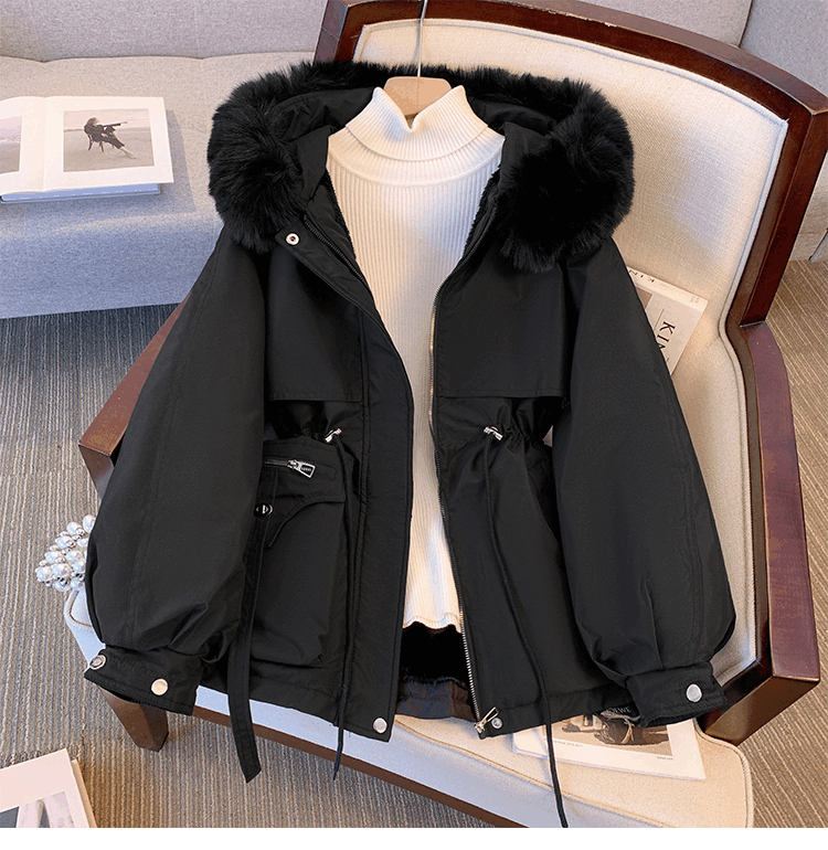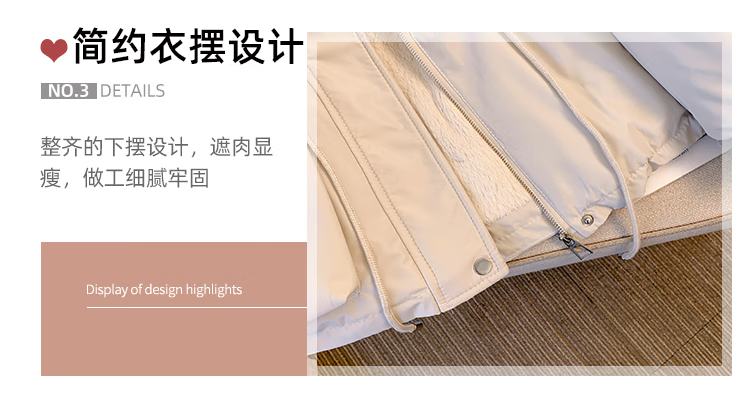 爱依服名品派克服女冬季加绒棉服年新款收腰显瘦小个子加厚棉衣棉袄外套 米白色 M
