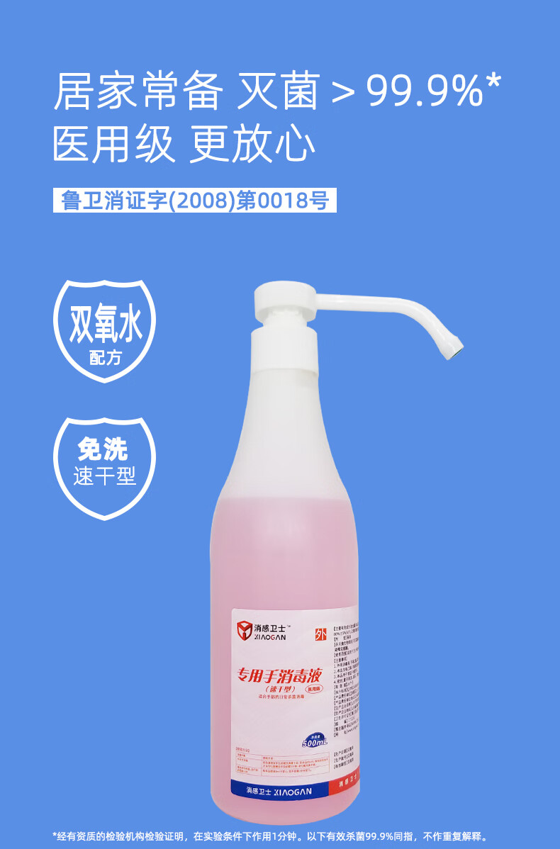 其他专用手消毒液洗手消毒皮肤手部消毒消毒液免洗手香味灭菌消感卫士 500ml*5瓶(免洗速干型)
