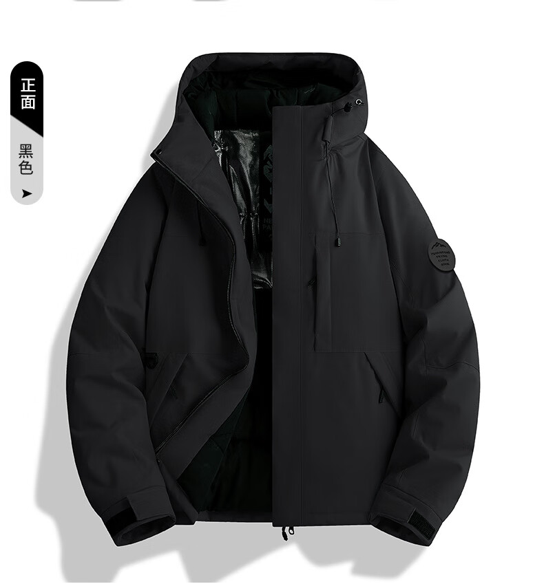 JEEP SPIRIT吉普冲锋棉服情侣同款户外加厚宽松保暖羽绒棉衣外套 黑色【夹棉加厚】 XL (建议160-180斤)
