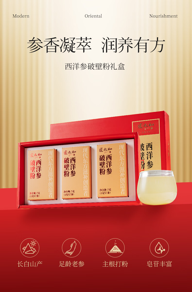 张太和长白山西洋参破壁粉礼盒 粉质细腻泡水 中秋国庆礼物礼盒 西洋参破壁粉(1g*7)*3小盒】礼盒装