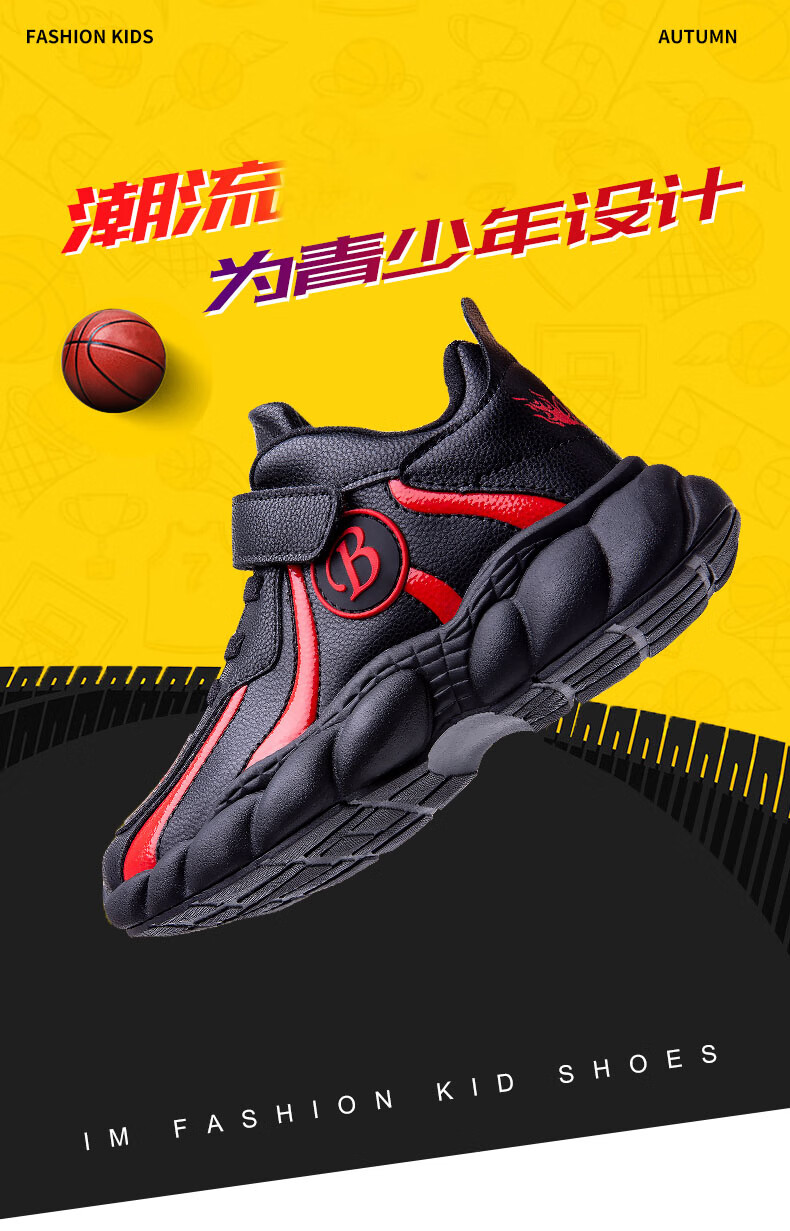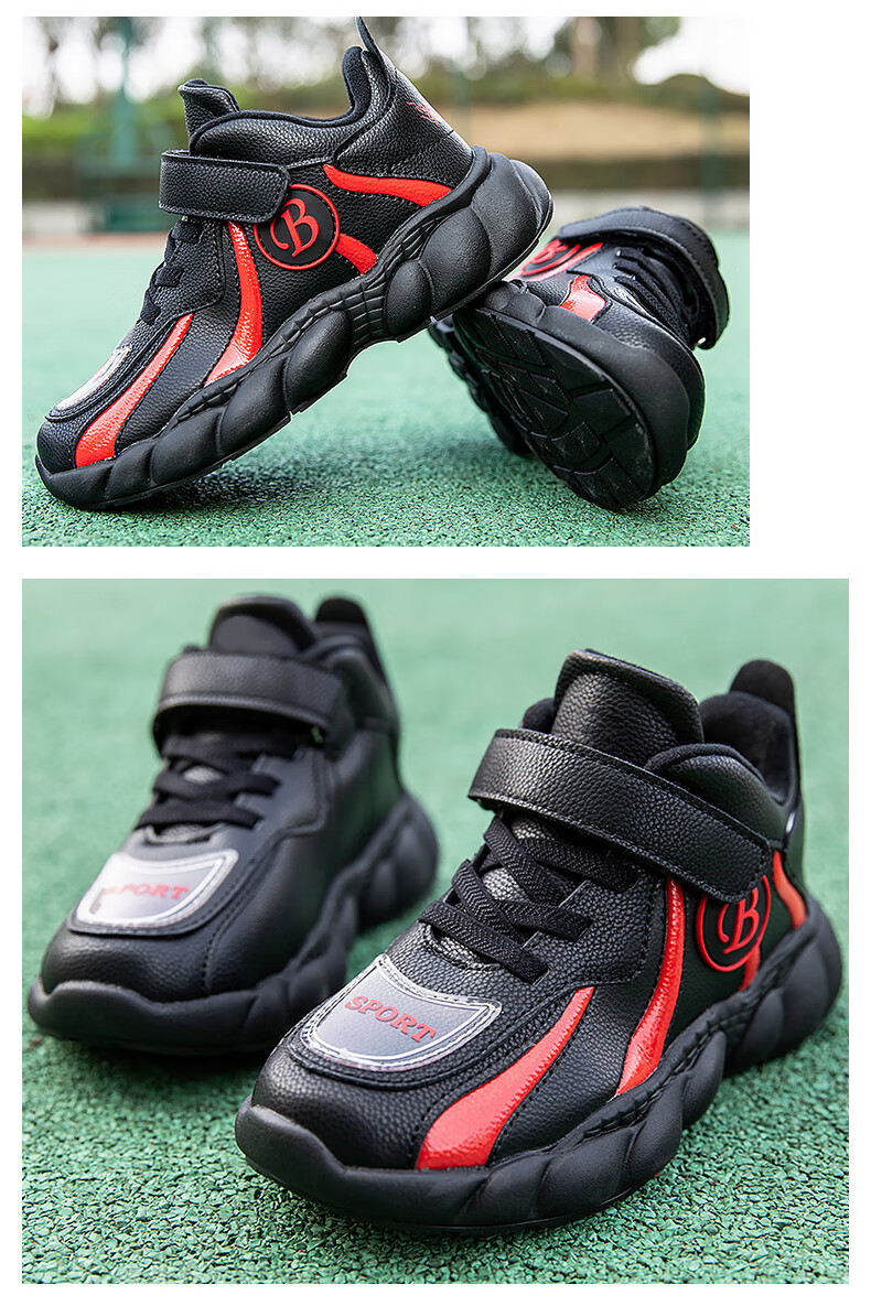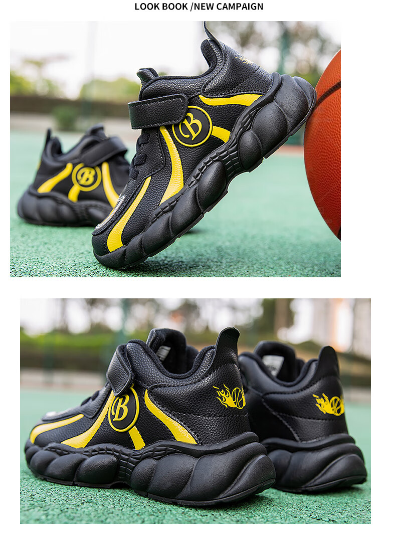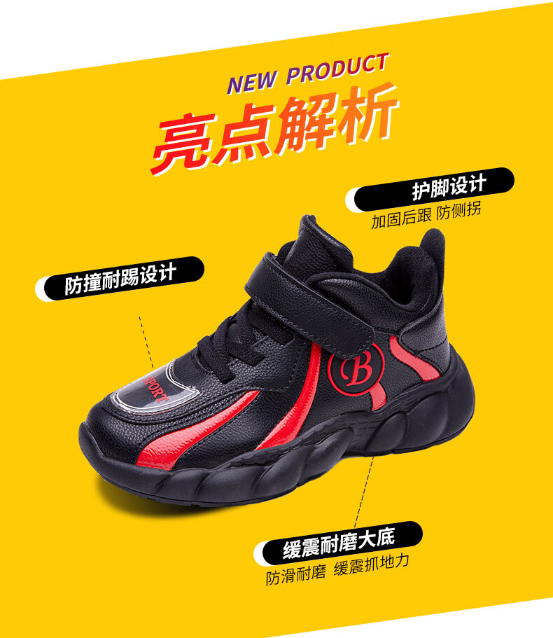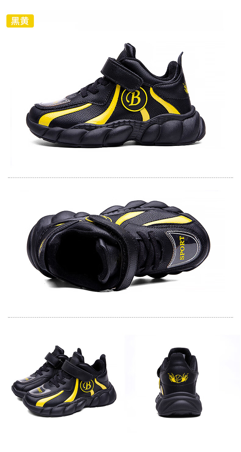 贝天熊童鞋秋冬款男女童休闲鞋学生中大童轻便耐磨运动鞋 BT19016黑黄【革面】 29码 内长18.4/脚17.4
