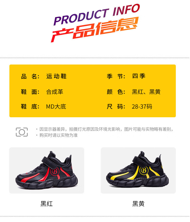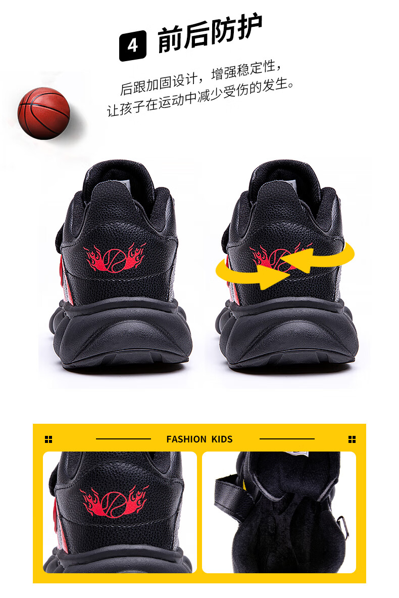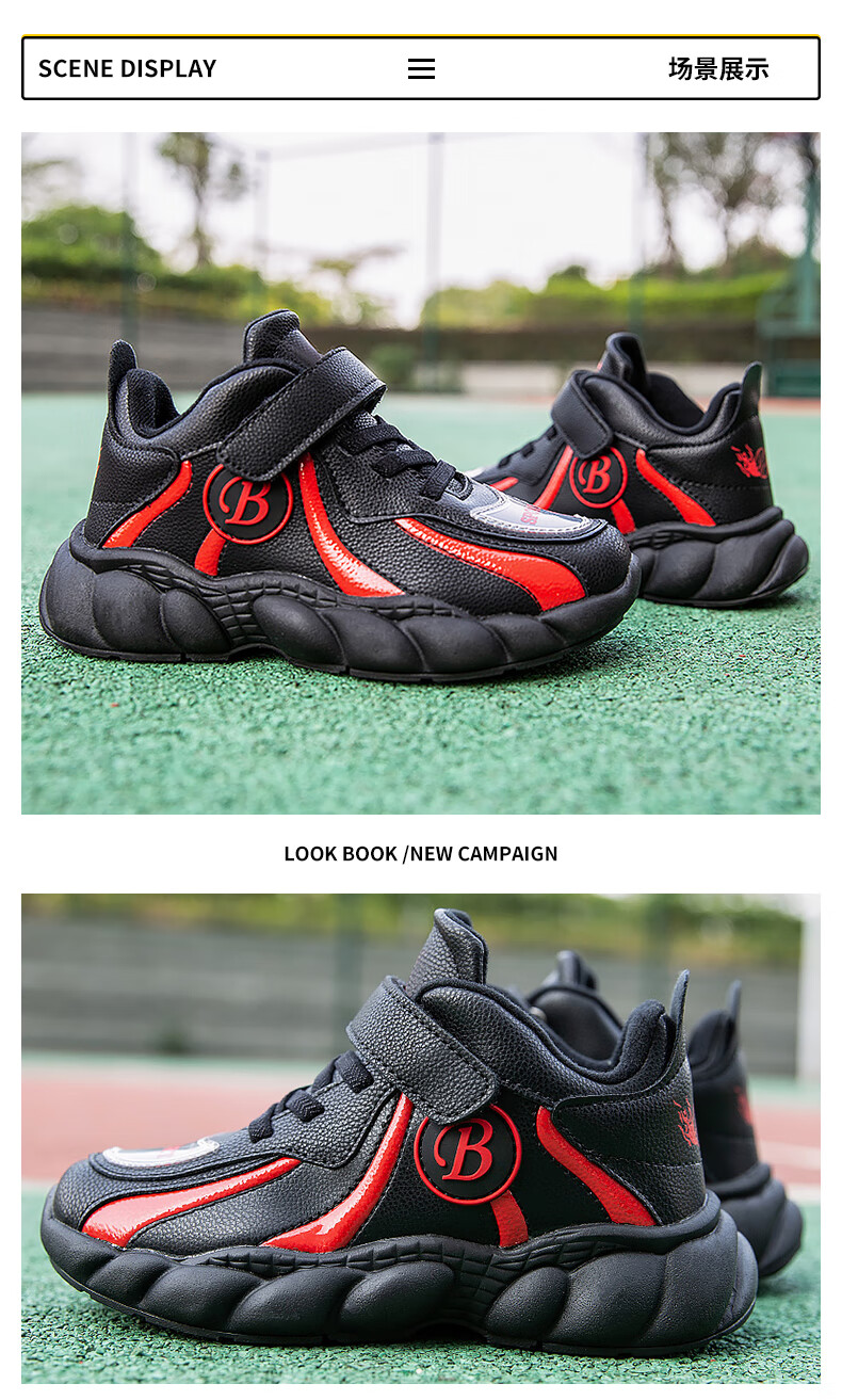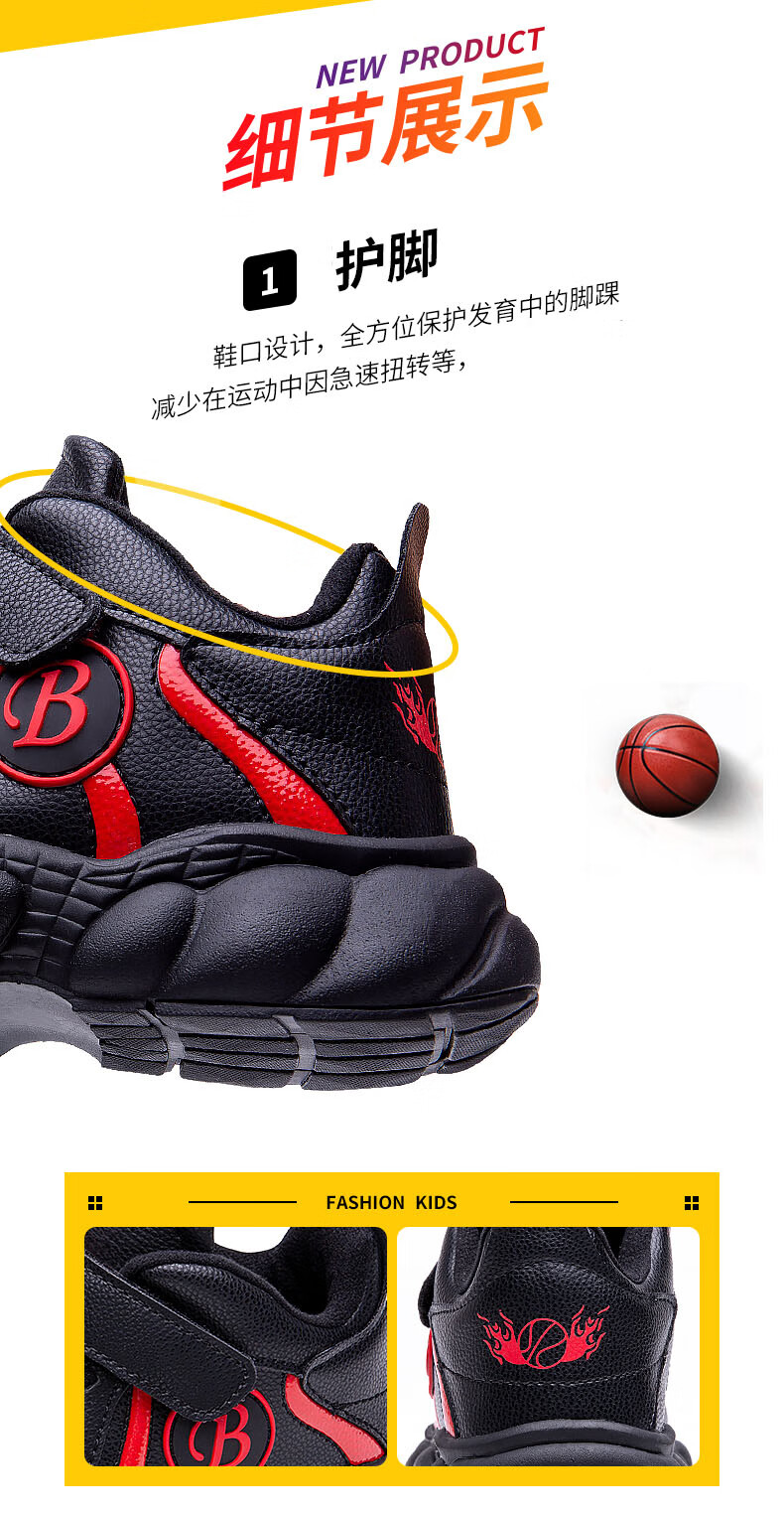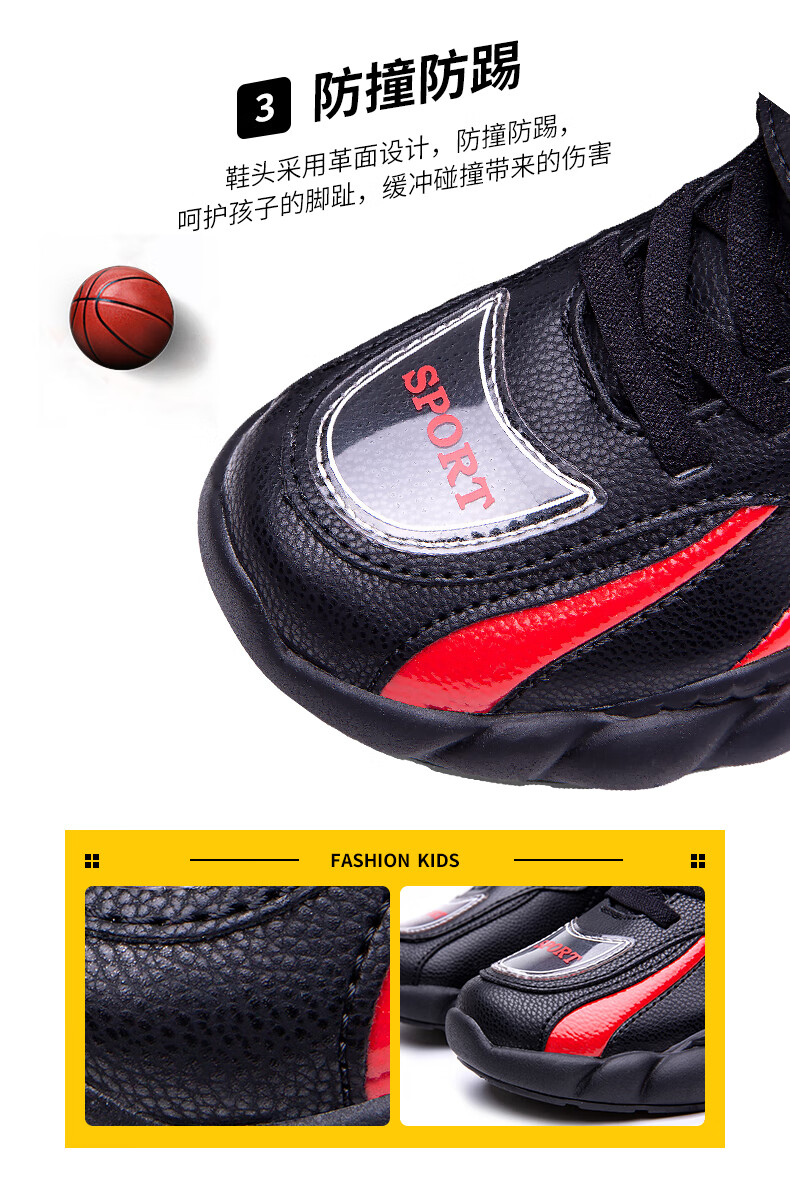 贝天熊童鞋秋冬款男女童休闲鞋学生中大童轻便耐磨运动鞋 BT19016黑黄【革面】 29码 内长18.4/脚17.4