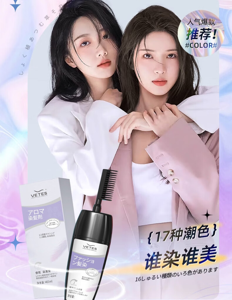 维特丝染发剂黑色植物男女士潮色显白盖白染发膏遮白发一梳黑泡染发专用 自然黑400ml【热卖经典耐看】