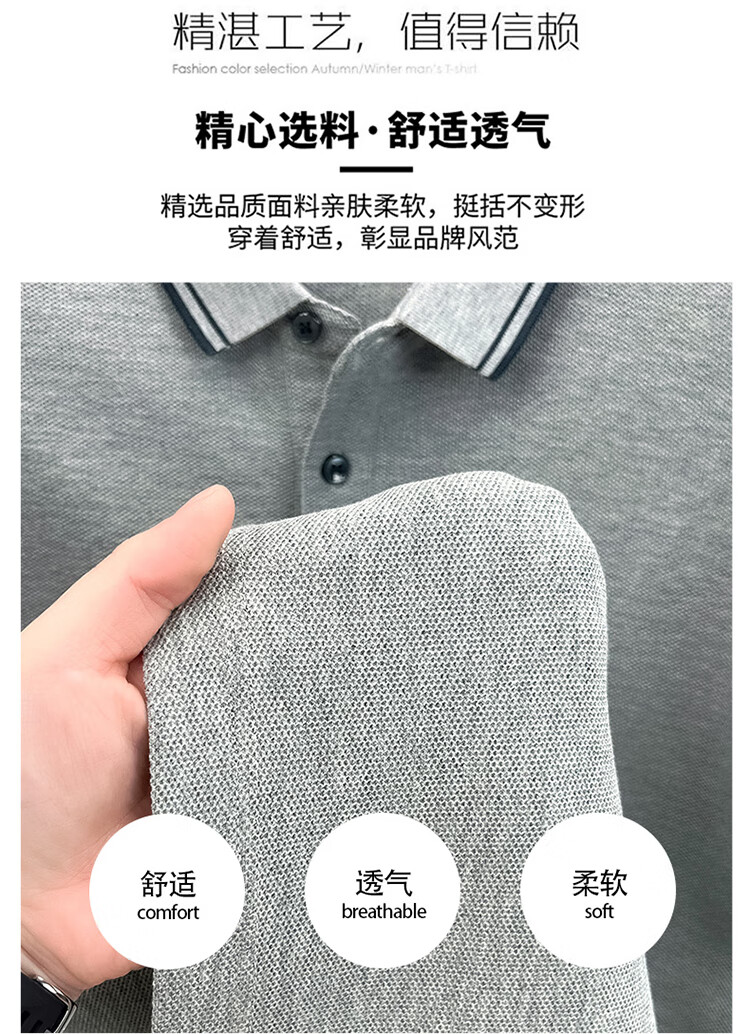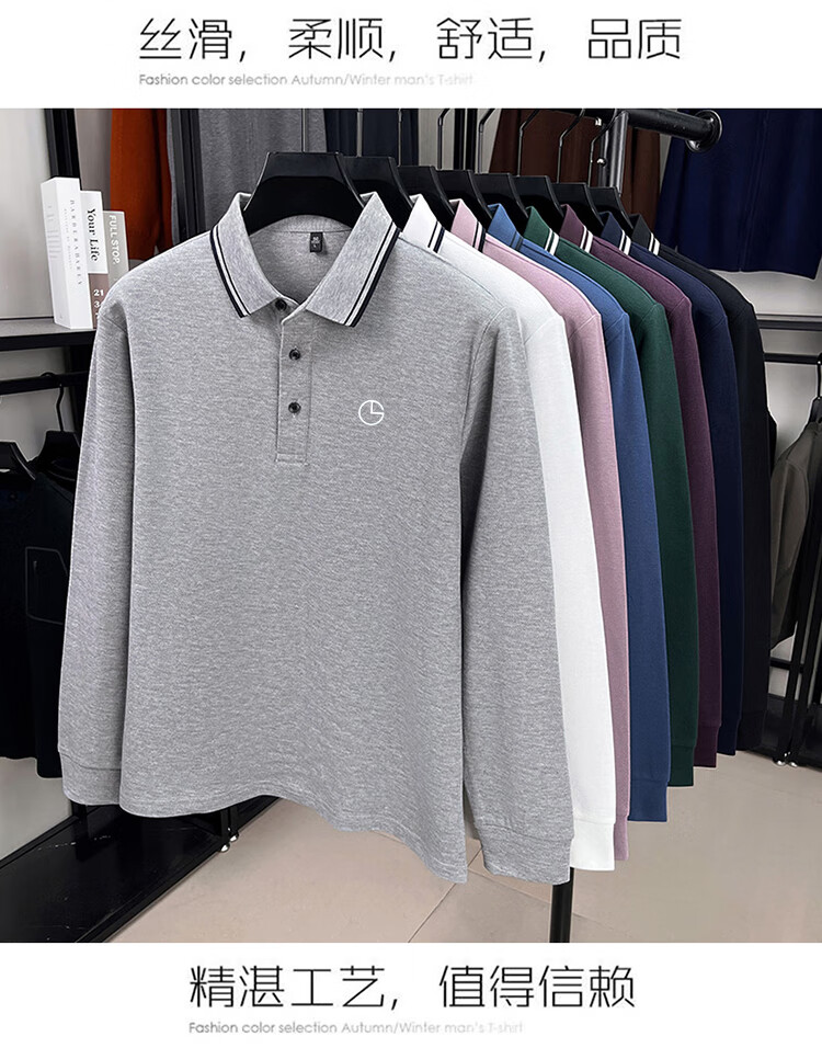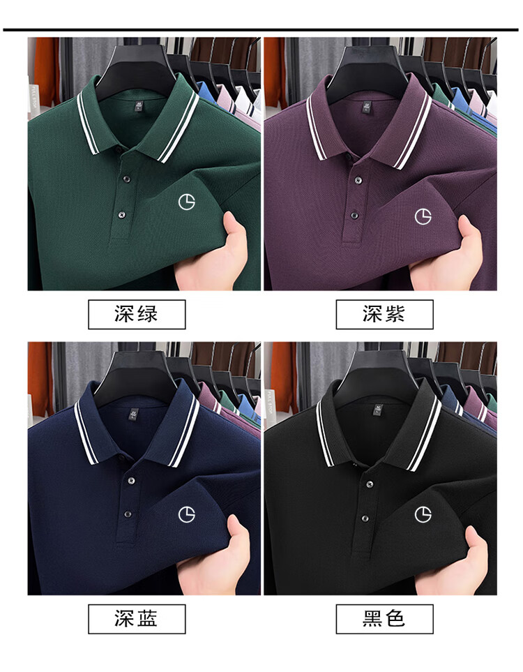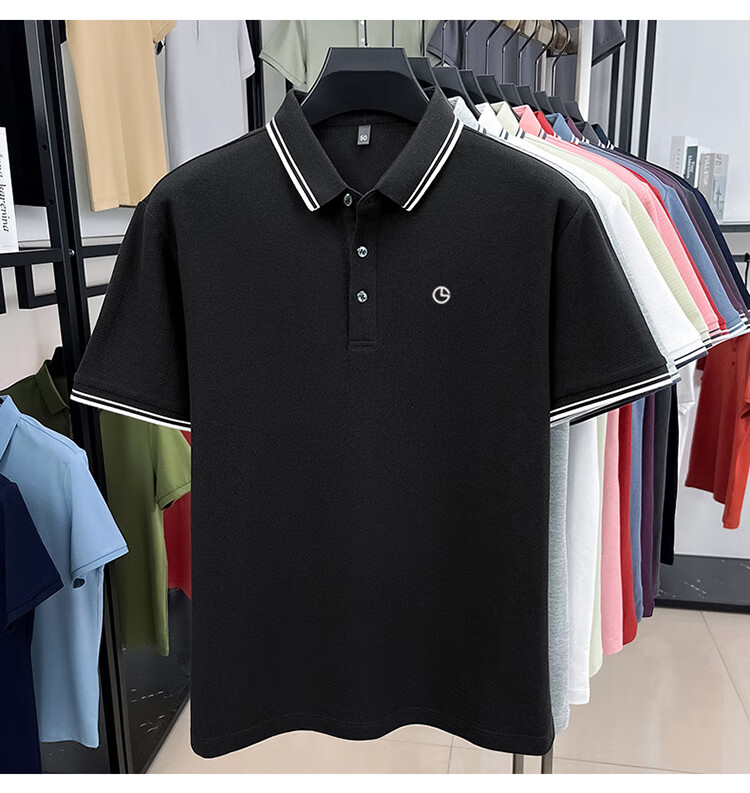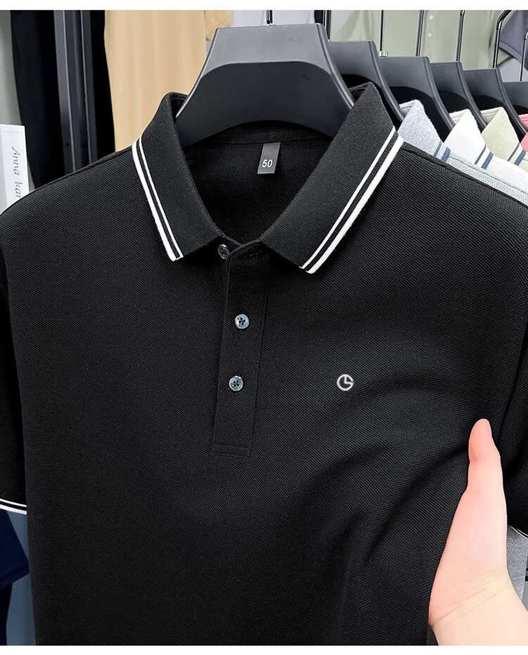 金利来秋季纯棉翻领POLO衫2025新款男士商务休闲纯色长袖t恤上衣 黑色【长袖】 4XL 推荐185-205斤