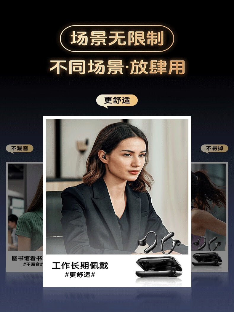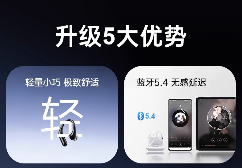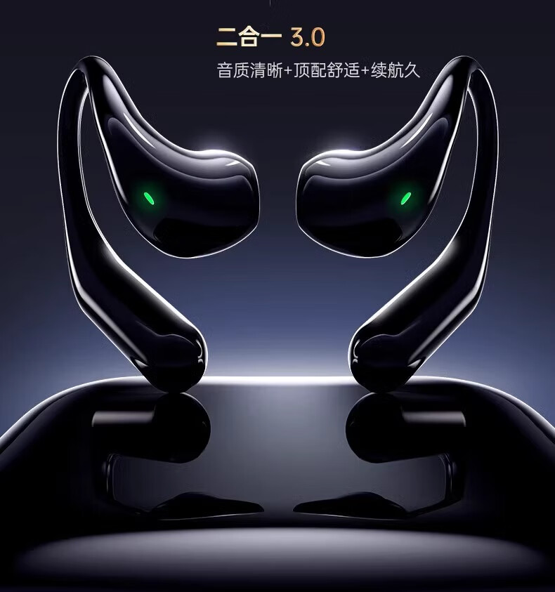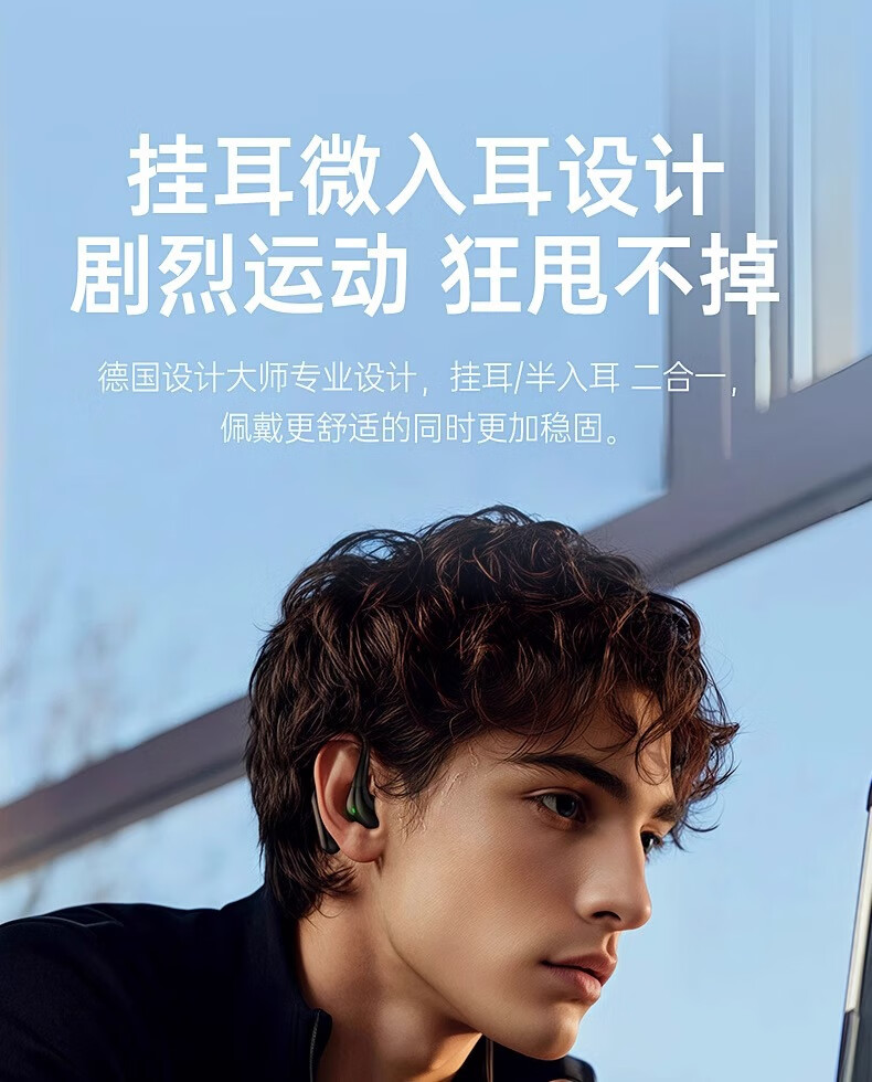金运蓝牙耳机柏林之声苹果骨传导概念真无线挂耳式半入耳式运动跑步通话超长续航air8 【音质升级版】玉石黑 【柏林之声|悦耳不漏音】