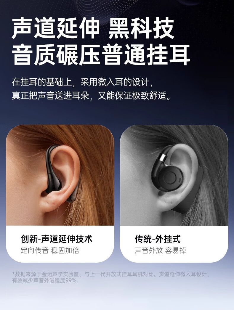 电萝卜AI无线蓝牙耳机耳夹式 实时翻译运动耳机(AI智能降噪 搭载DeepSeek-R1)适用华为小米苹果 【HIFI音质 不漏音】耳夹式黑
