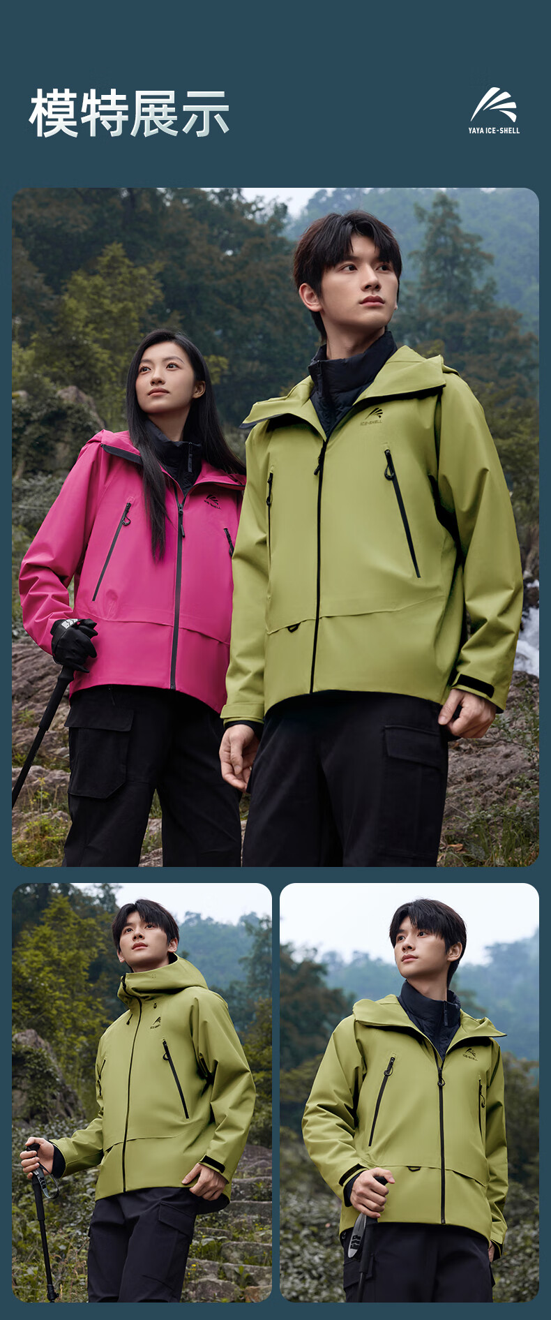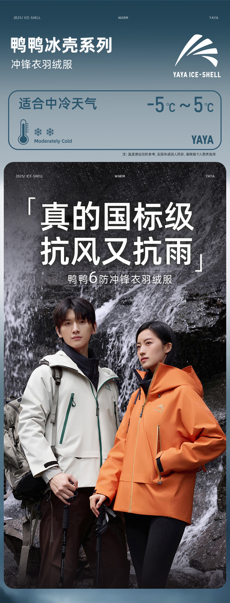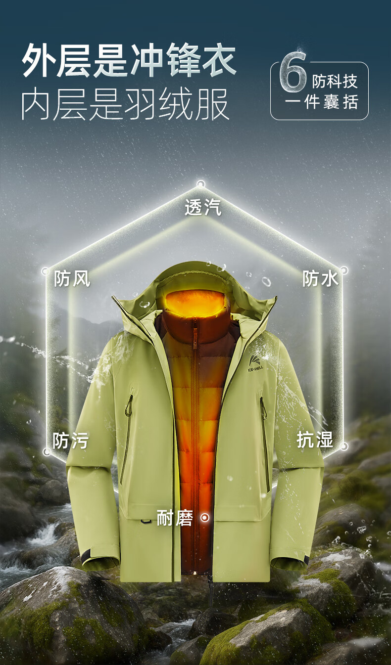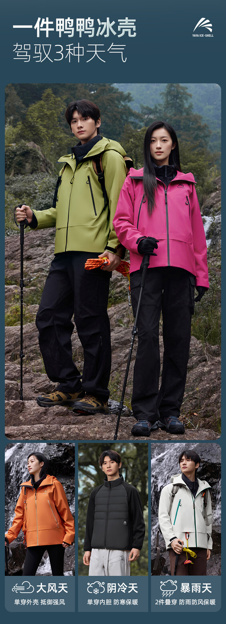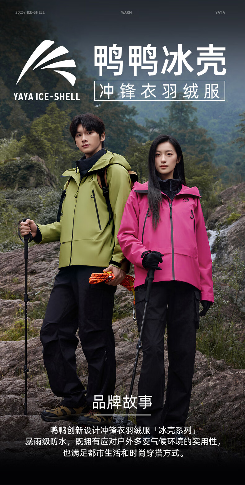 鸭鸭(YAYA)明星同款冰壳羽绒服男女2025冬新品一衣三穿户外防风冲锋衣外套 数字玫红色 M (170)