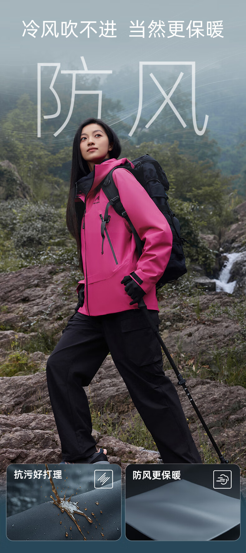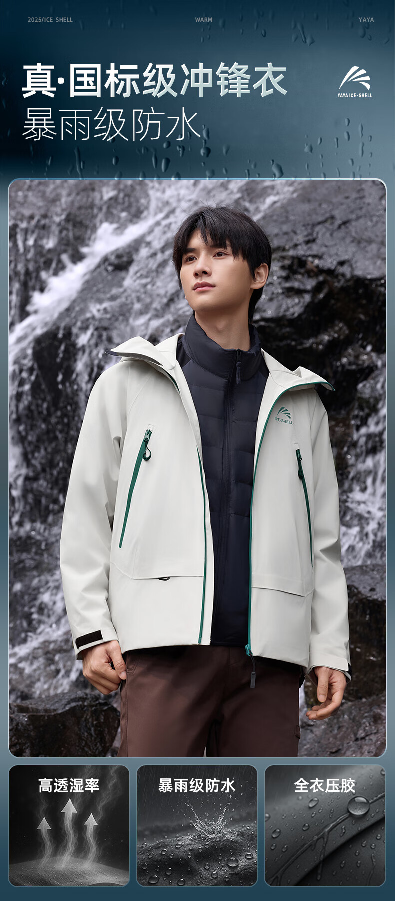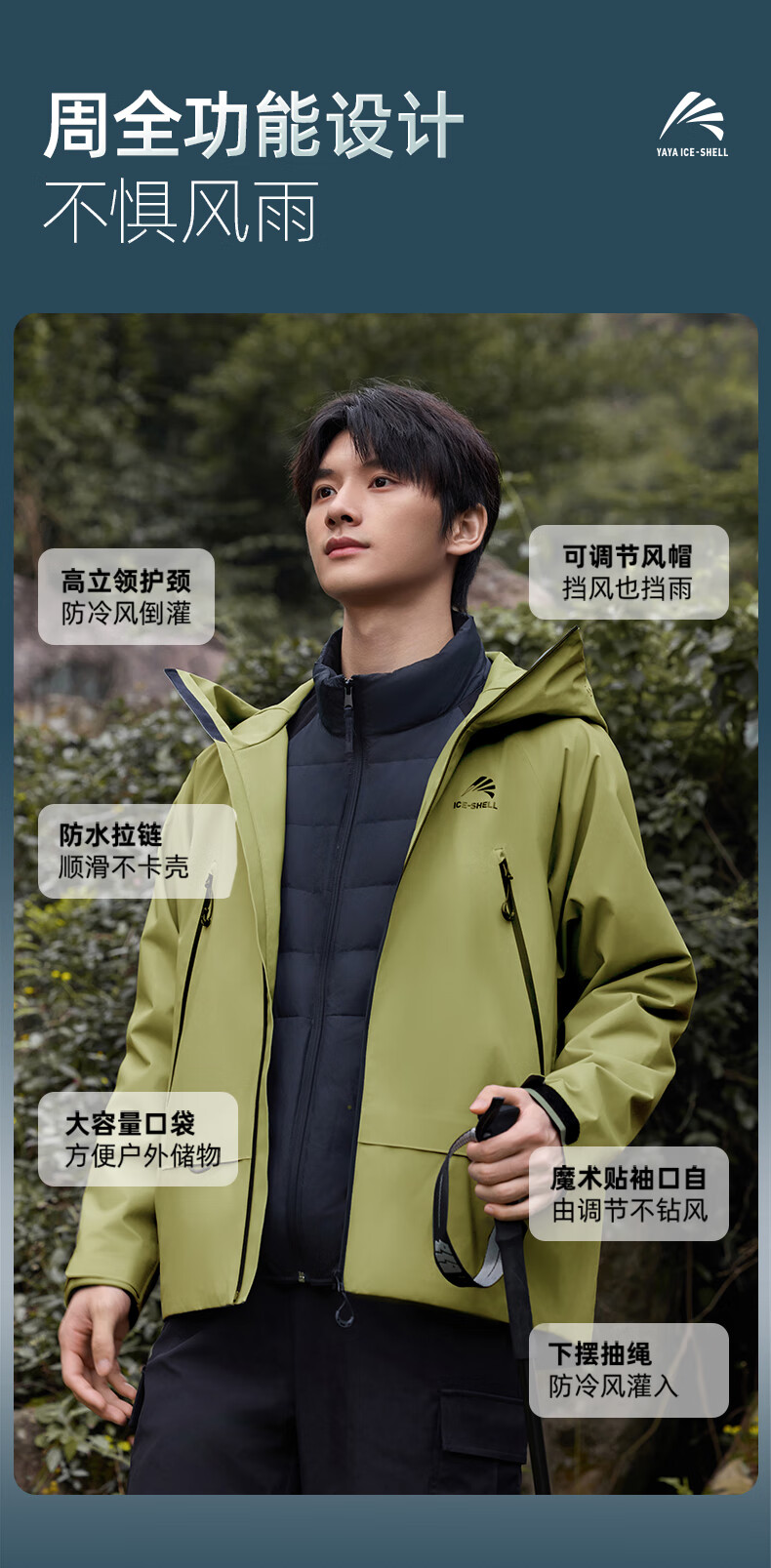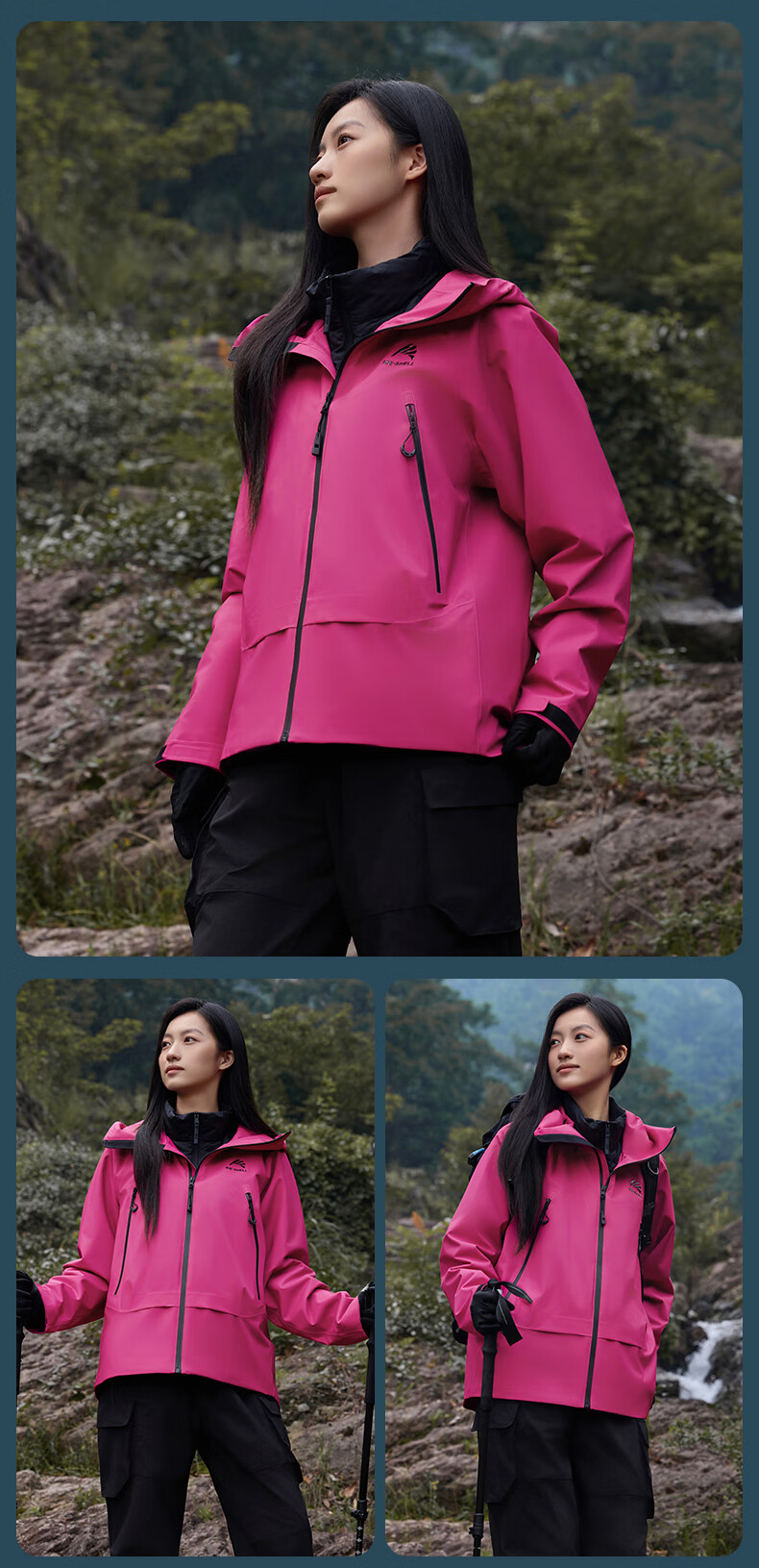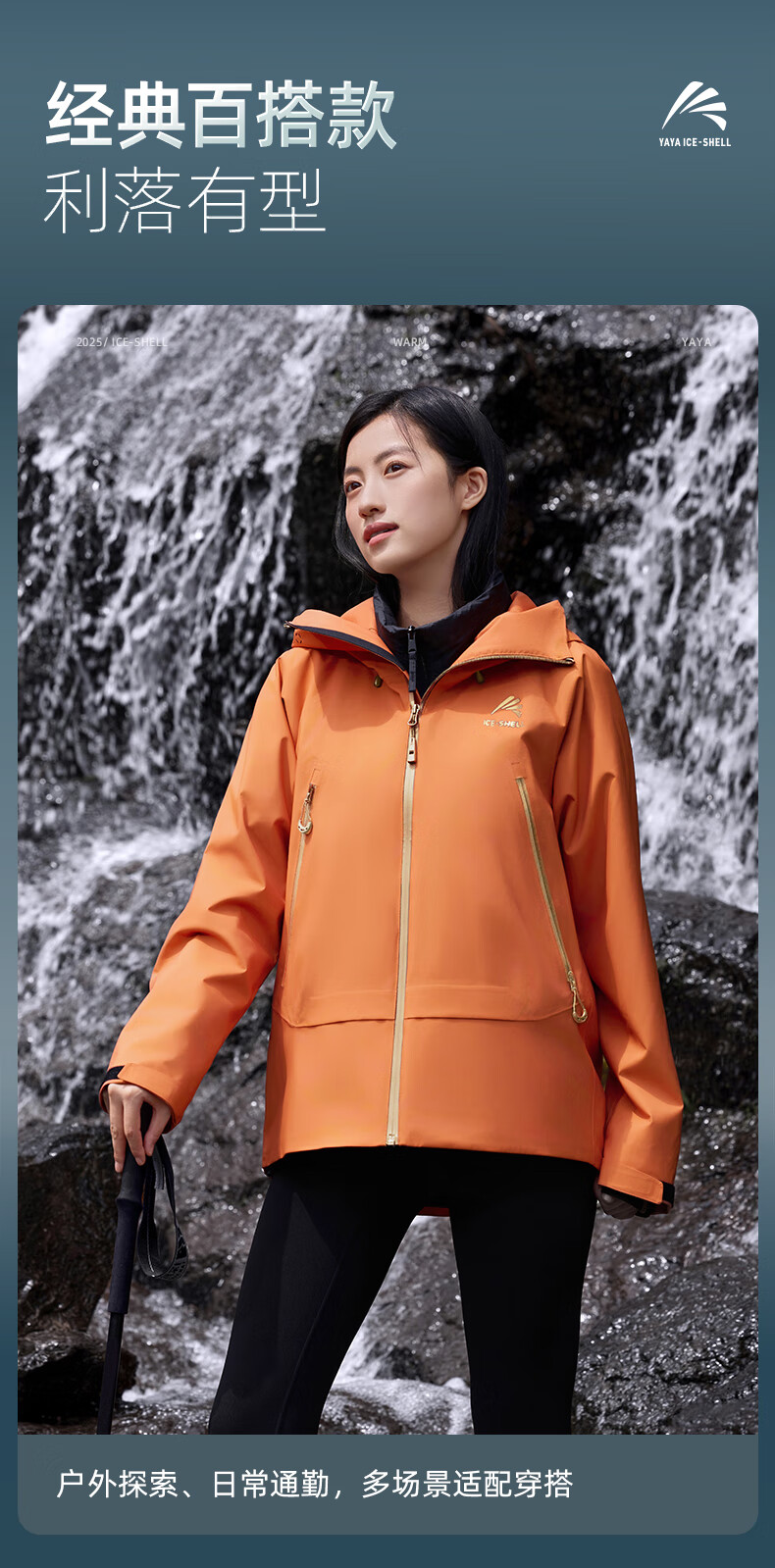 鸭鸭(YAYA)明星同款冰壳羽绒服男女2025冬新品一衣三穿户外防风冲锋衣外套 数字玫红色 M (170)